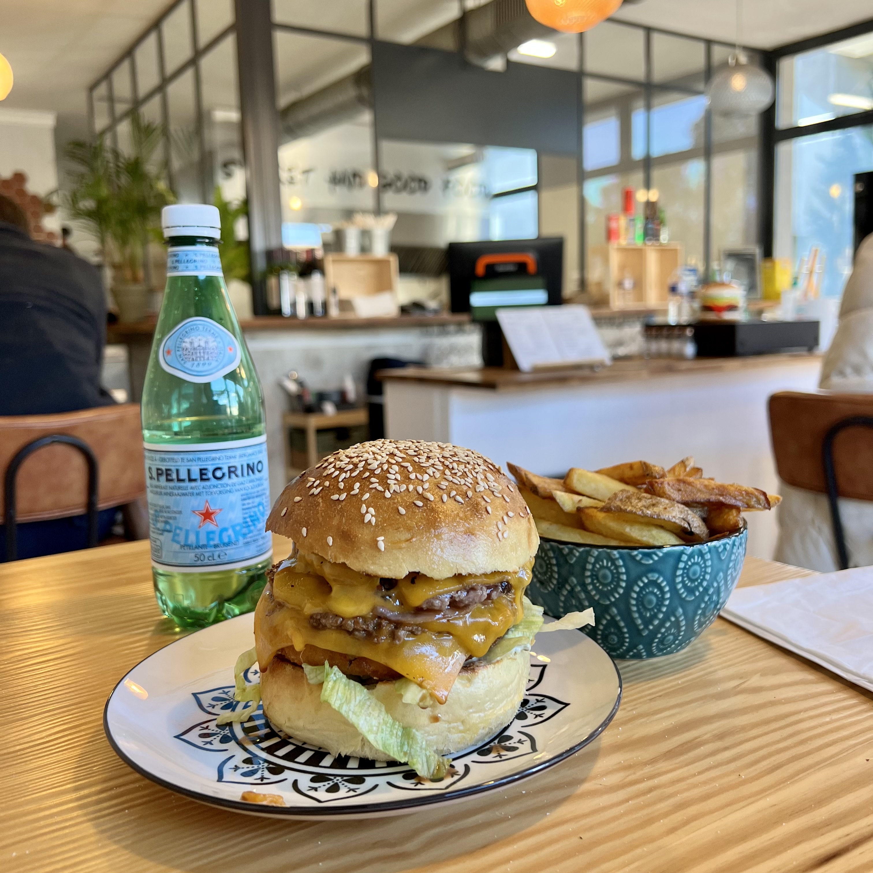 Accueil sympatique et conviviale. Véritable frites maison. Les burgers sont copieux, avec des produits frais, de vrais steak hachés ! Les choix des burgers proposés ont de quoi ravir tous les goûts. Propose également un choix de tapas, de salades et pour les plus gourmands, des frites avec suppléments bacon, fromages etc... Rien a dire sur le rapport qualité prix, un régale ! Seul petit reproche s'il devait y en avoir un, il n'y a pas de menu enfant. Le burger le plus simple est trop copieux pour les petits estomacs. Cependant, les parents se font un plaisir de finir l'assiette des petits ! Ne pas hésiter !!