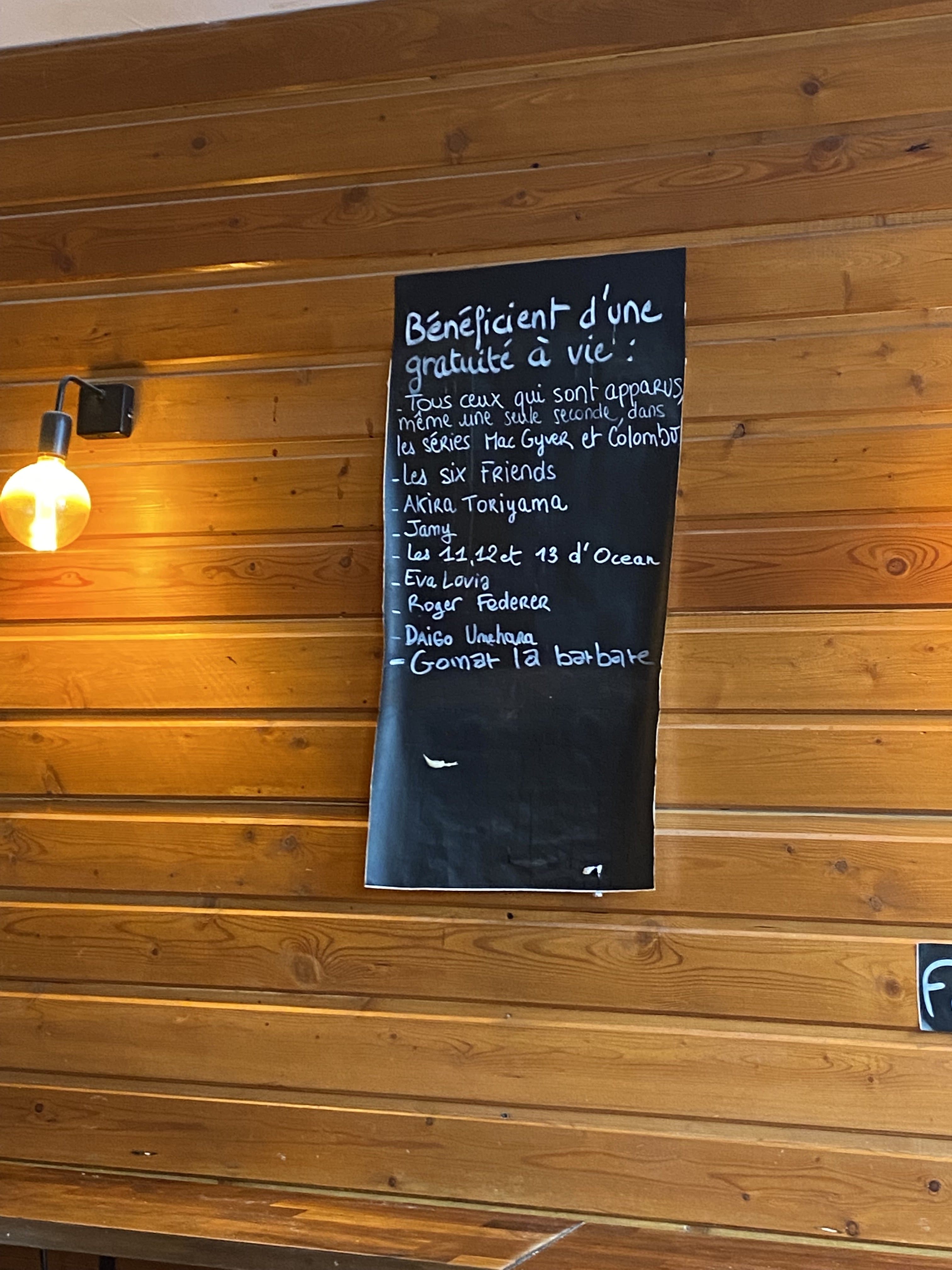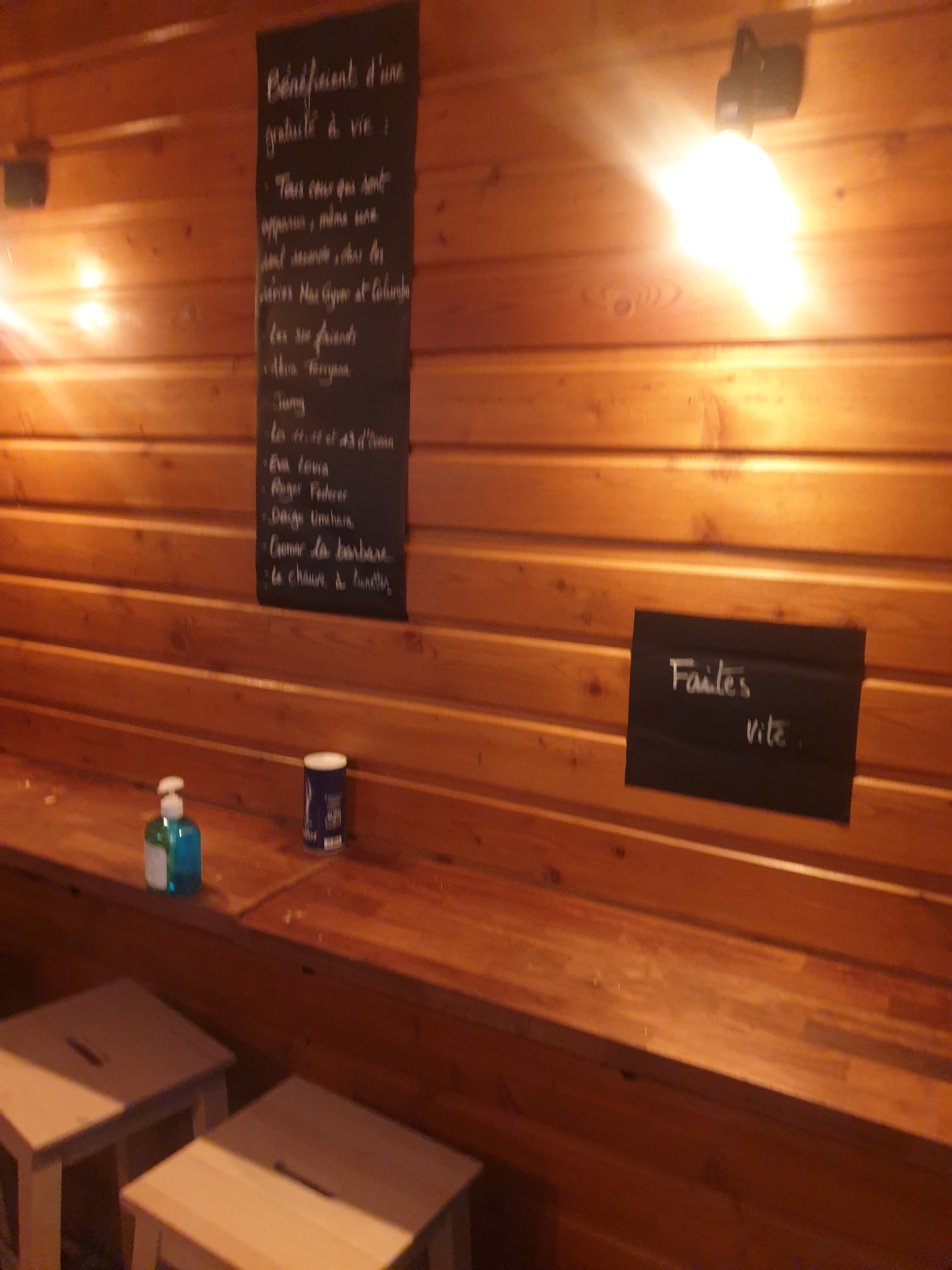 Pour le prix vous avez juste à manger et vous casser ! Pas mal le concept si on veut juste manger ,juste les toilettes pas de papier pas de serviettes et très sales .