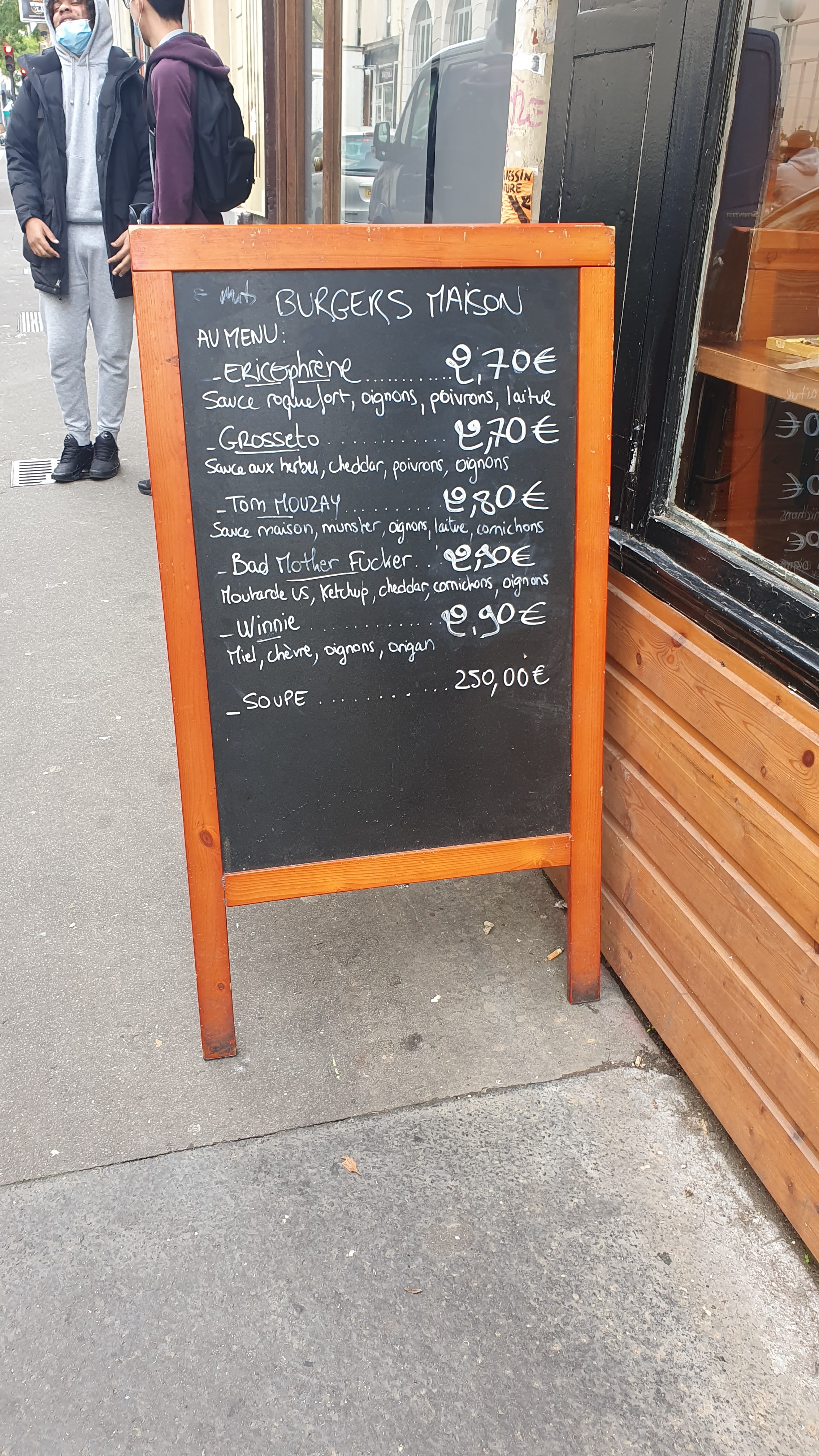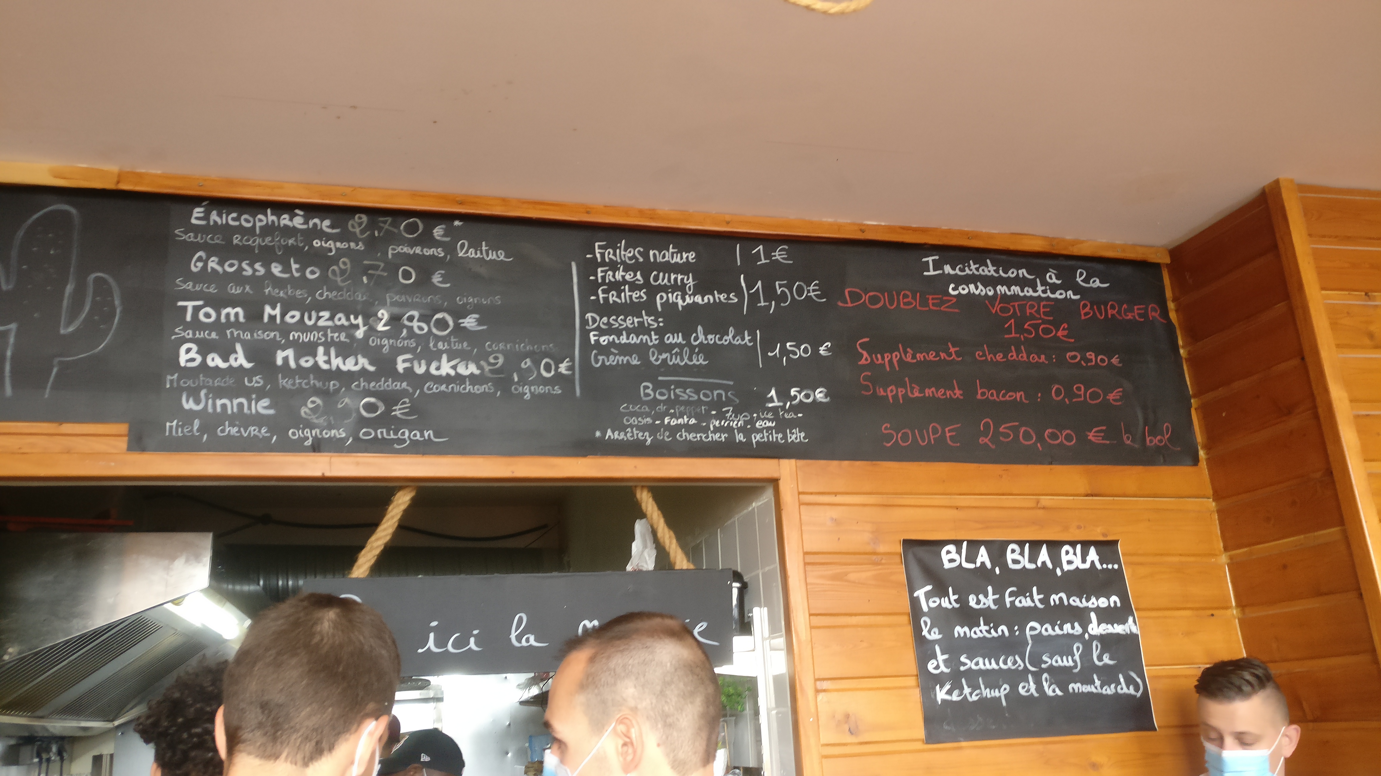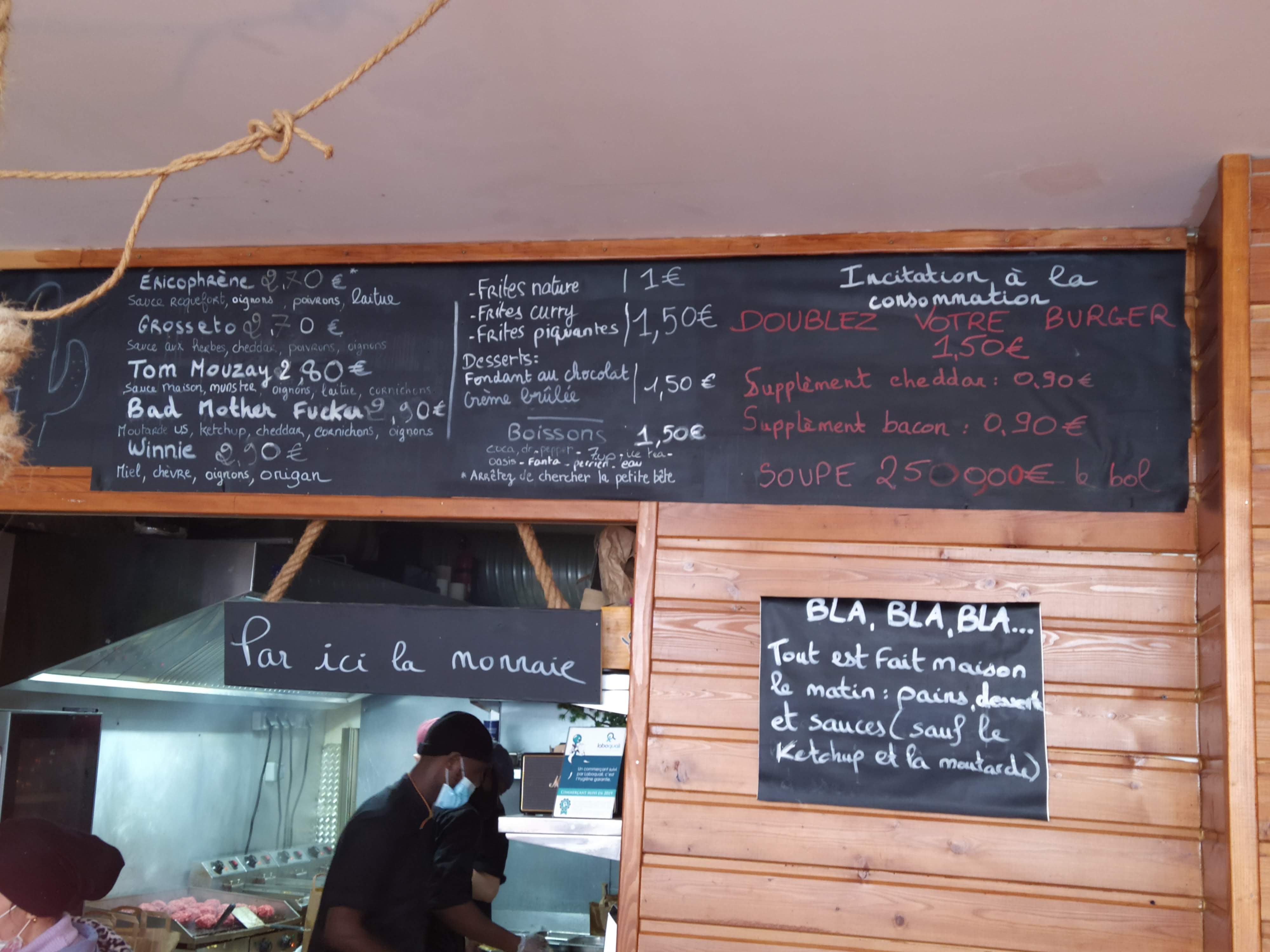 Dans l’ensemble c’est plutôt bon et pas cher. J’ai pris 4 hamburgers sur 5 ( sauf chèvre miel), le Bad M… n’est pas terrible car pas de saveur.