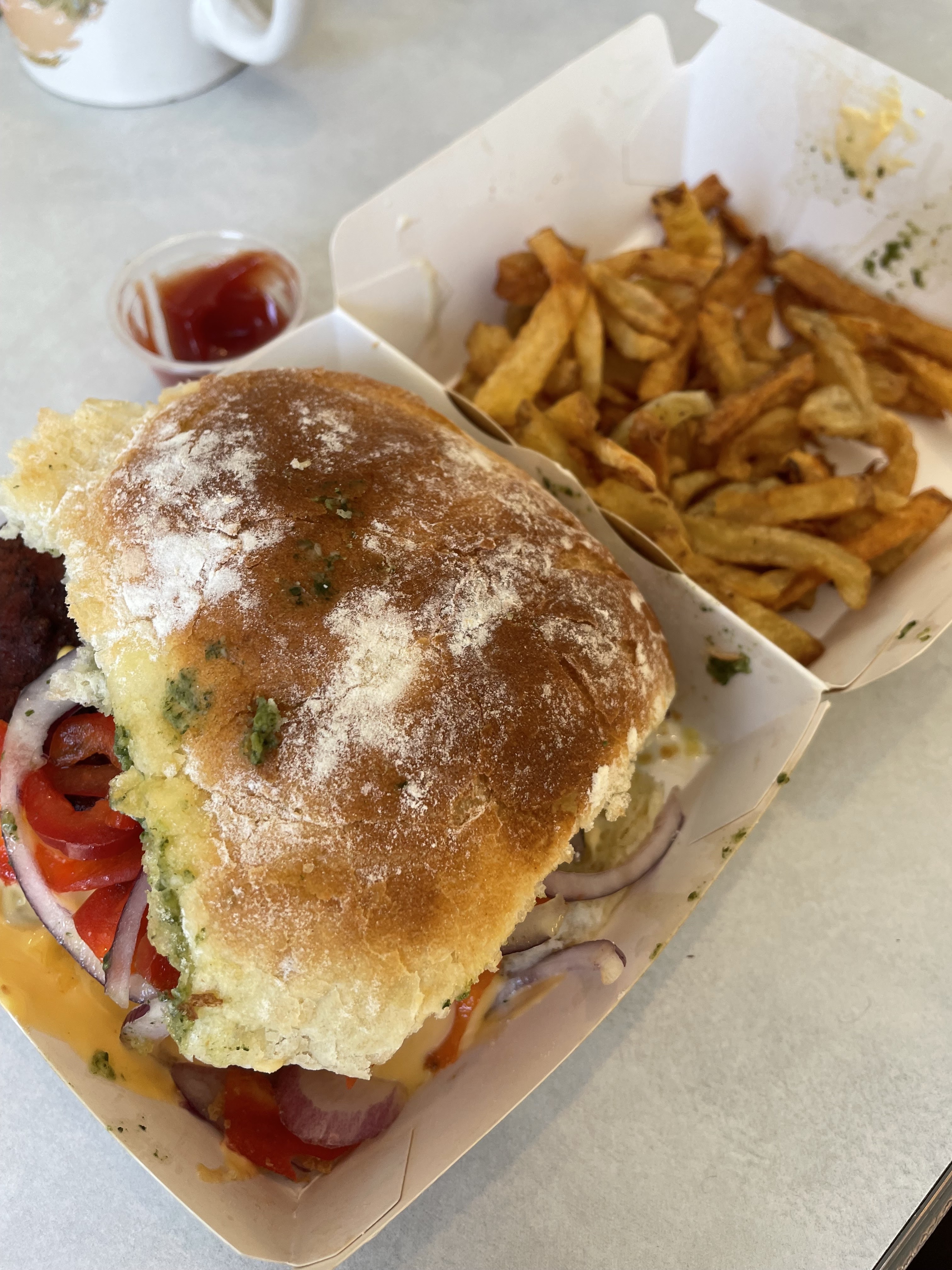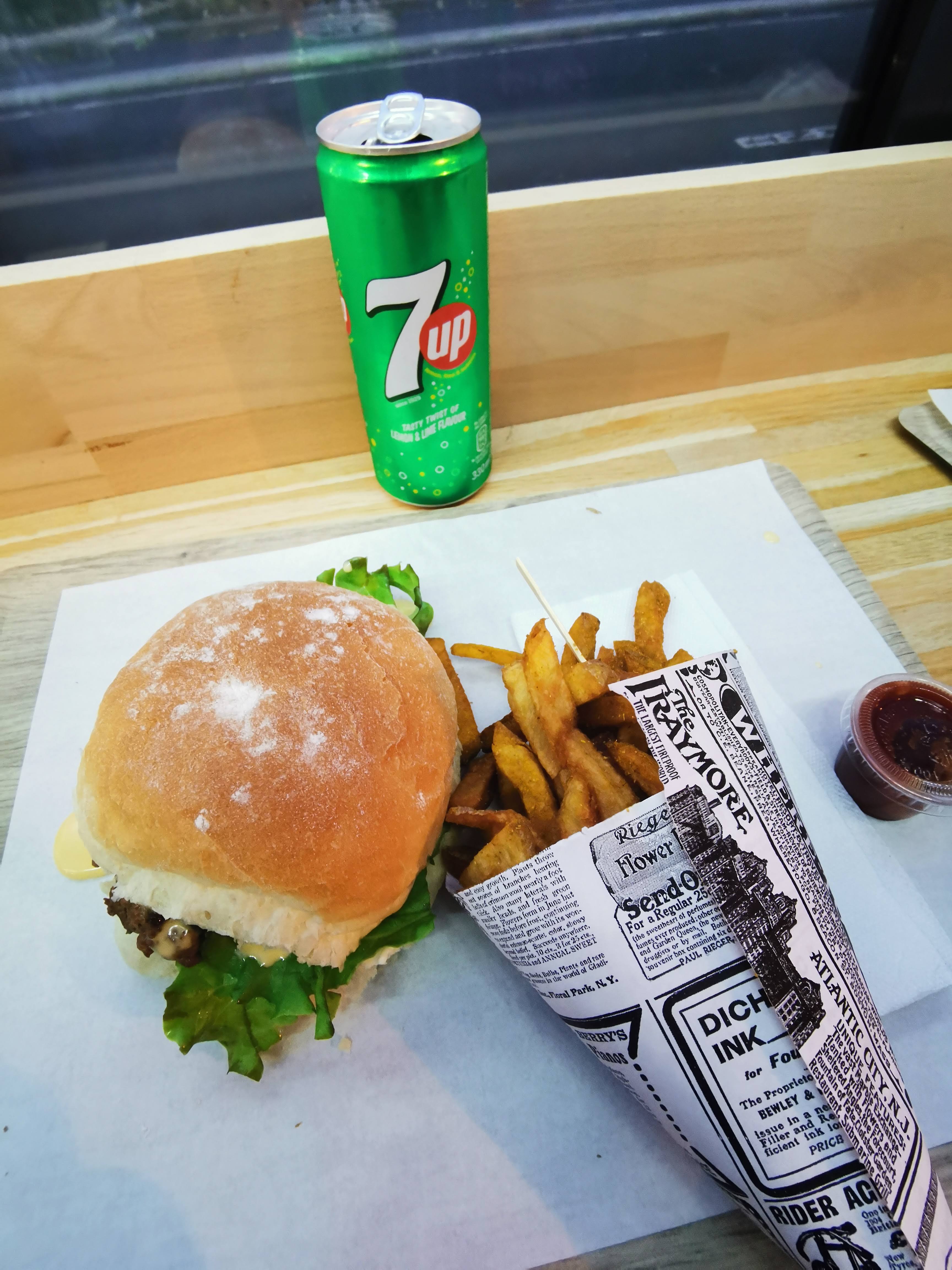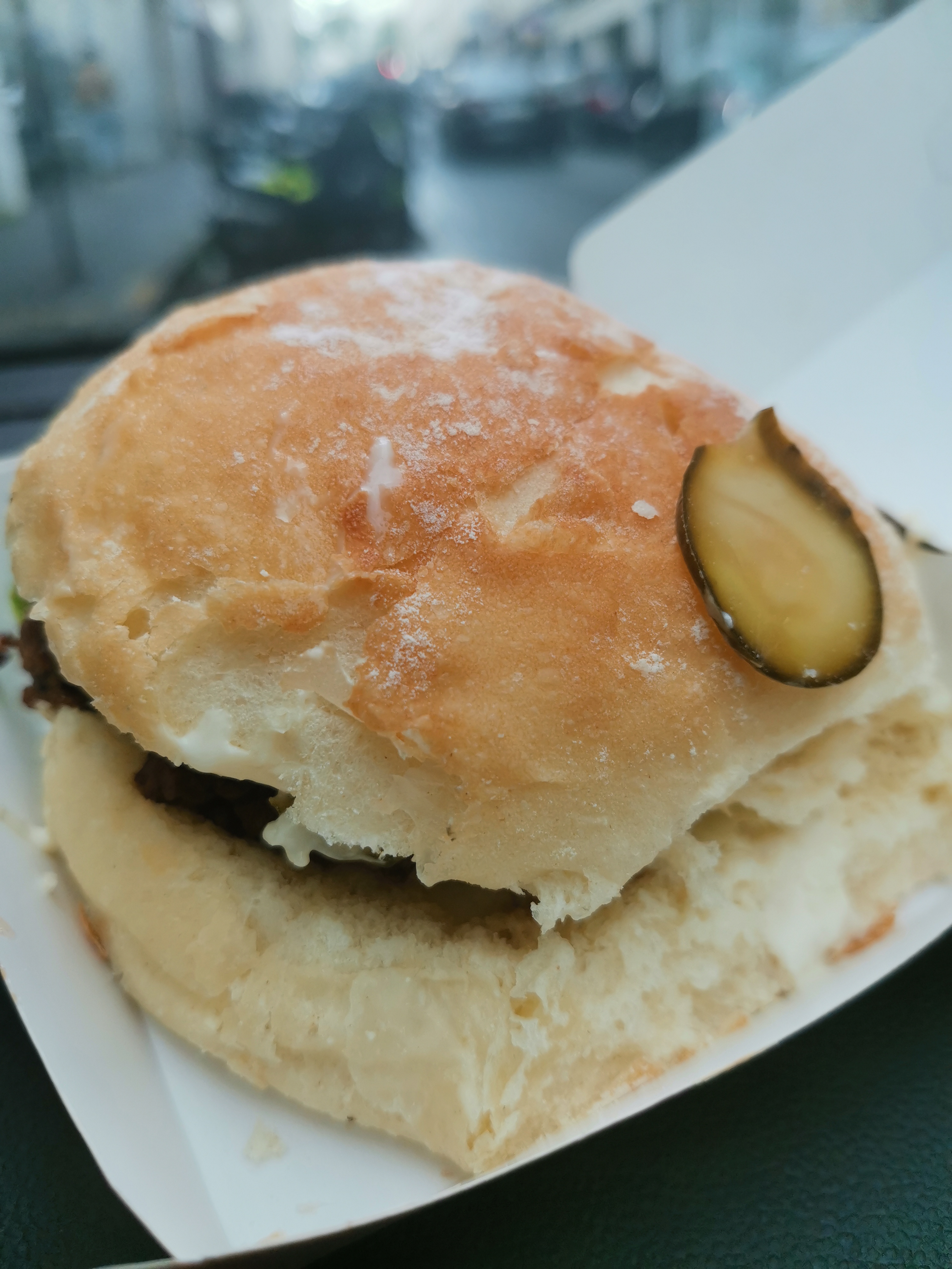 J'étais à la recherche de mon burger parfait et je l'ai enfin trouvé, et en plus pour seulement 3,60 euros. Je ne retournerai jamais dans les autres restaurants où le burger coûte 14 ou 19 euros. Ce que j'ai aimé dans ce burger, c'est la brioche incroyablement délicieuse et le burger lui-même qui est très juteux. Je suis très contente d'avoir découvert cet endroit (il y a aussi la climatisation à l'intérieur).
