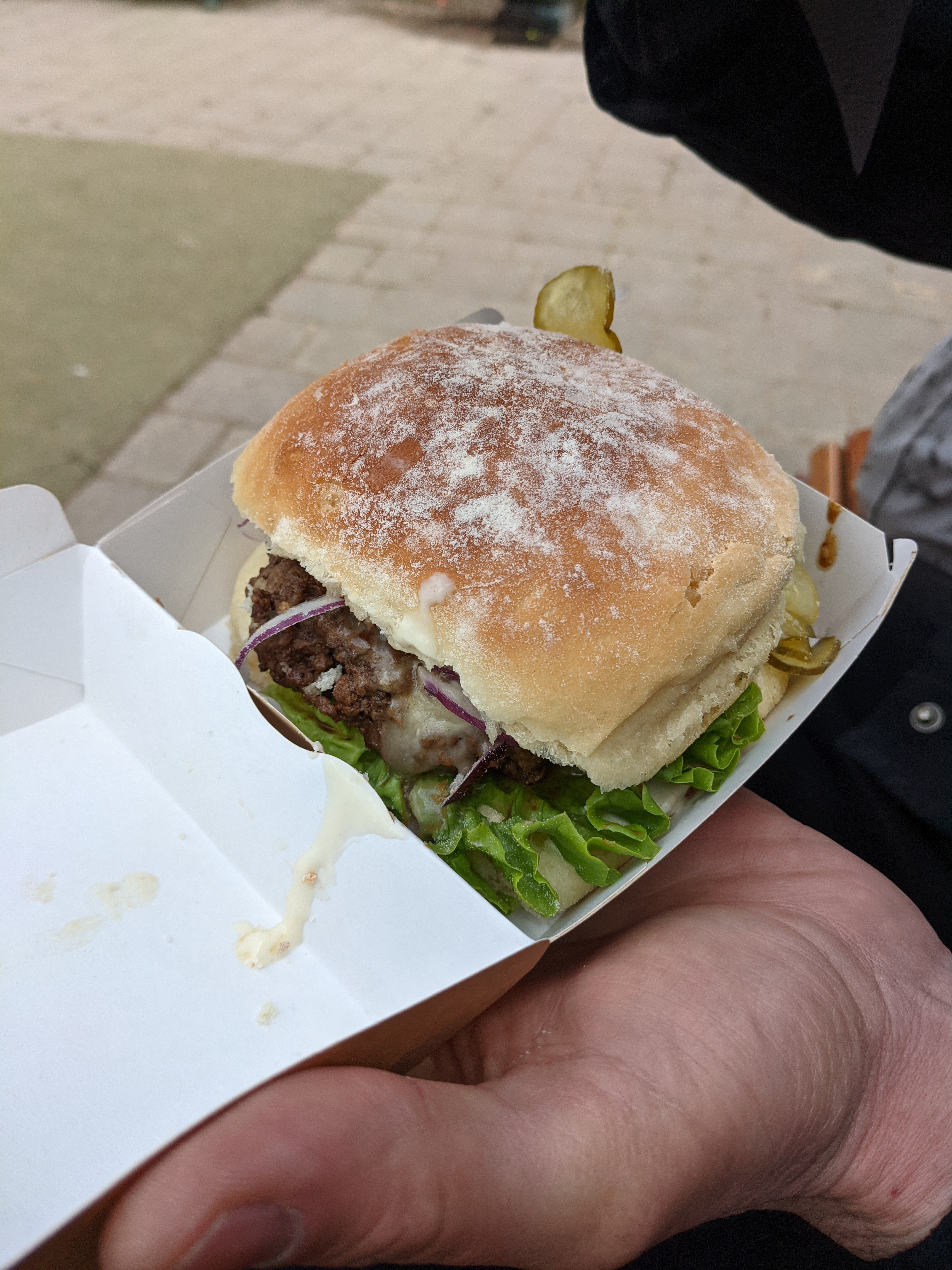 Cet endroit a beaucoup de succès !! Une très grande file d'attente devant pendant tout la durée d'ouverture. On a du attendre 1h30..... Mais les burgers sont vraiment très bon avec des prix imbattables !!!! Les frites sont bonnes, dommage d'être limité à un Burger par personne !!