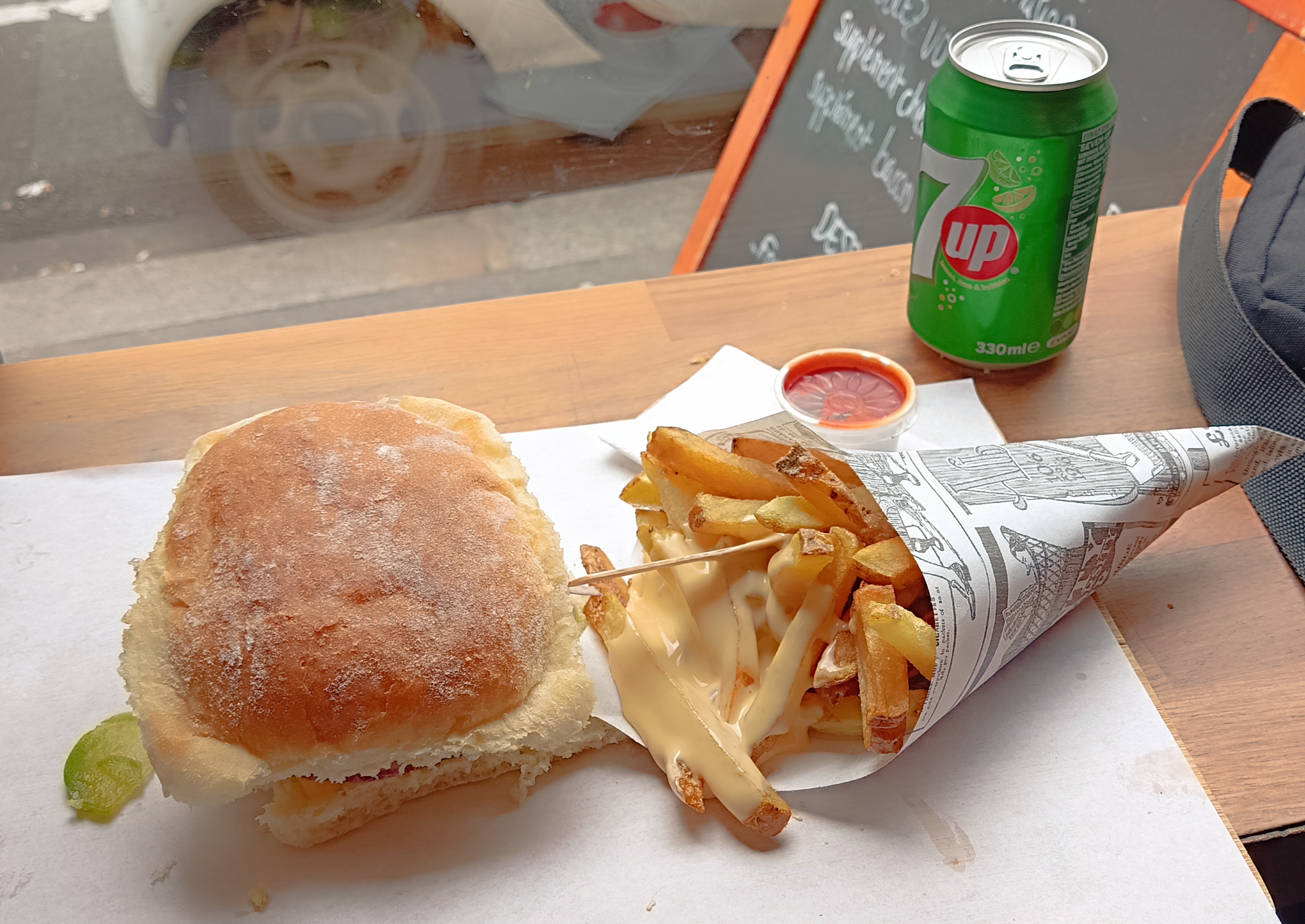On y mange très bien et pour pas cher! 2.80€ le burger et 1€ les frites maisons, franchement on trouverait pas moins cher avec cette qualité ailleurs! En plus la portion au niveau des burgers et des frites est généreuse, je n’ai même pas réussi à finir! J’y retournerais!