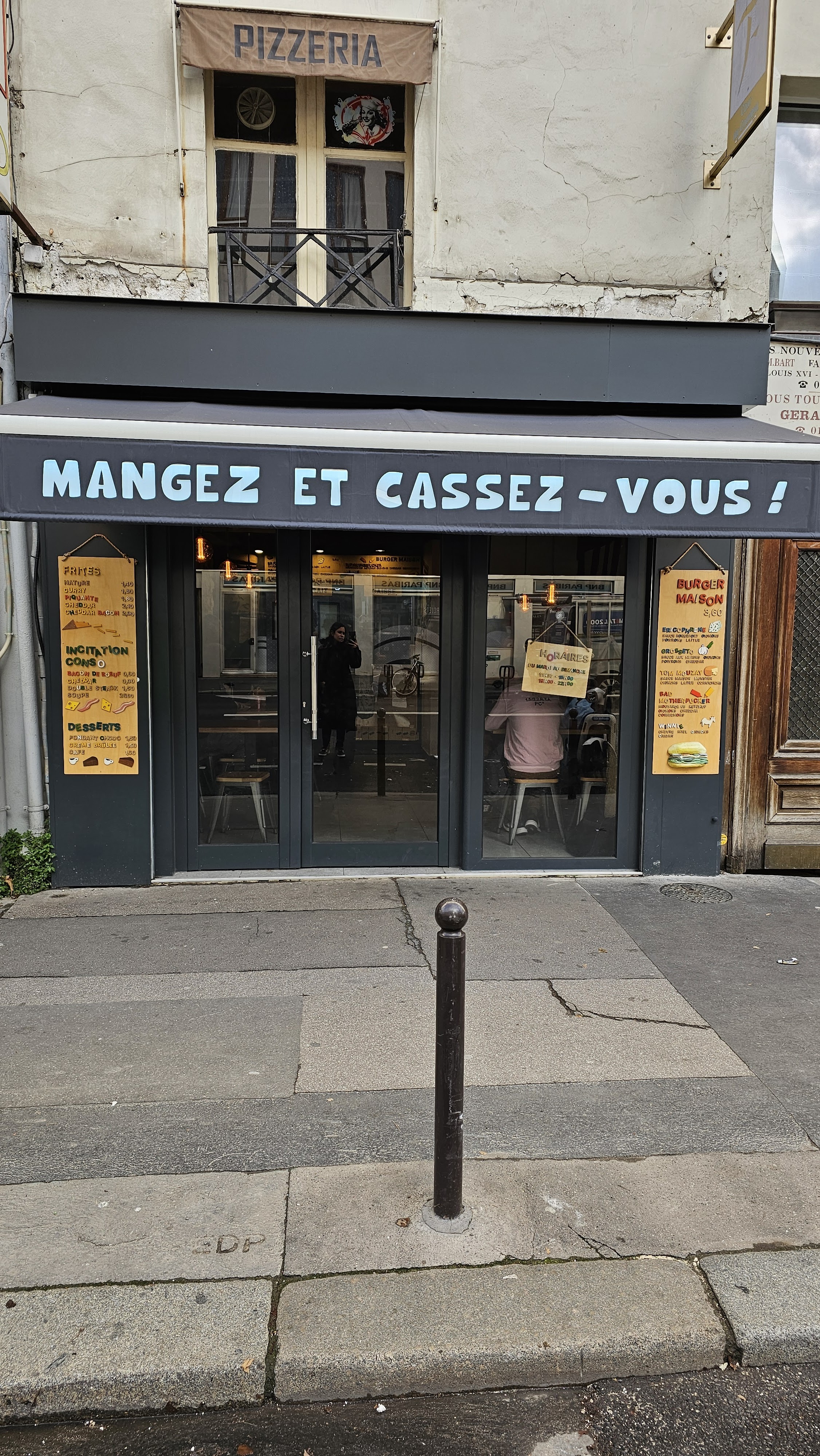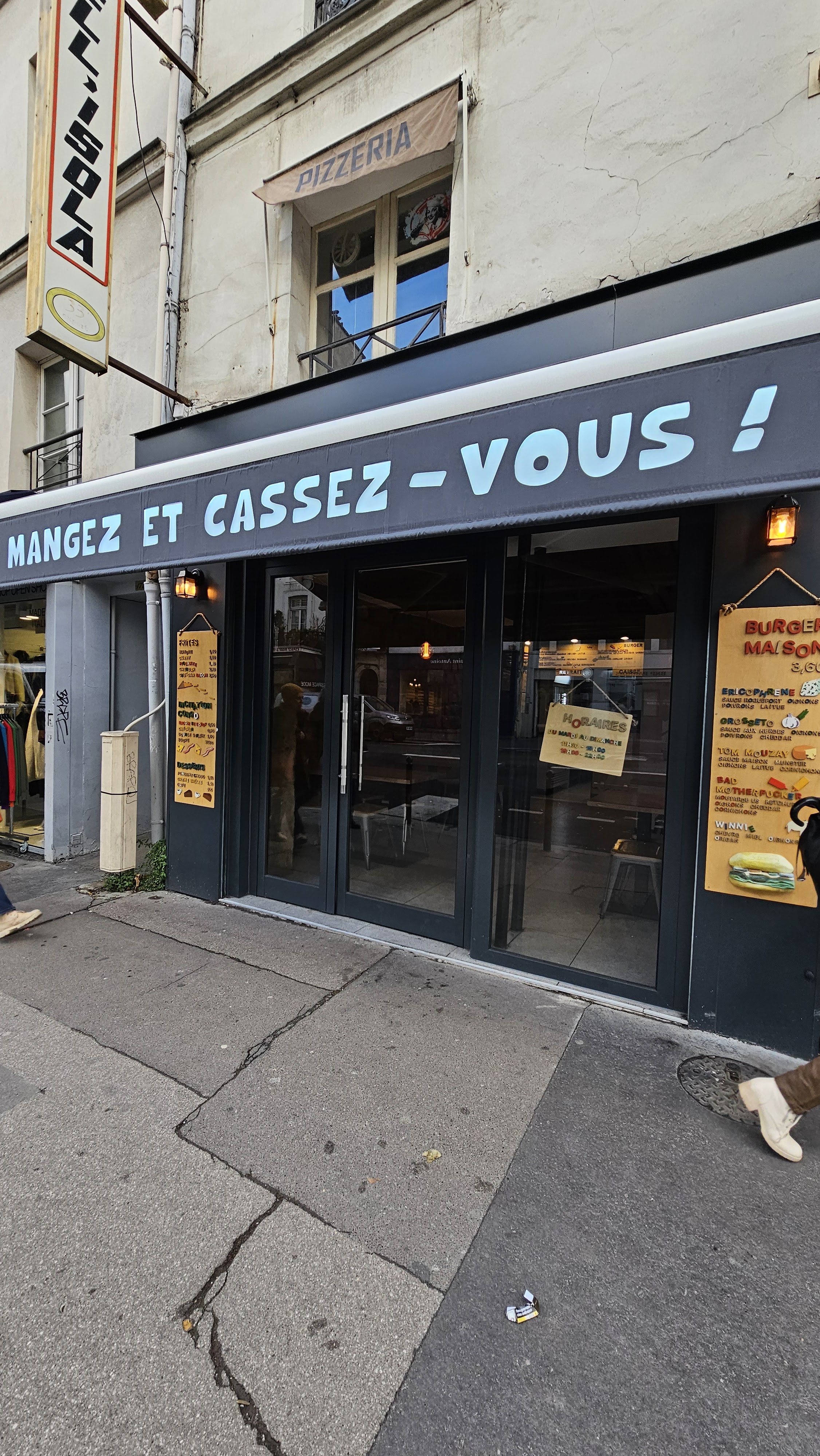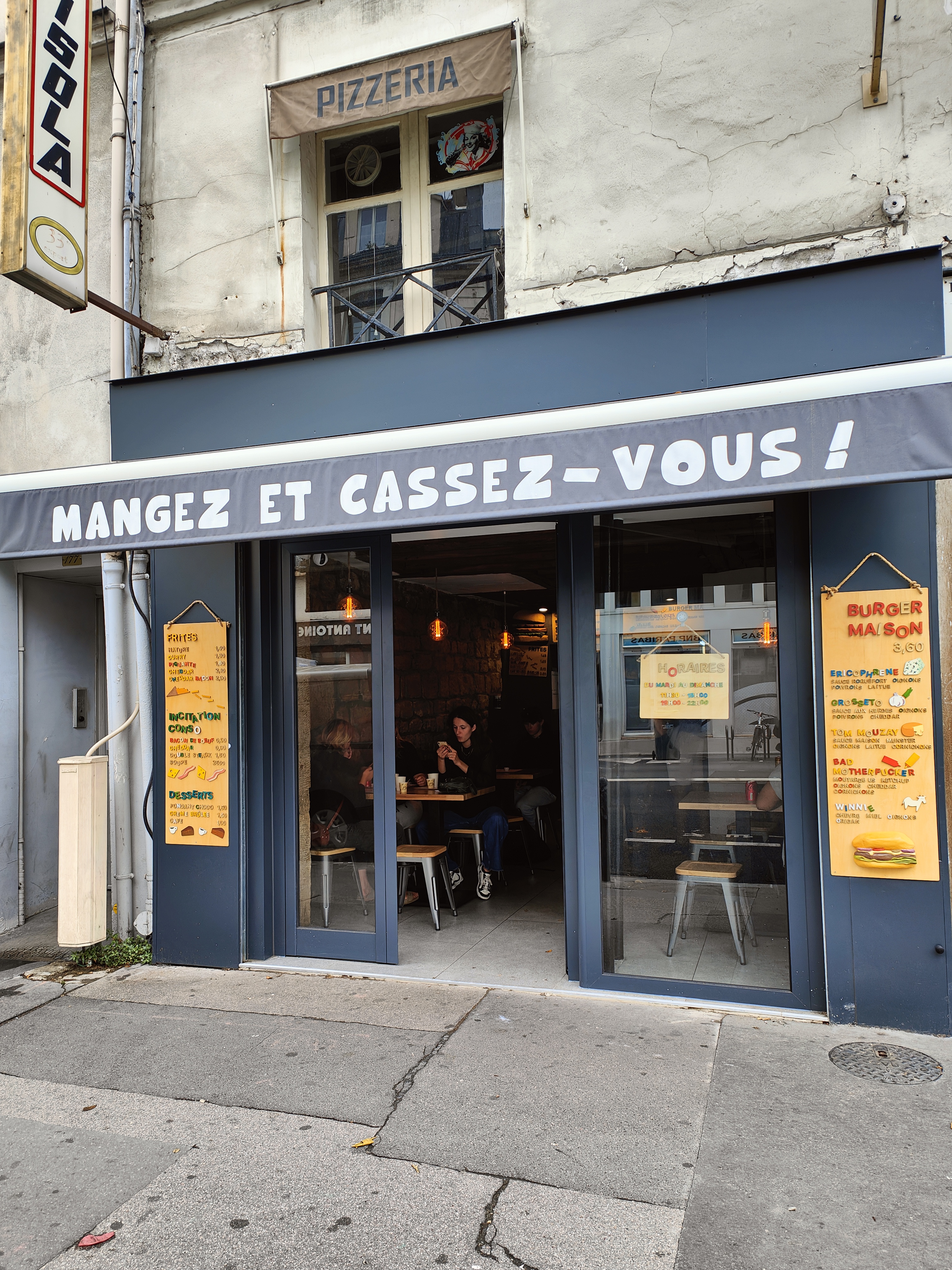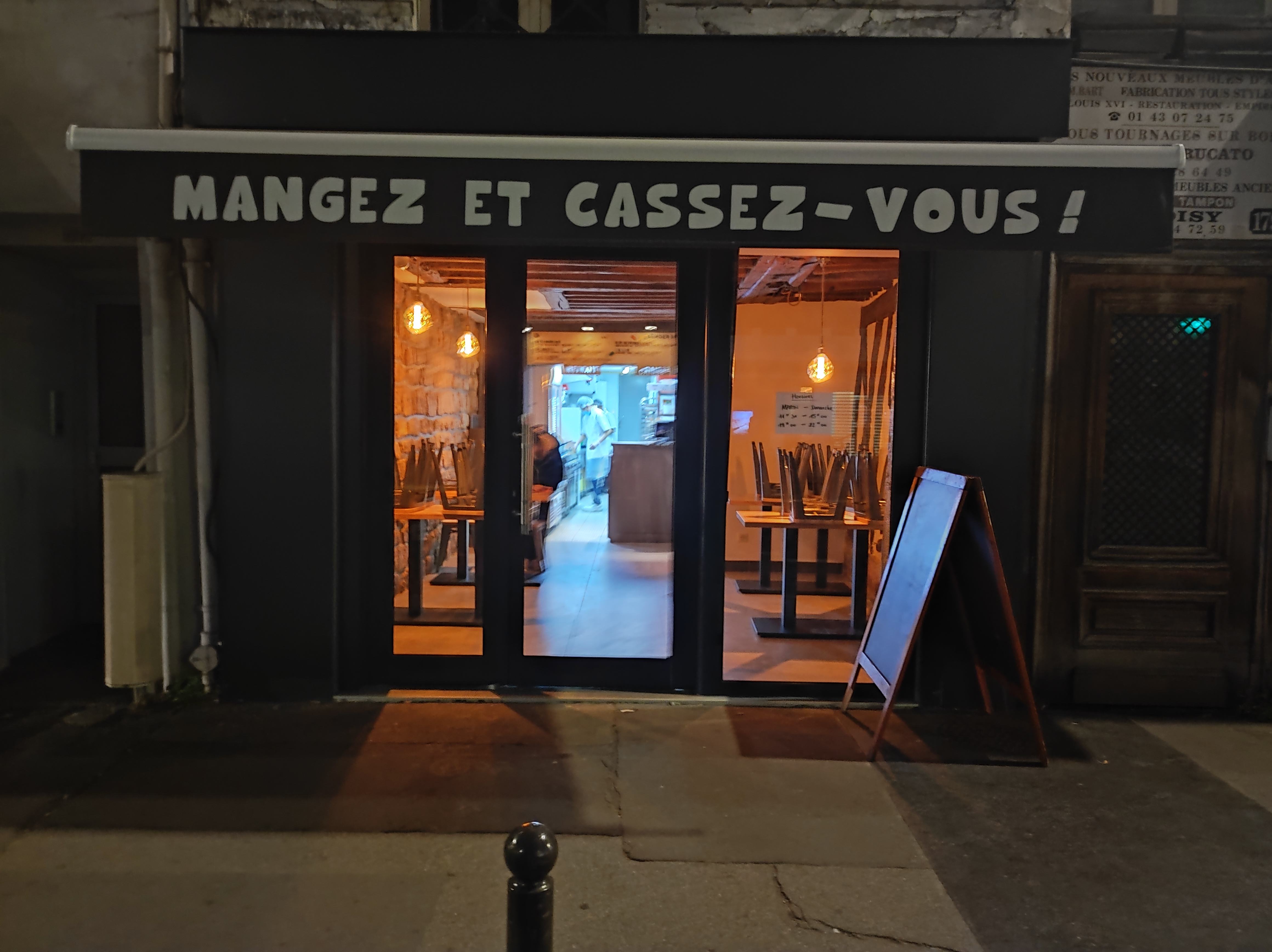 Le restaurant s'appelle Mangez et cassez vous mais on a pris à emporter donc ça devrait plutôt s'appeler Cassez vous et mangez !