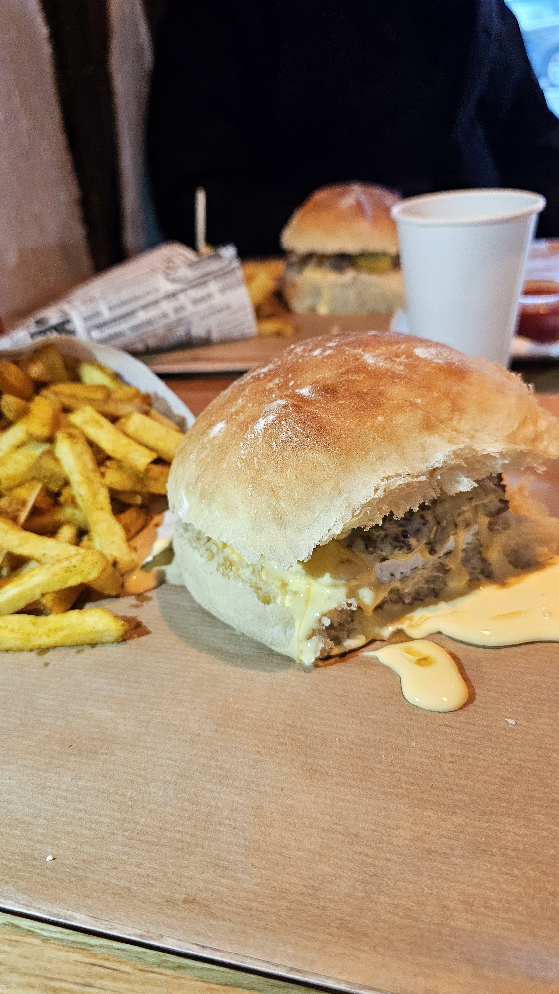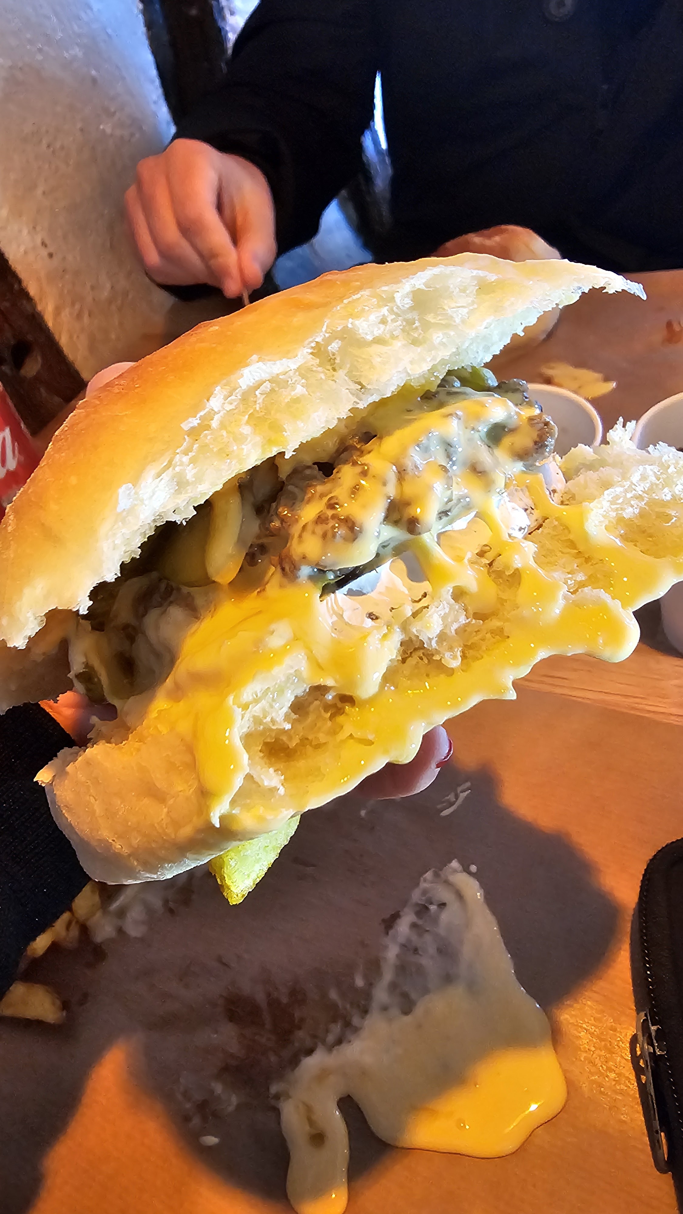 Burger avec beaucoup trop de sauce, ça dégoulinait de partout, comment le manger sans en mettre partout ? Il était pas mal sinon. Frittes molles. Bref on a tester mais ça sera la dernière fois.