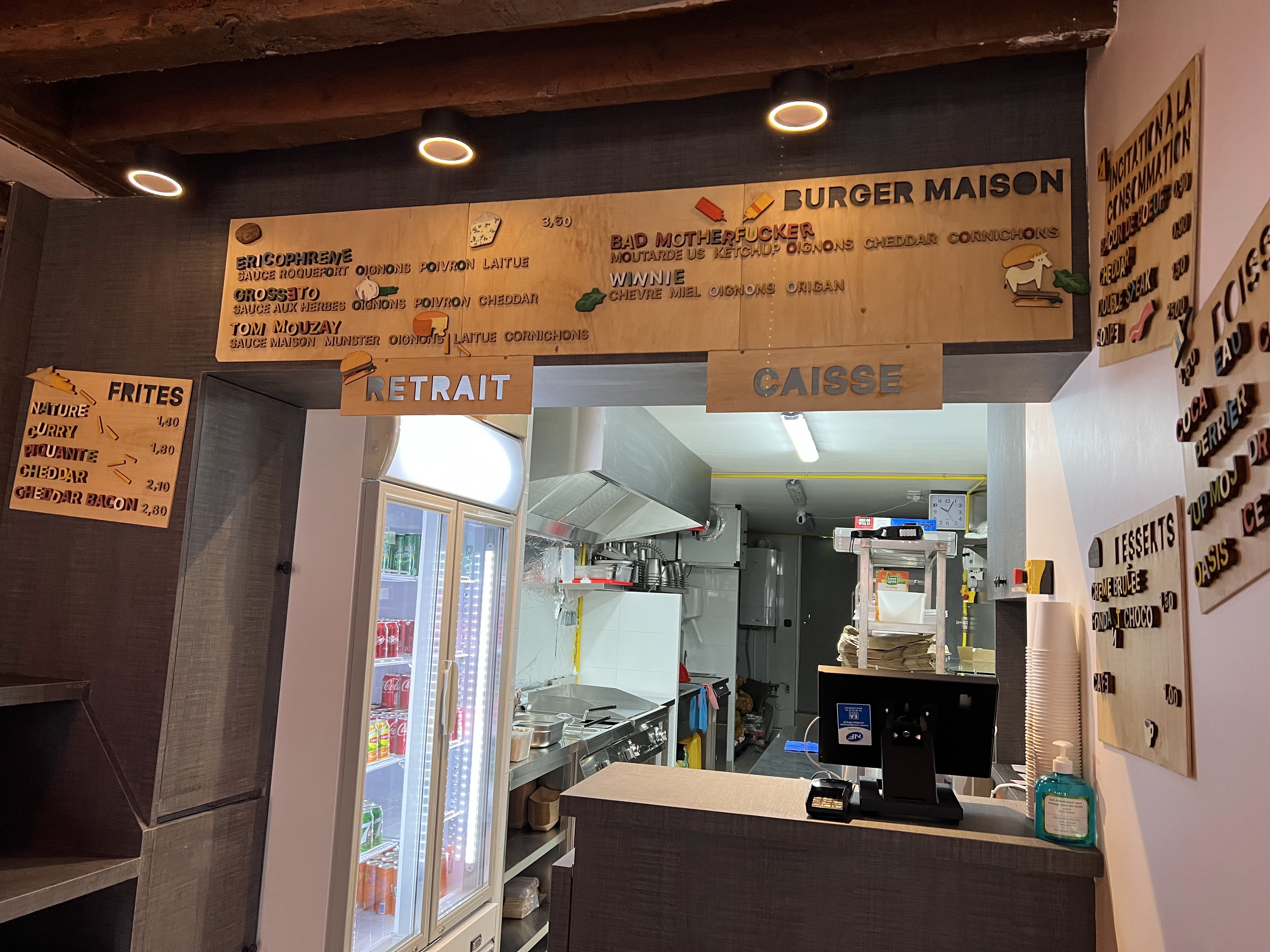 Je ne comprends pas les avis négatifs: que voulez vous de + pour un Burger à 3,60 et des frites à 1,50? Avec un pain maison, frites maison. Vous préférez le McDo ? Sûrement pas ! Cet endroit est génial et même quand on y arrive quelques minutes avant la fermeture ils nous servent toujours. Je recommande !!