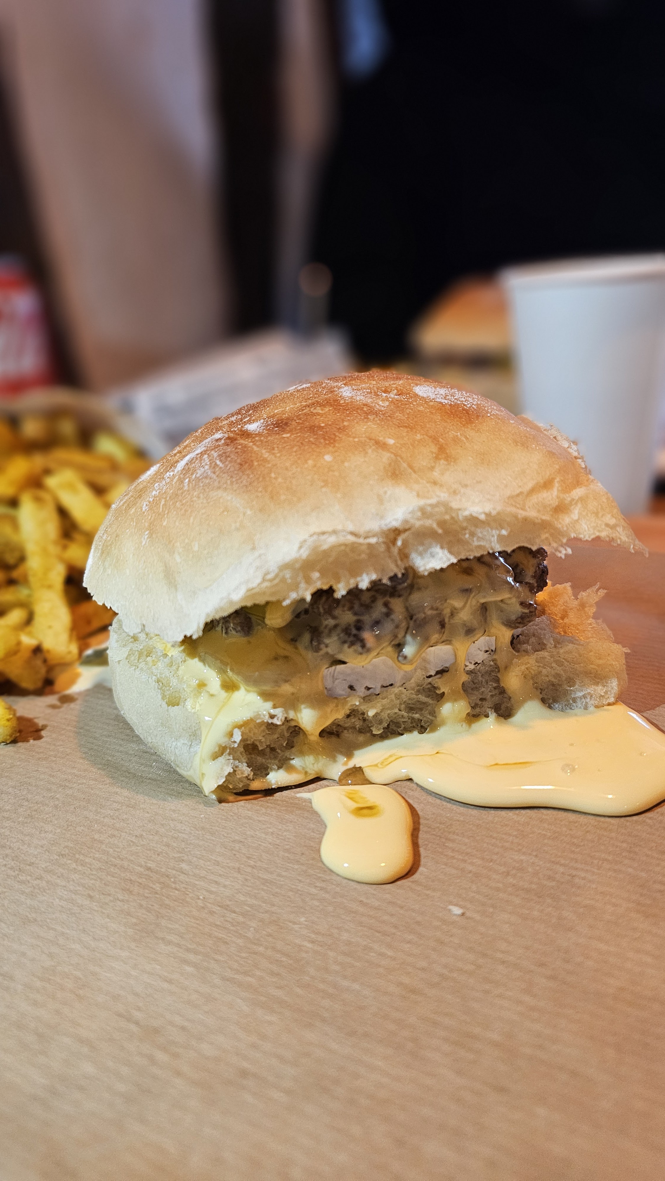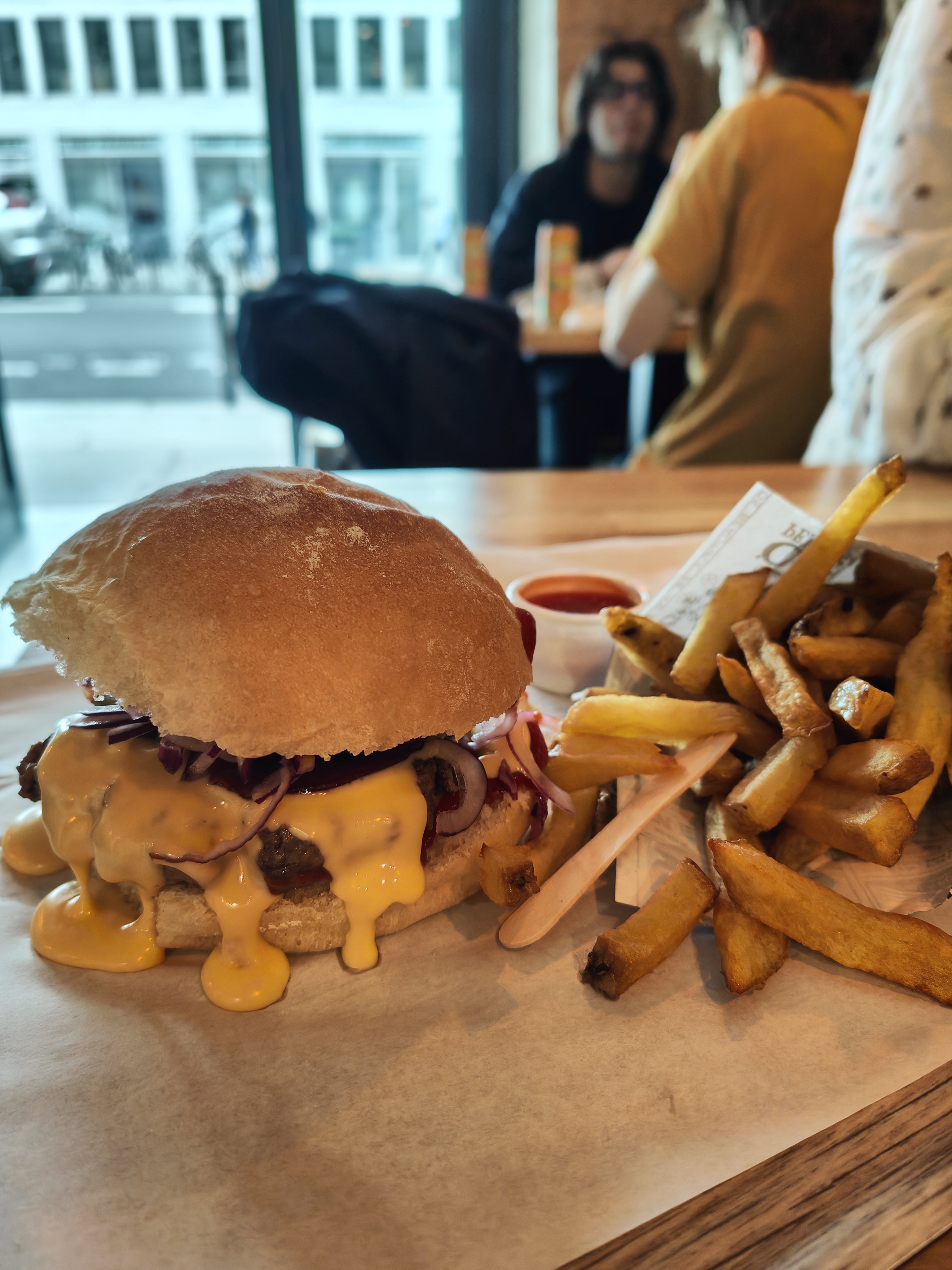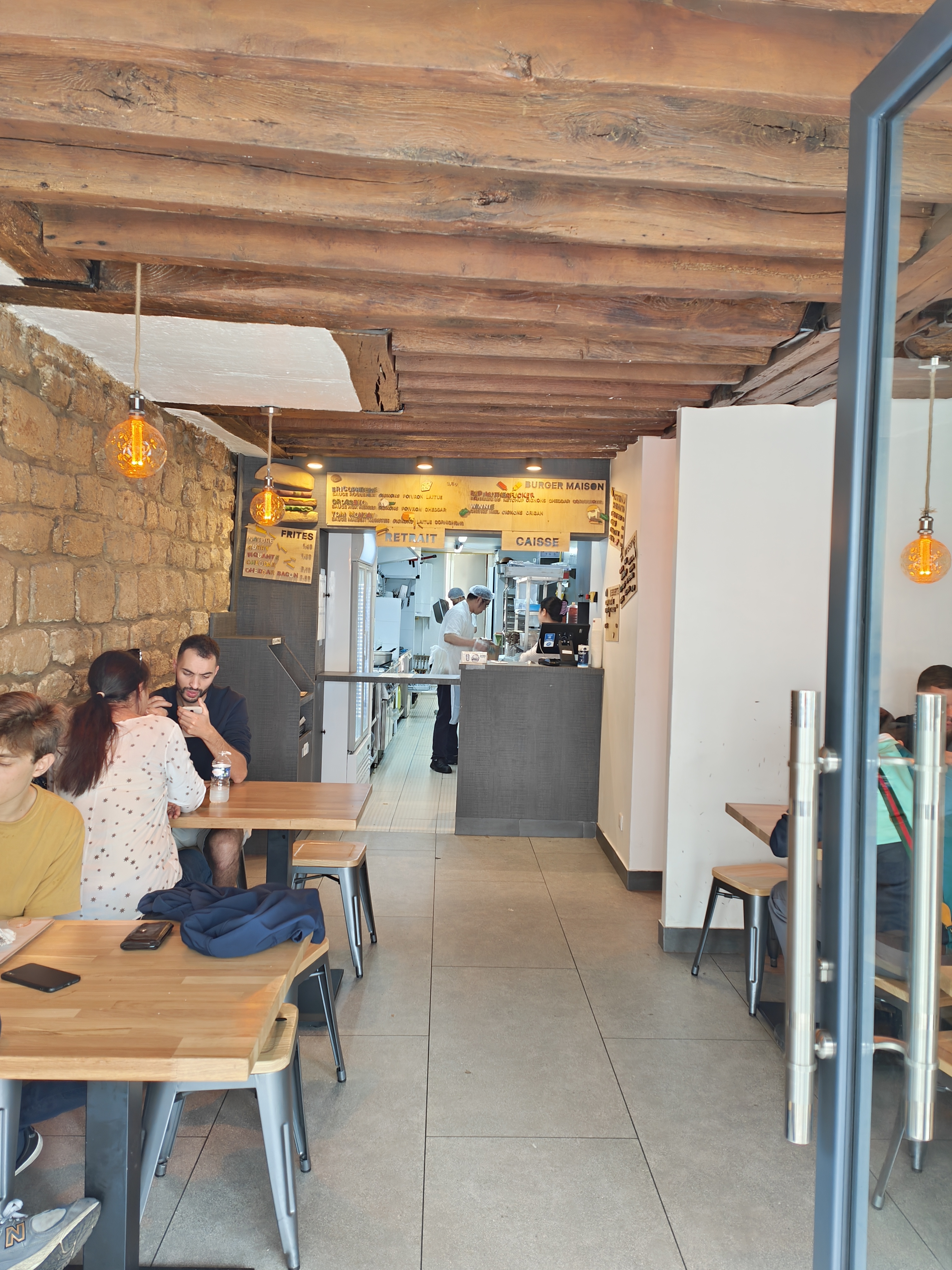 Chaleureux, rapide et convivial ! Très bon Burgers et frites !!! Manque de place dommage pour manger surtout quand il fait froid !!!