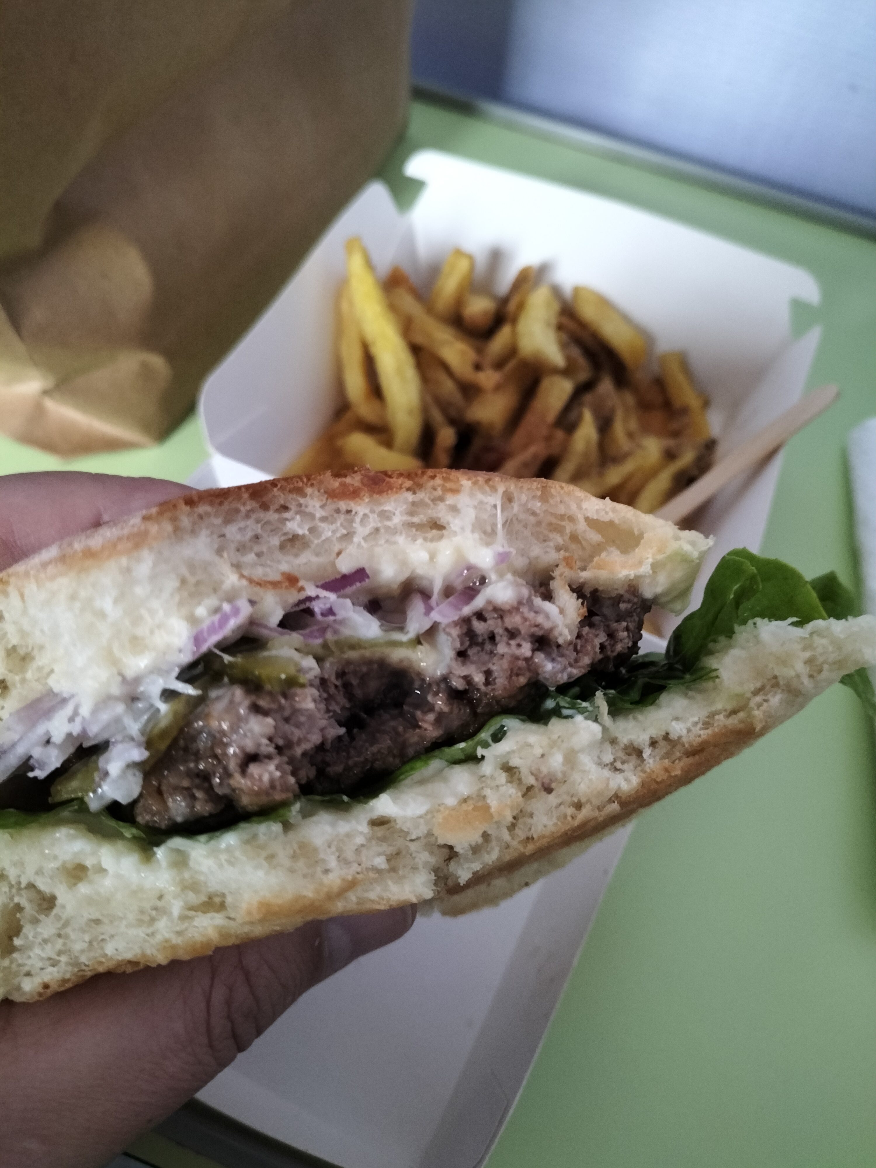 Très bon Burger ! Rien a dire, meilleur rapport qualité prix pour un Burger avec des produits fait maison ! Il ne faut pas s’attendre à une explosion de saveur, cela reste un Burger a 3€, mais pour ce prix, il est exceptionnel ! De même pour les frites, elles sont excellentes avec leurs épices !