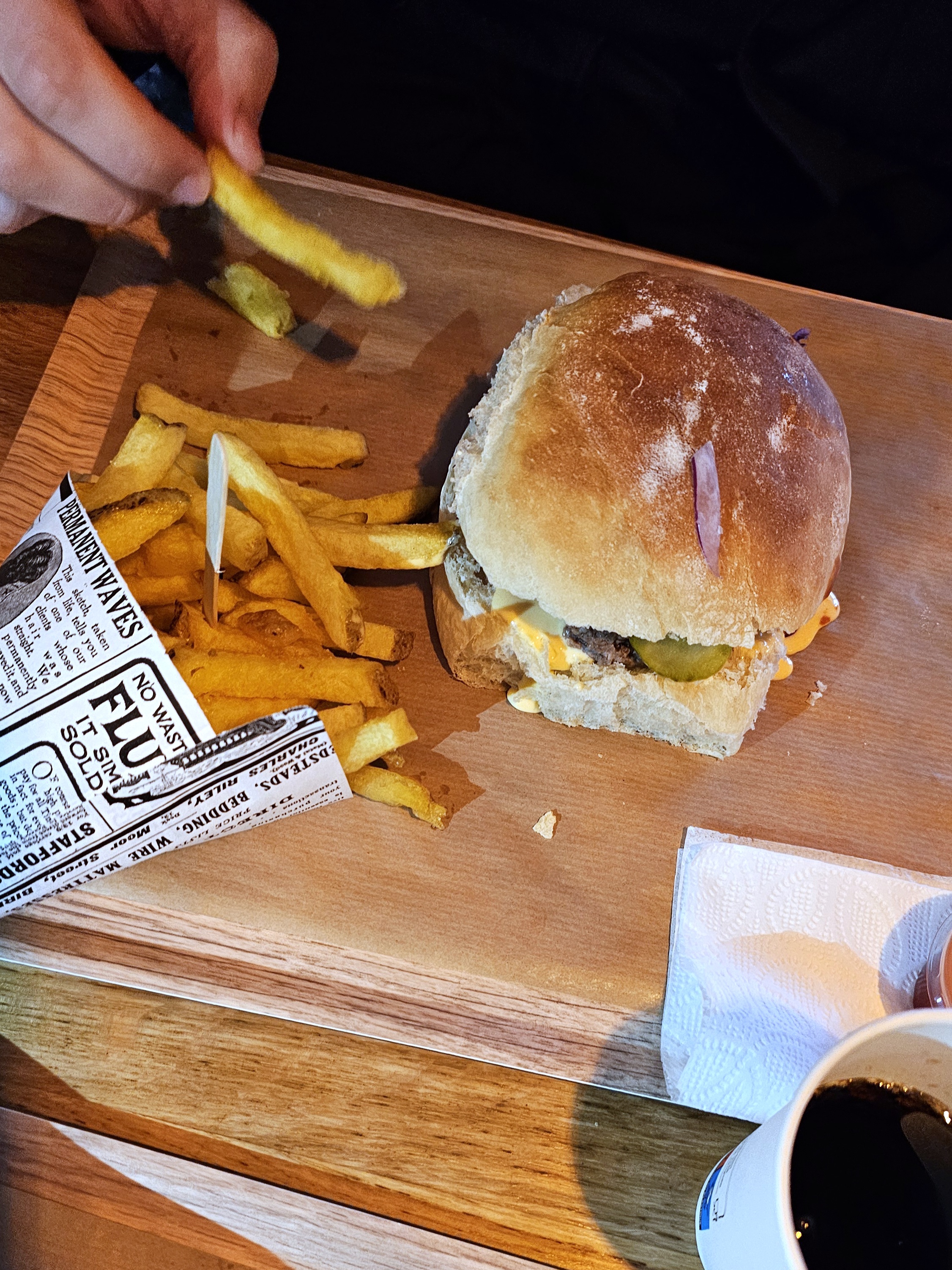 J'avais entendu parler du concept et ai voulu tester mais j'ai vraiment été déçue. Les prix ont bien augmenté depuis le début. Le burger bof : beaucoup de pain très mou, peu de saveurs pour le BMF. Frites maison bonnes mais beaucoup de chutes donc très petites. Cœur coulant au chocolat franchement pas savoureux et vendu pour un fondant. La demande systématique du bacon dans le burger est piégeux car il nest pas offert mais facturé en plus. Cela semble peu cher mais rapport qualité/prix moyen...