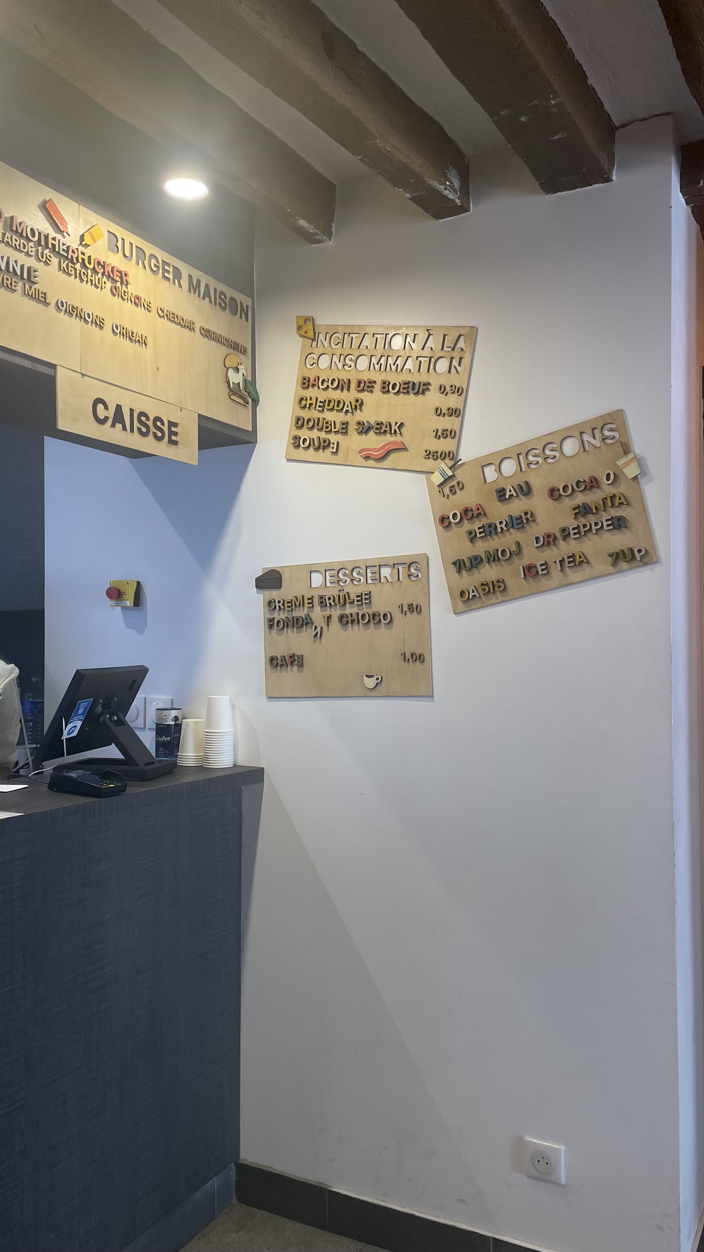 C’est censé être pas cher mais au final on s’en sort pour 10€ avec les frites la boisson.