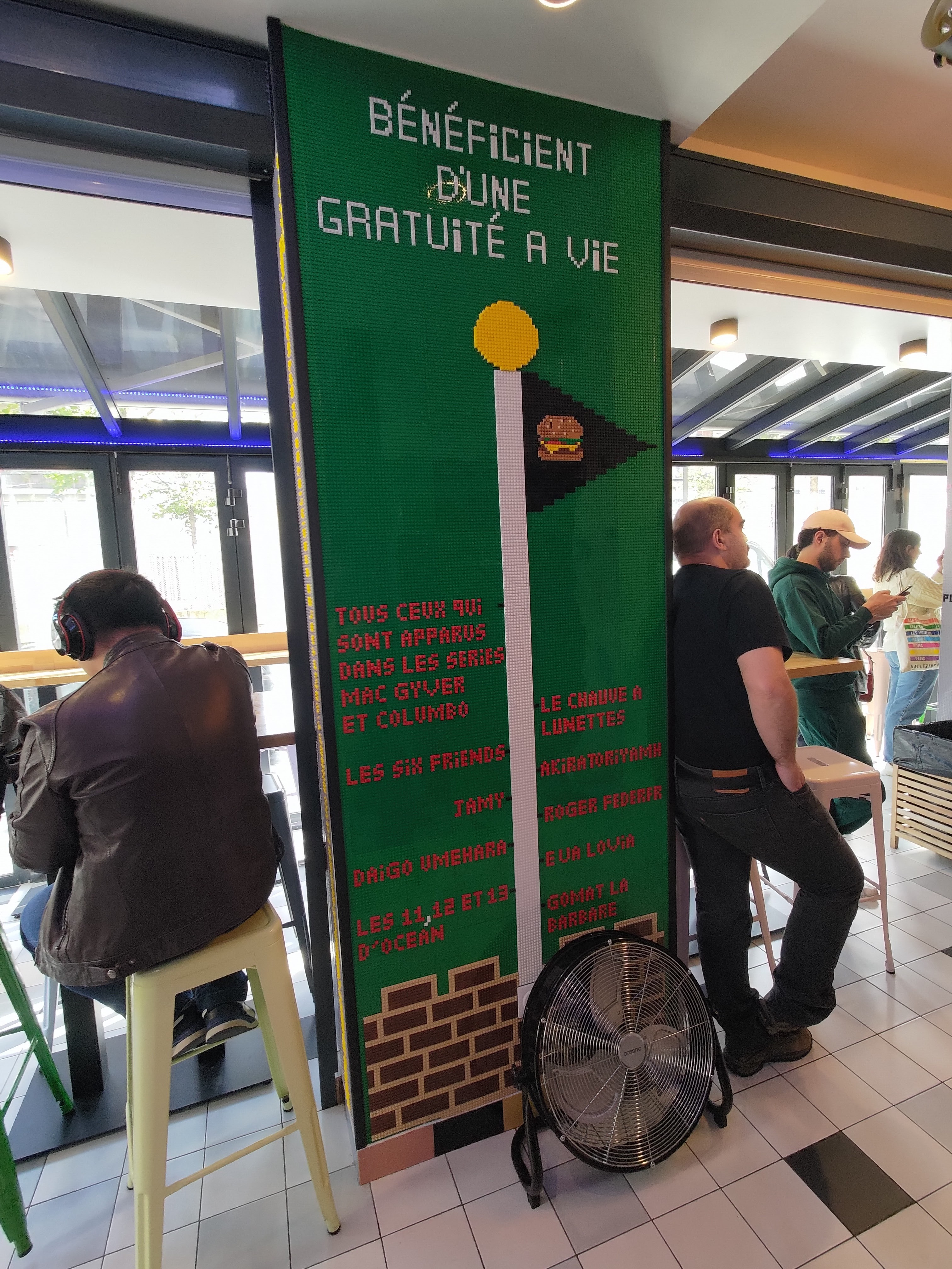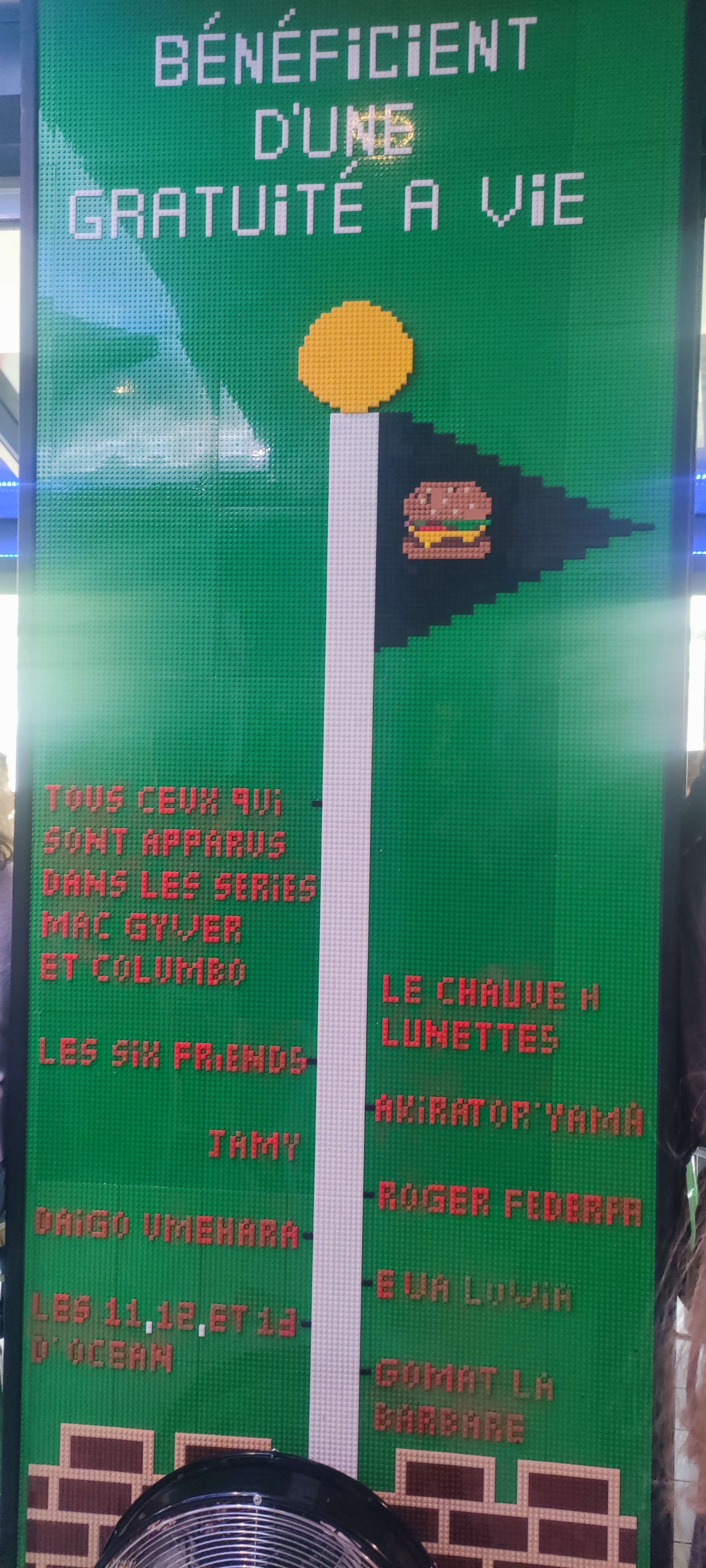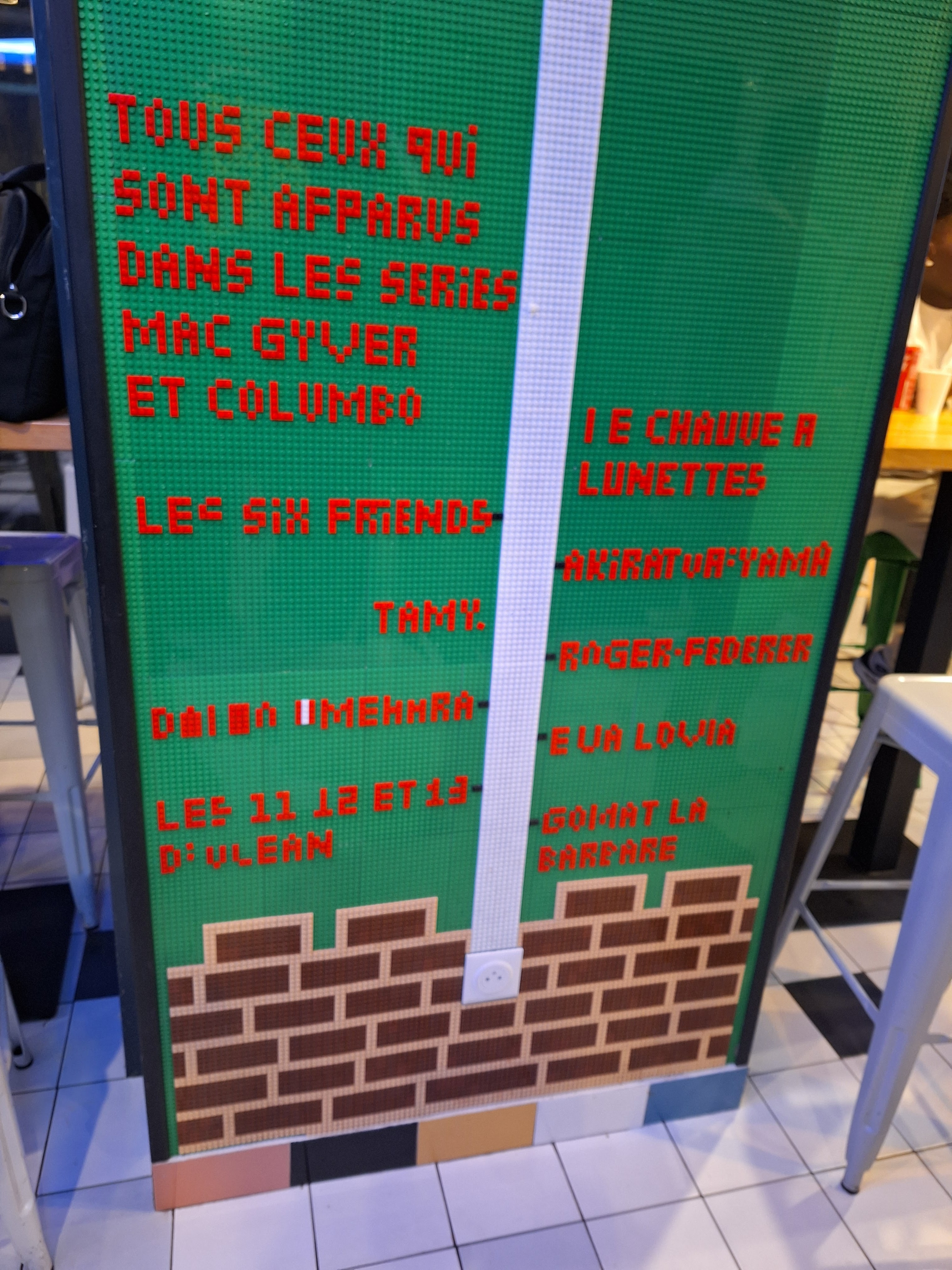 A proximité du métro Super déco Lego Bon choix de burger, frites, boissons et même desserts Pas trop d'attente Presque tout et fait maison Les burgers sont bon idem pour les frites bacon cheddar et le fondant est bien fondant Un point négatif ? La soupe un peu chère 😉 Pas de coca cerise et de mayo