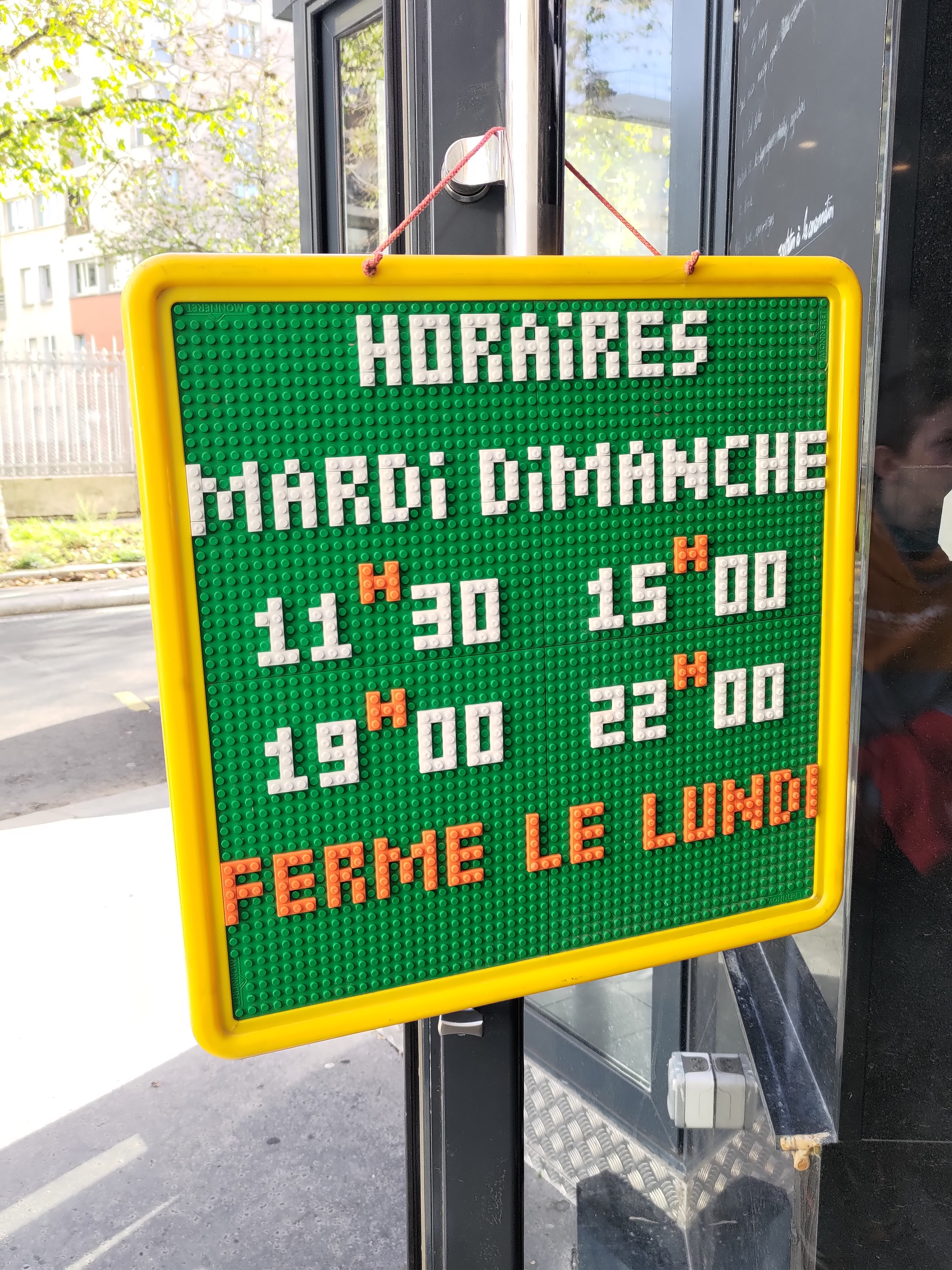 Le nom du restaurant est marrant mais contrairement à ce qu'il pourrait laisser croire on n'est pas forcé de partir après avoir mangé. La déco en Lego est bien sympa. Pour un petit prix, on est servi vite et c'est vraiment pas mauvais, surtout avec des produits maison.