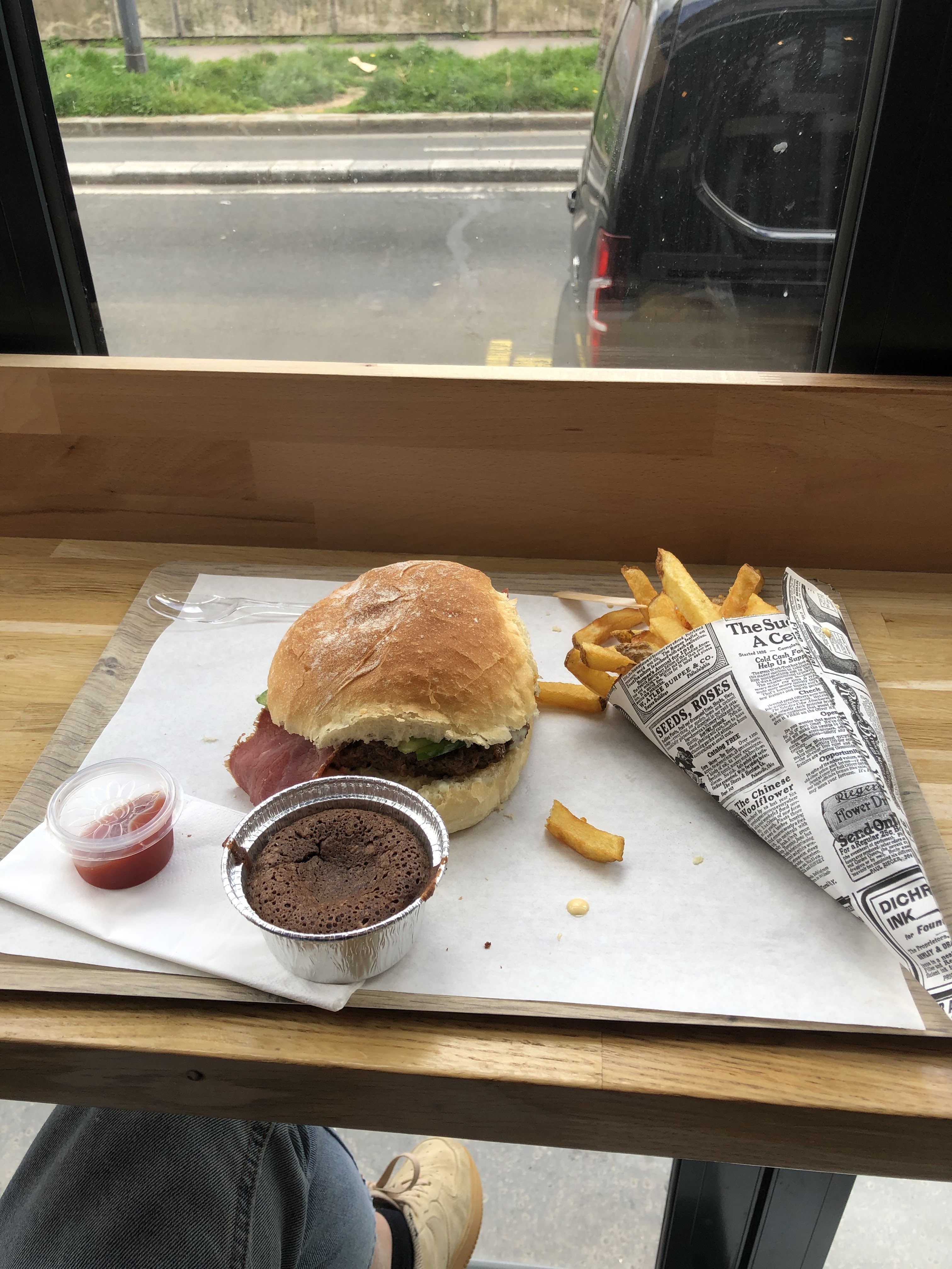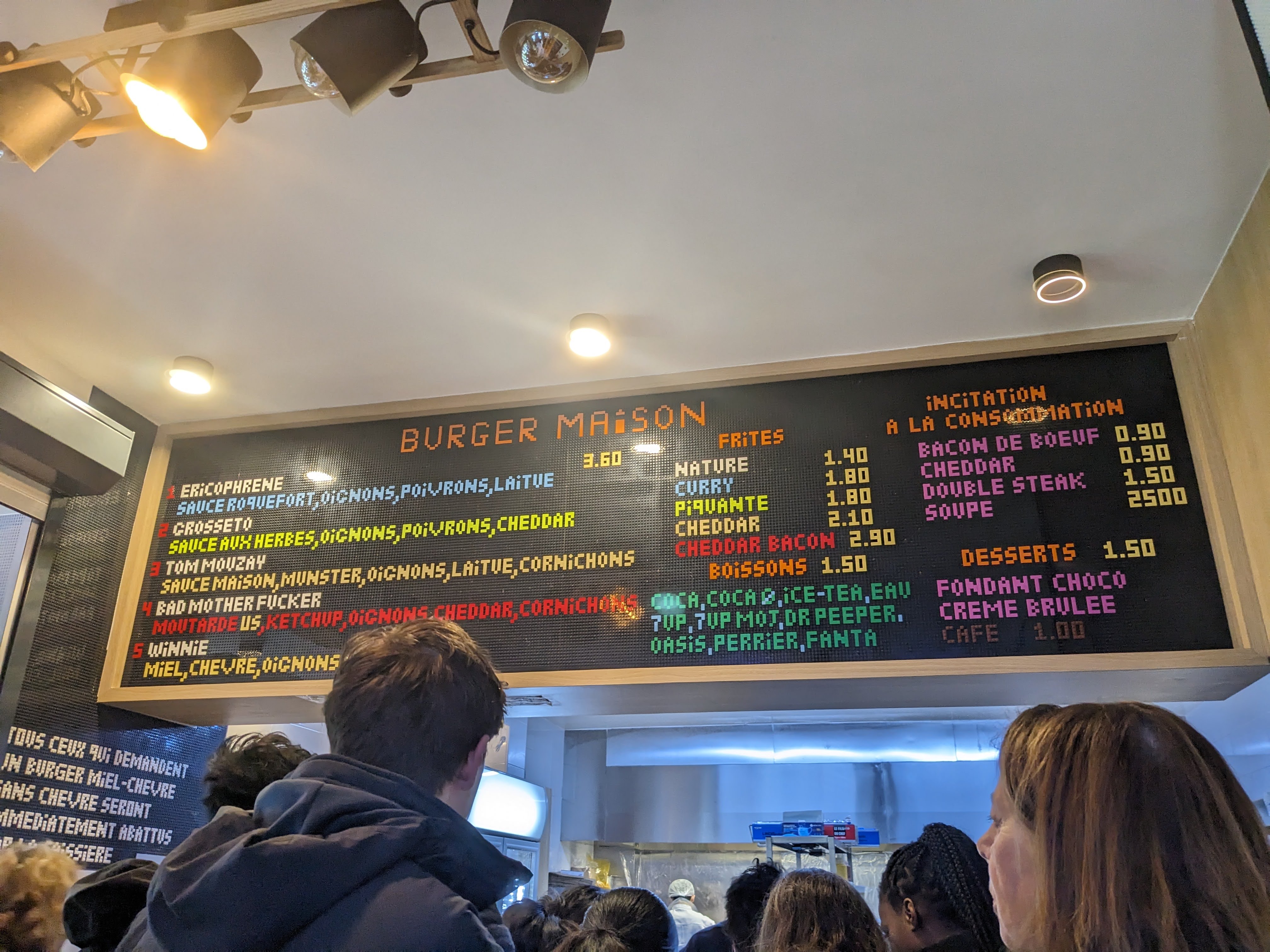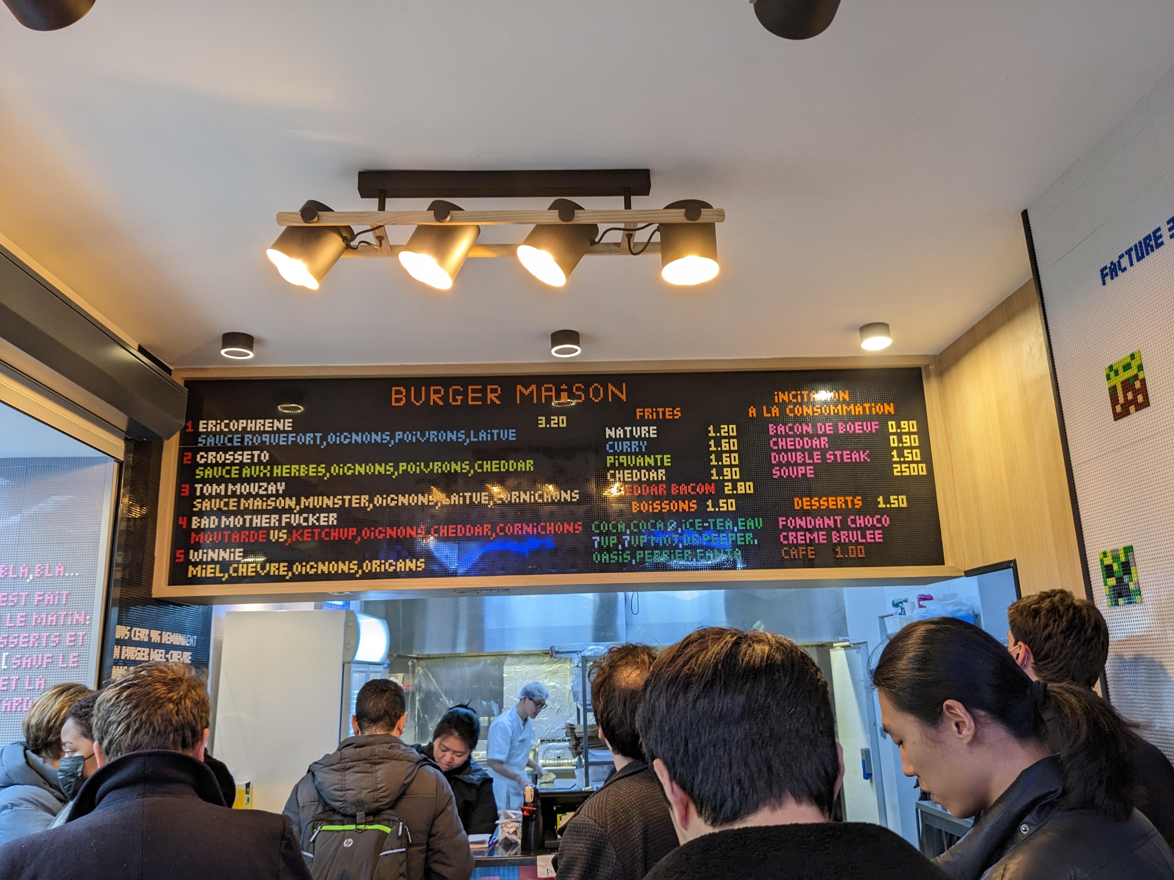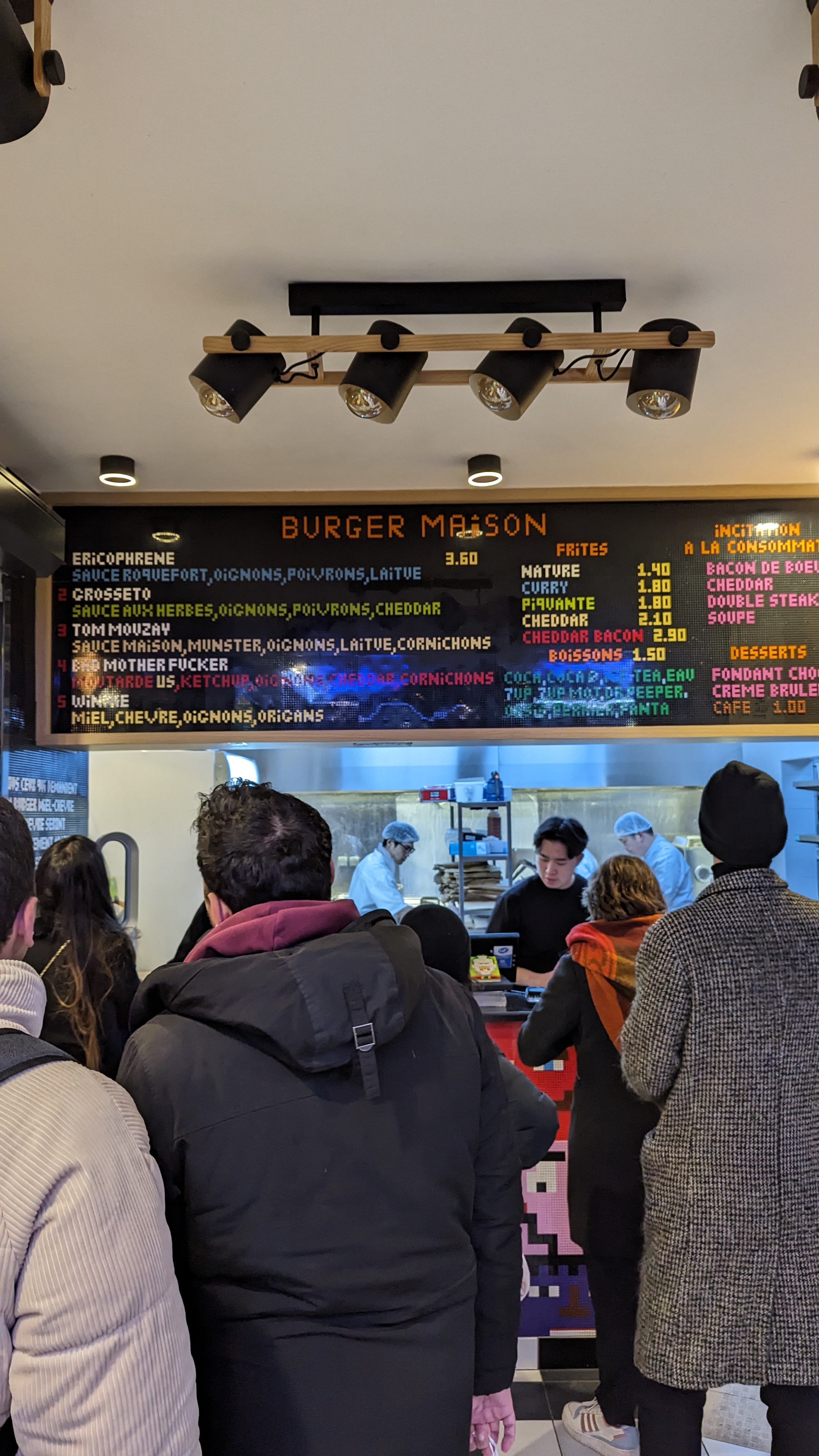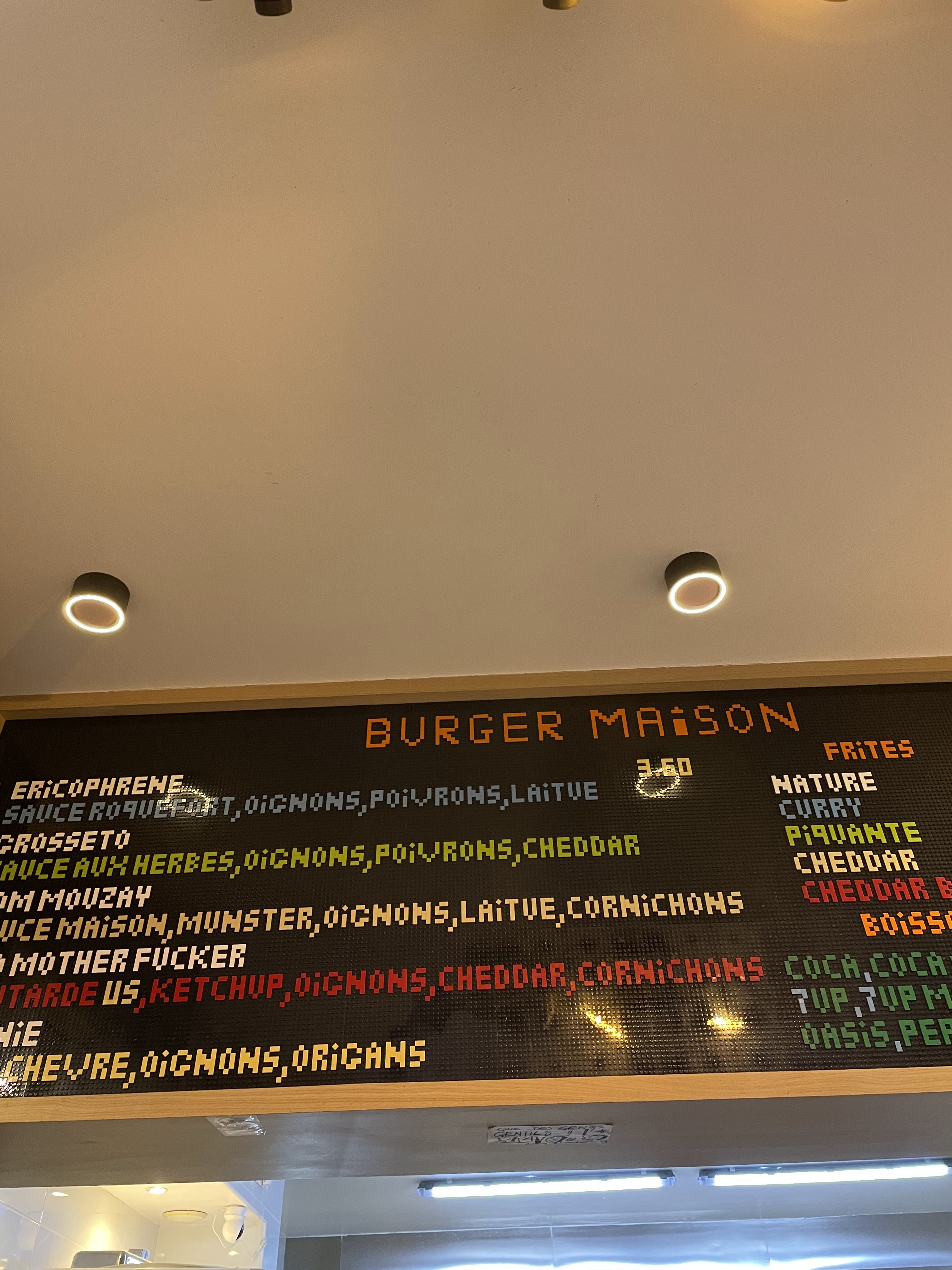 C'est mon fils et ma fille en weekend à Paris il y a 2 semaines ont entendu parler de ce lieu via TikTok. Ils en étaient contents donc du coup avec mon fils en weekend à Paris nous y sommes allés et franchement pas déçus on s'est régalé que ce soit le burger ou les frites on sent que c'est fait maison. On mange super bien pour pas cher. La déco est originale, le nom du restaurant aussi. Je dis bravo à cette équipe. Je recommande sans hésiter, allez-y les yeux fermés et la bouche ouverte 😀.