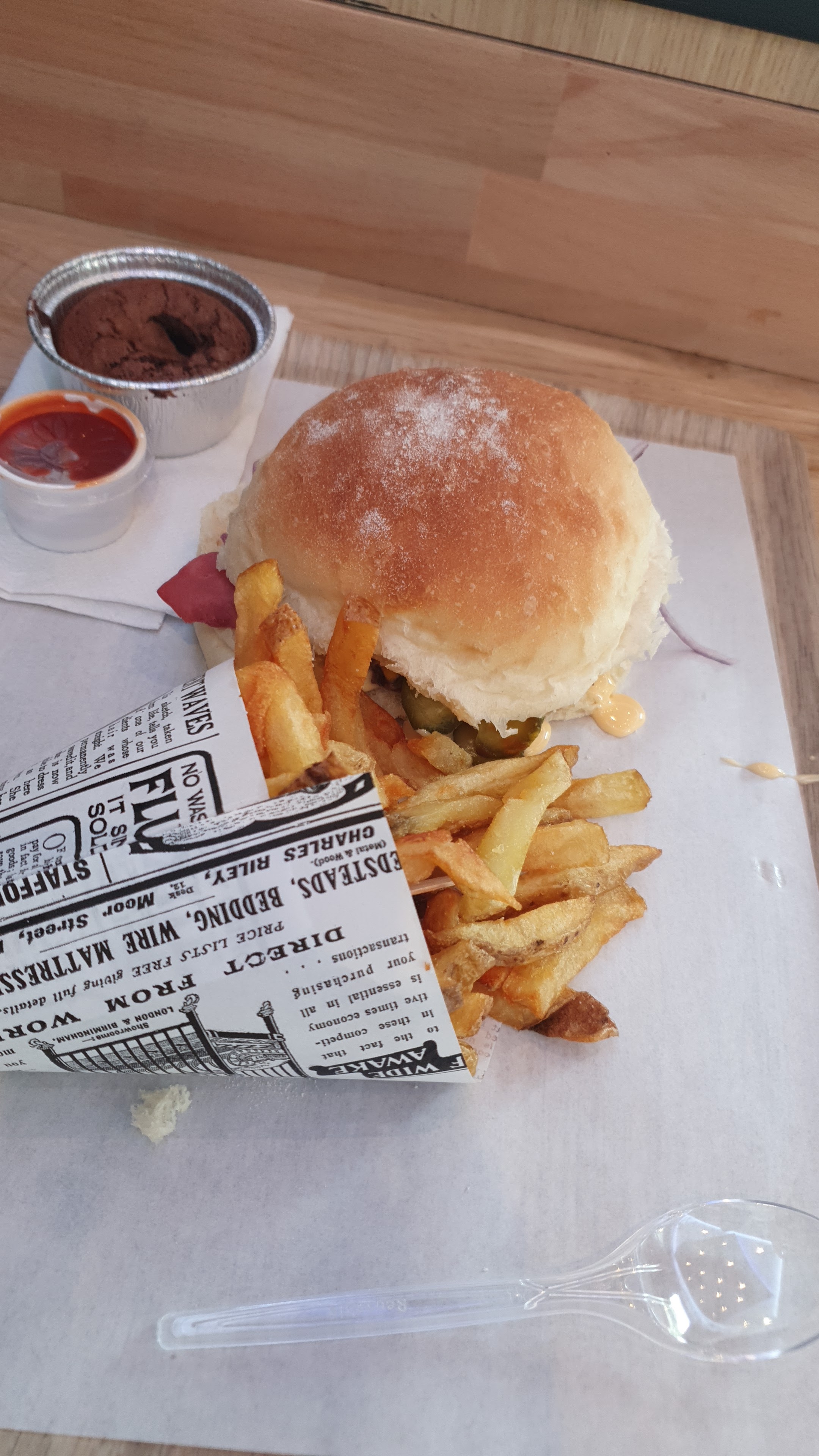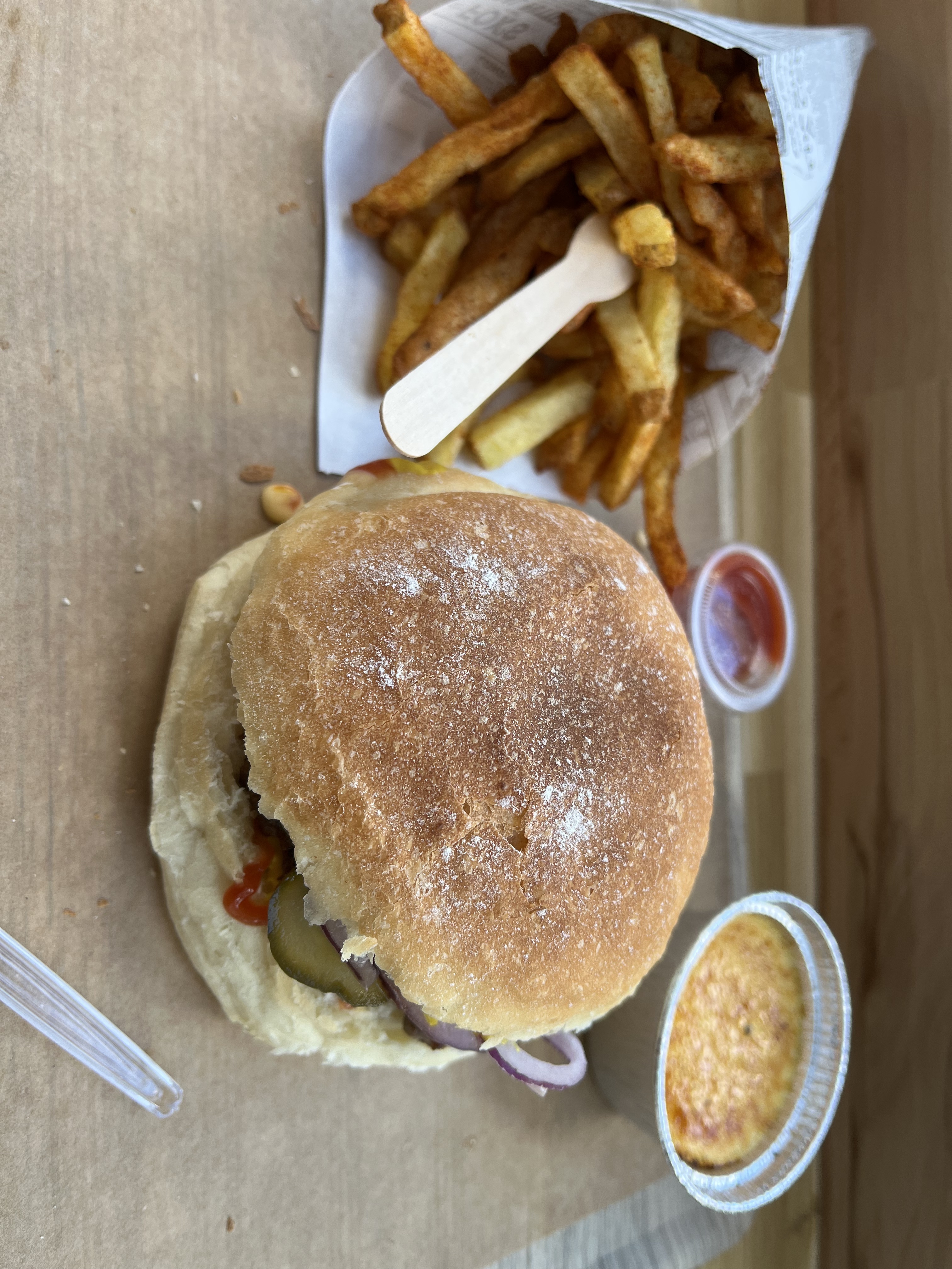 Incroyable comme adresse. Rapport qualité prix au top! Hamburger généreux et très bons, frites au bon goût de pomme de terre, c’était parfait. Dommage qu’il n’y ait que du ketchup et de la mayo pour accompagner les frites mais le cheddar dégoulinant du burger a participer 😁