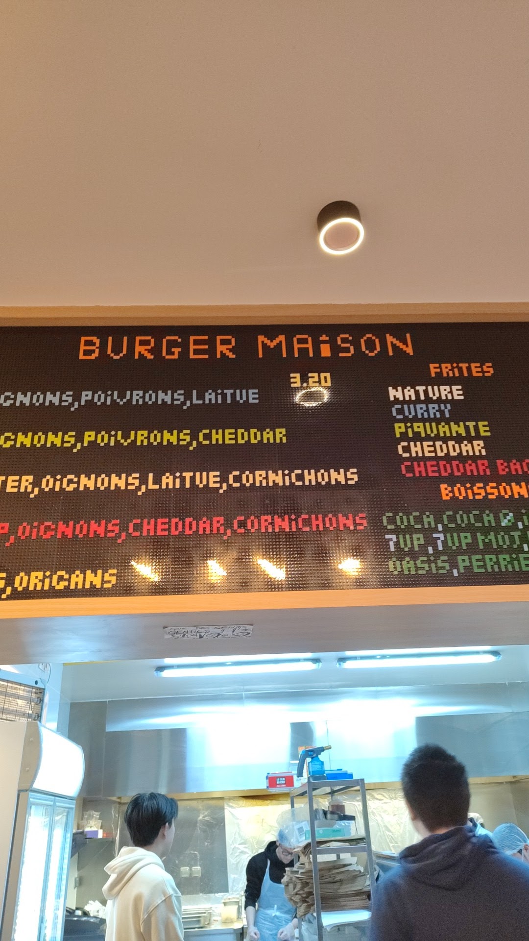 3ème visite et toujours excellent rapport qualité-prix. Pour 8,40€, on peut avoir 2 gros hamburgers + 1 frite et on est calés. Conseil : évitez la tranche de faux bacon (boeuf) à 1€. Visite en mai 2023