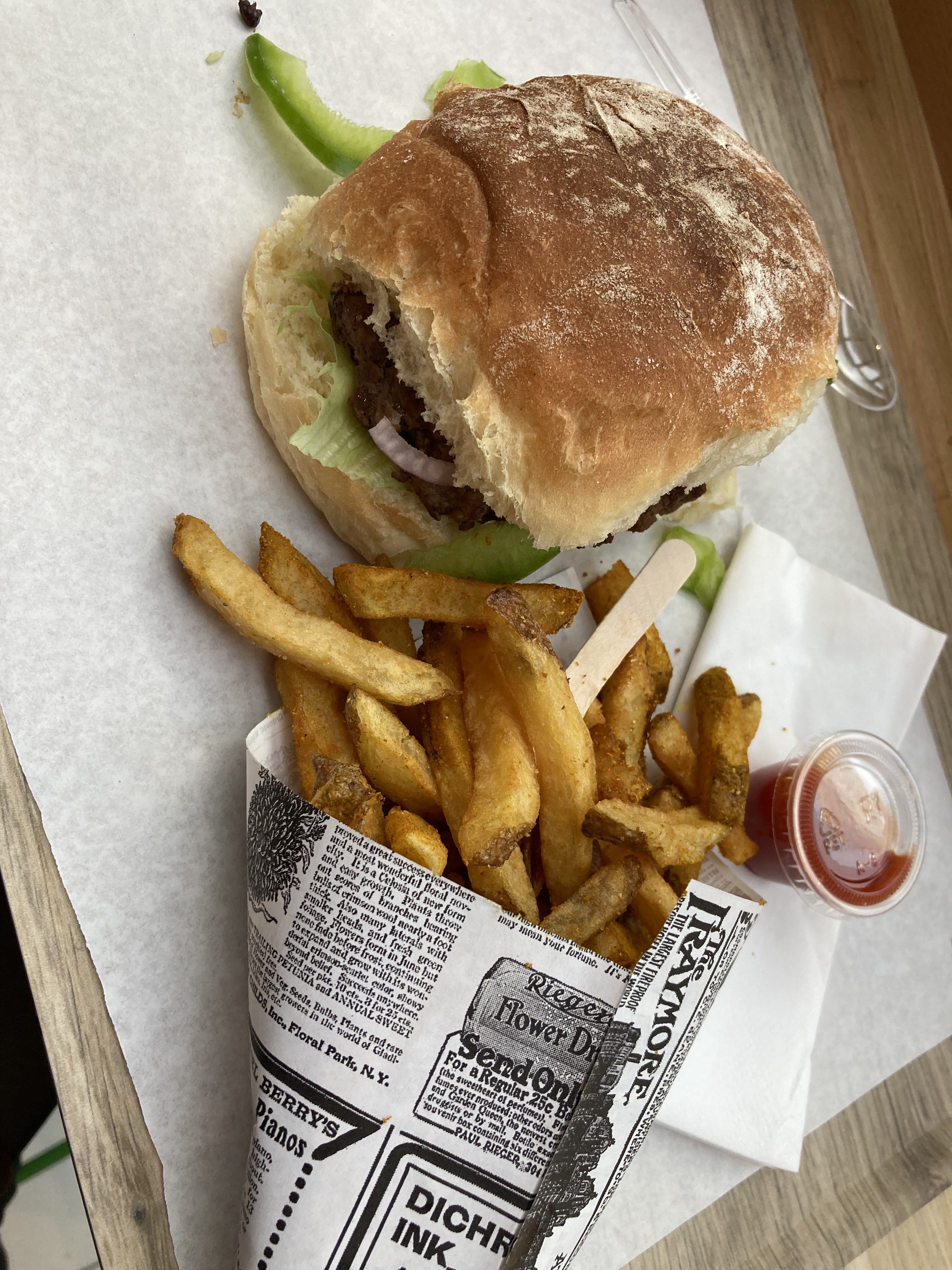 Burger et frite incroyables pour le prix juste rien a dire ! Plus je mangeais mes frites + il en restait