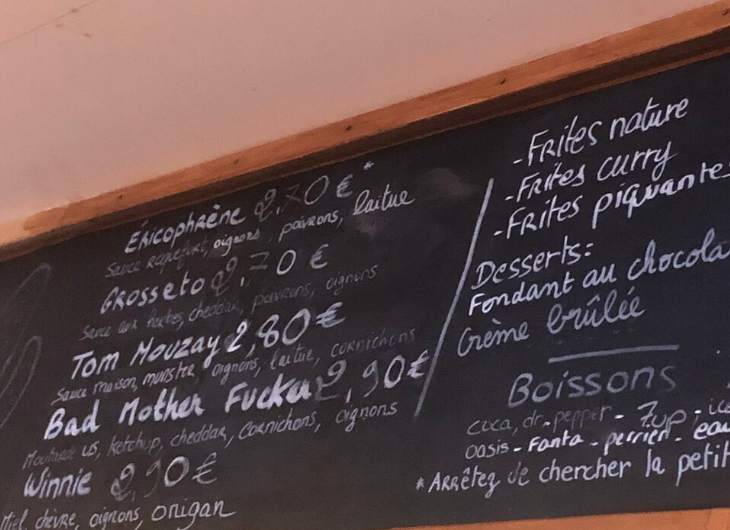 Contrairement aux autres « Mangez et cassez-vous », les burgers sont à 3,20€ (au lieu de 2,90 €). Pour compenser, les portions sont ultra généreuses, surtout au niveau des frites. Et l’équipe est adorable, voir assez commerciale (vous êtes assez induits pour commander davantage) 😂 Ici, la déco est super sympa, alors n’hésitez pas à aller faire un tour !