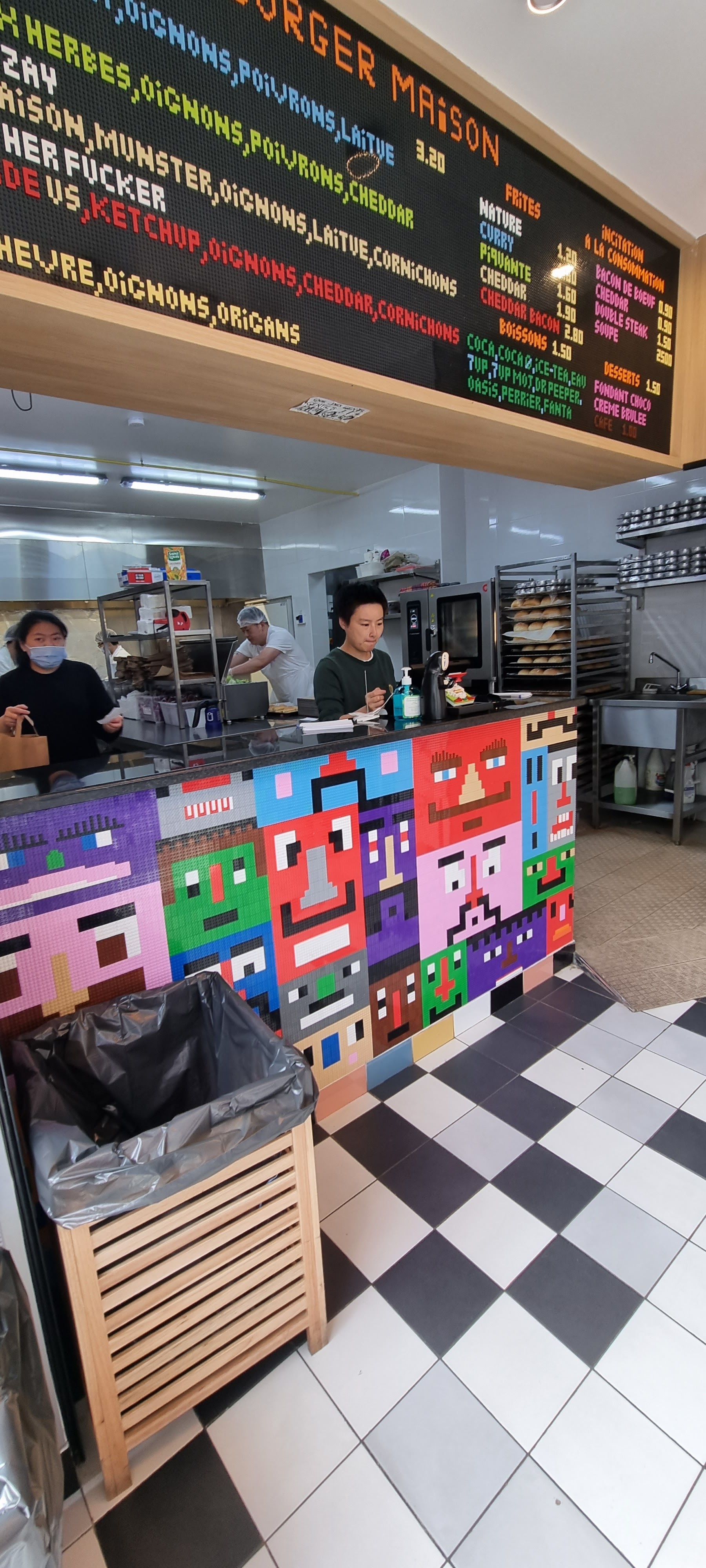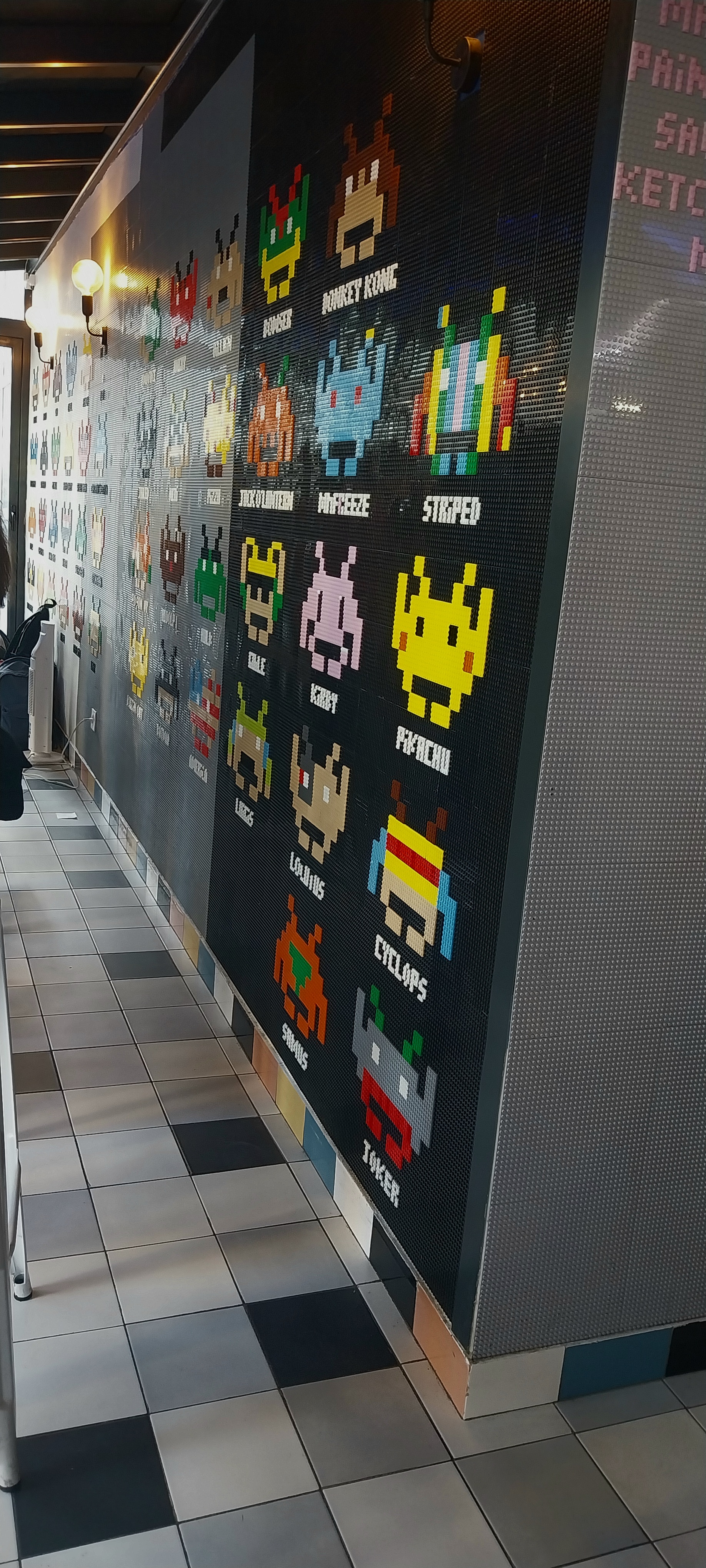 Lieu jeune et sympathique, la décoration Space invaders me rappelle ma jeunesse 😚 Service rapide avec une équipe jeune et dynamique. Quant aux hamburgers, ils avaient l’air bon au premier regard mais après avoir goûté je les trouve fades. Les pains sont un peu trop sec.