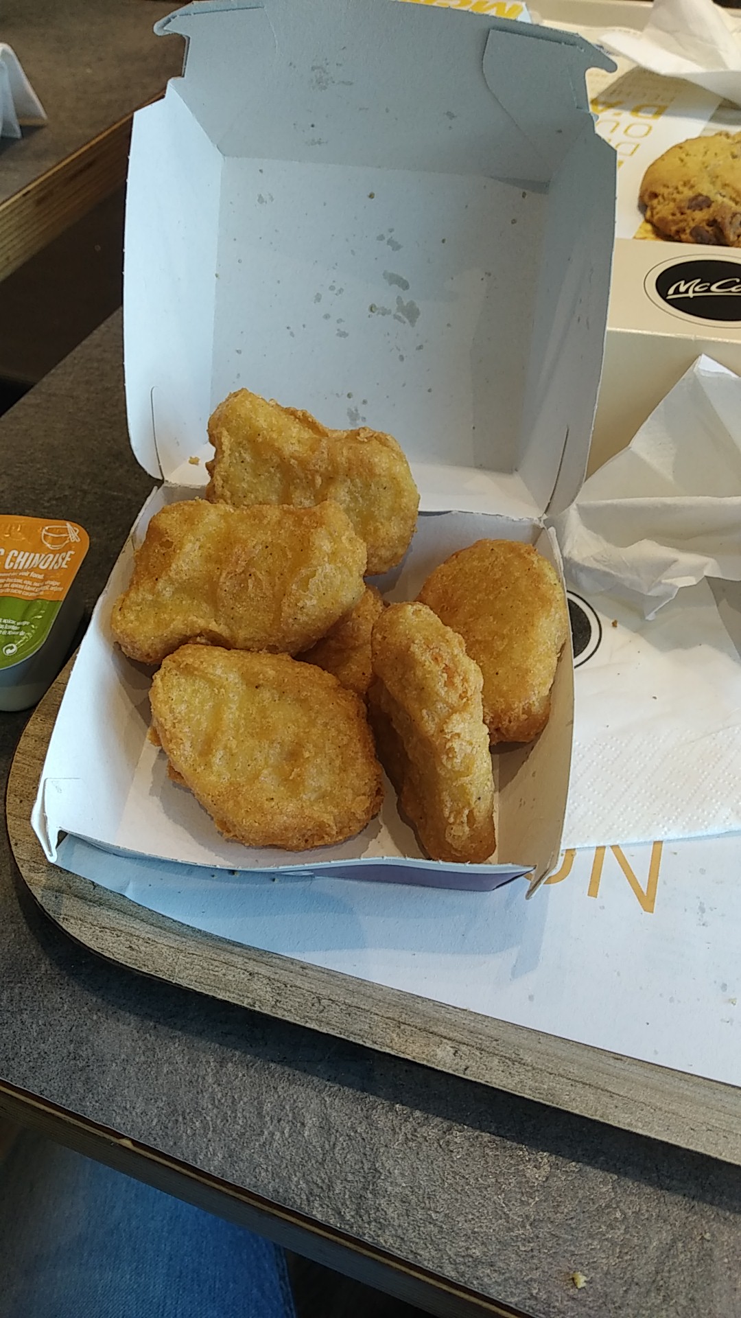 Attention les sauces sont maintenant payantes. Pris 6 nuggets et une frite et bien la sauce pour les frites payante. La prochaine fois je prendrai les nuggets avec sauce gratuite et referai la queue pour les frites en espérant avoir une sauce gratuite. MC do doit visiblement être dans une mauvaise situation pour en être là. Je mange MC do une fois tous les 2 ans. Je vais donc dans 2 ans essayer la concurence