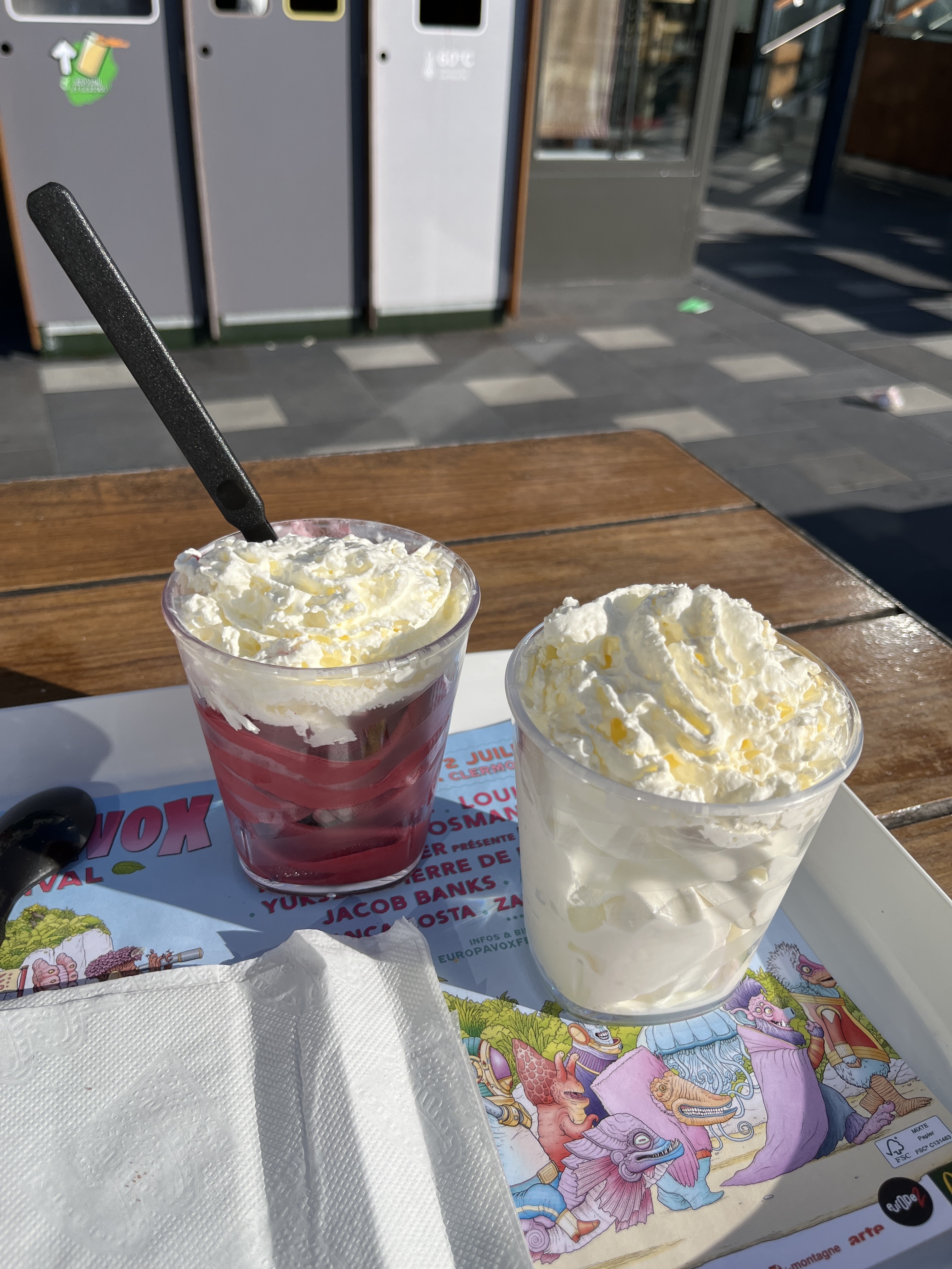 2.4e pour un de a coudre et encore j'ai faut une remarque car à moitié rempli et sans cuillère à la base. Ma fille de 6 ans l'a terminé en 5 sec. Bref, c'est du vol, la première et dernière fois que je lui propose une glace de chez McDonalds. C'est moins cher chez un glacier et en plus ya un cornet !!! (Et la photo rend plus grand !) 3cm de haut le truc ! Et quand on fait une remarque : ça hausse les épaules, c'est pas notre pb ce n'est pas nous qui décidons les prix. En bref, ils n'acceptent pas les remarques, et s'en tapent le coquillard. Il faut être bien cxx pour aller chez Mac Do c'est sur 🤣