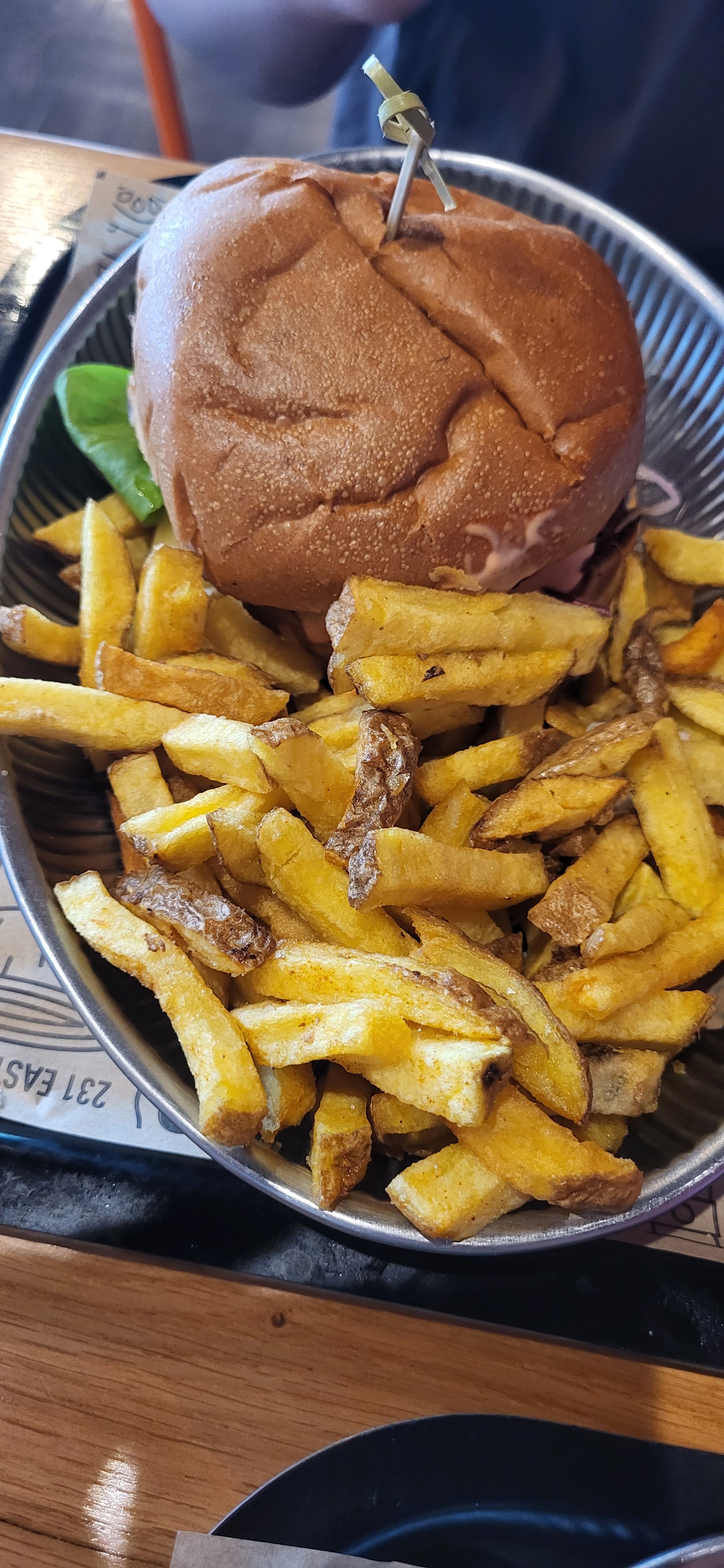 Accueil un peu bizarre, un Mr avais l’air un peu perdu heureusement que son collègue a pris le relais. Pas forcément de gros coup de feu car il n’y avais pas bcp de monde. (Mardi soir) Les burgers nous sont servie avec sauce cheddar (supplément) honnêtement j’ai cru que quelqu’un avais vomi dedans… La sauce a sûrement tranché mais on la sert au client. Et peu de goût de cheddar. Mon amie prend un cheesecake qui d’après elle n’avais pas le goût du tout, il été très compacte. Et pour fini un Mr qui est de l’enseigne (supposition) , écouter à notre table, à deux doigts de lui demander de venir s’installer avec nous. Je ne déconseille pas ce restaurants car le burgers été bon et pas cher mais je le met pas dans ma top liste.