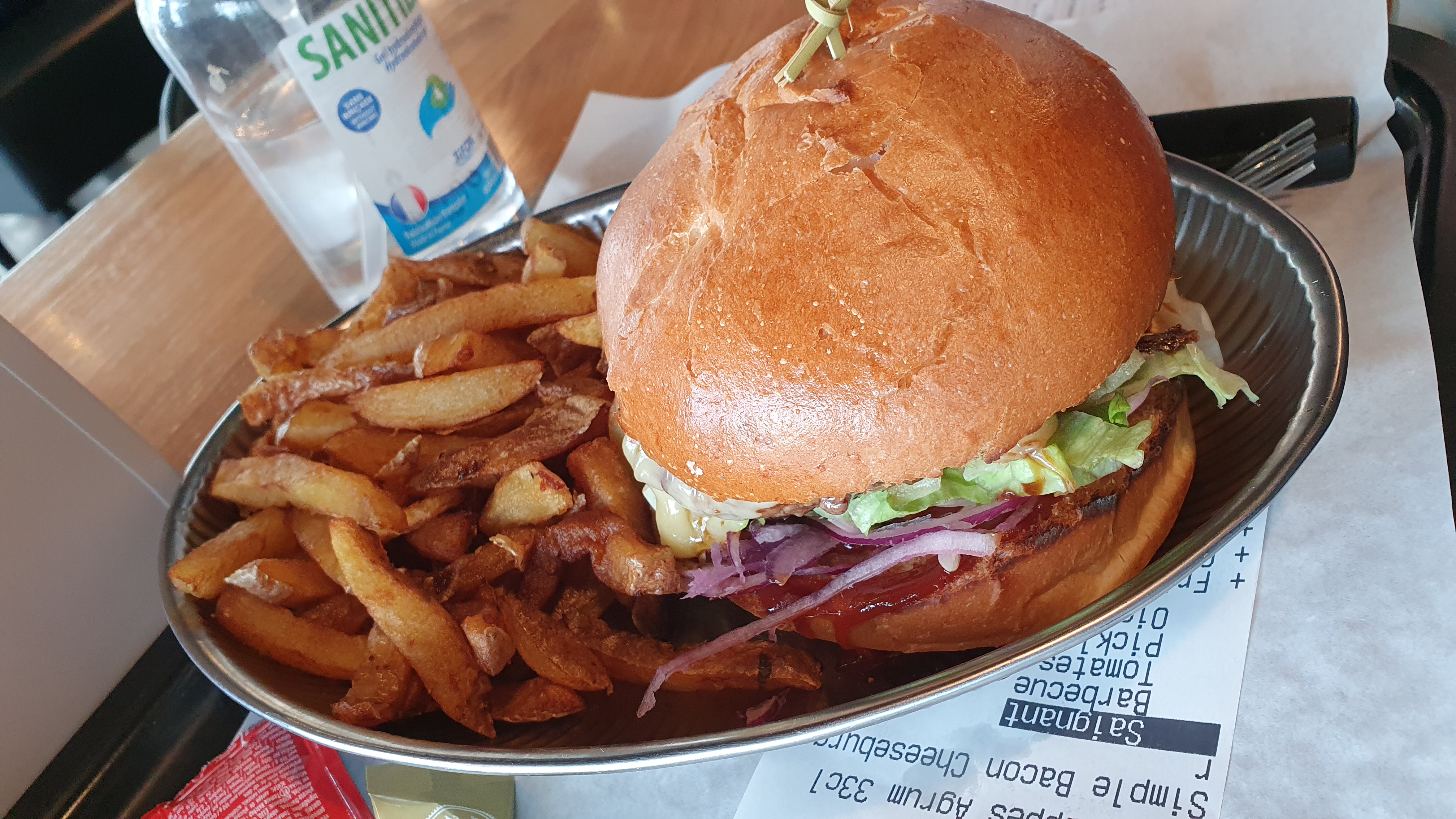 Bon burger. Viande pas surgelée. Un petit truc me dérange un peu je trouve que c’est un petit trop salé surtout le fromage. Le sel de la sauce, plus celui du fromage et des frites ça fait un peu trop pour moi mais cela reste très correct.