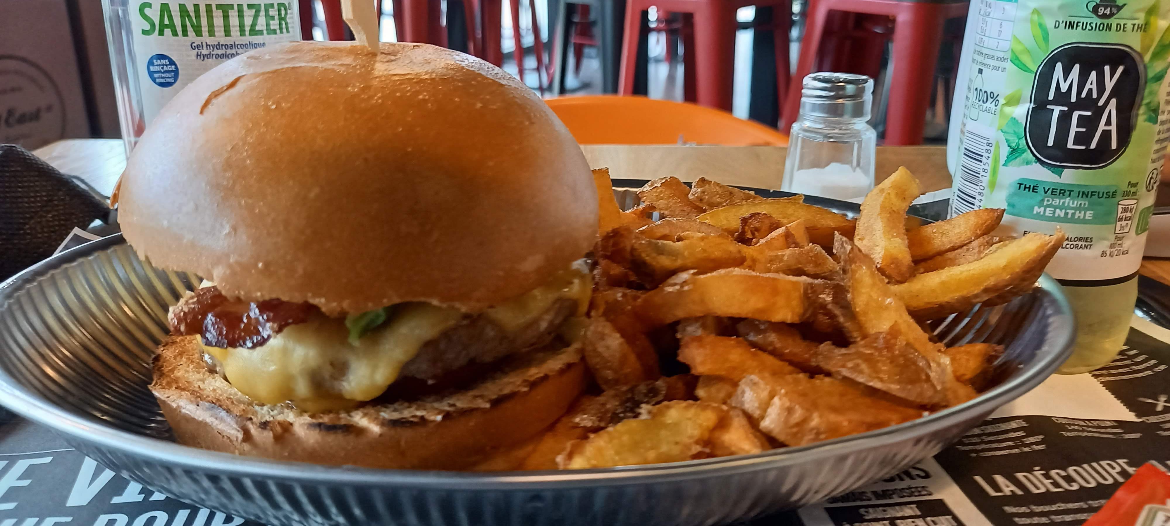Bon burger avec une très bonne viande. Frites maison. Possibilité de personnaliser son burger en choisissant la viande (boeuf ou poulet), la cuisson pour la viande, les légumes et la sauce. Un des meileurs burger de Tours. A essayer sans hésiter . Le menu est à 12,90 euros, plus cher que les grandes enseignes de fast-food mais la qualité à un prix, d'autant que les burgers sont généreux. Mise à jour : J'ai récemment essayé le Crispy chicken burger (décembre 2020) : Je me faisais un plaisir de le goûter mais j'ai été extrêmement déçu. Le burger que j'ai reçu était composé de deux petits morceaux de poulet, qui ressemblaient à des nuggets et non à ce qu'on peut voir sur la photo promotionnelle. En terme de goût, on ne sentait que le coleslaw , la viande était inexistante car en trop petite quantité. Très déçu par le burger, très en dessous de ceux au boeuf ou au filet de poulet classique, que ce soit en taille de la viande et en goût. Dommage que ce ne soit pas un réussite, compte tenu de la qualité habituelle. Il faut retravailler la viande et privilégier un grand filet de poulet pané comme sur le visuel. Recette à améliorer. Je reviendrais pour la recette au boeuf qui est excellente. Bon courage.