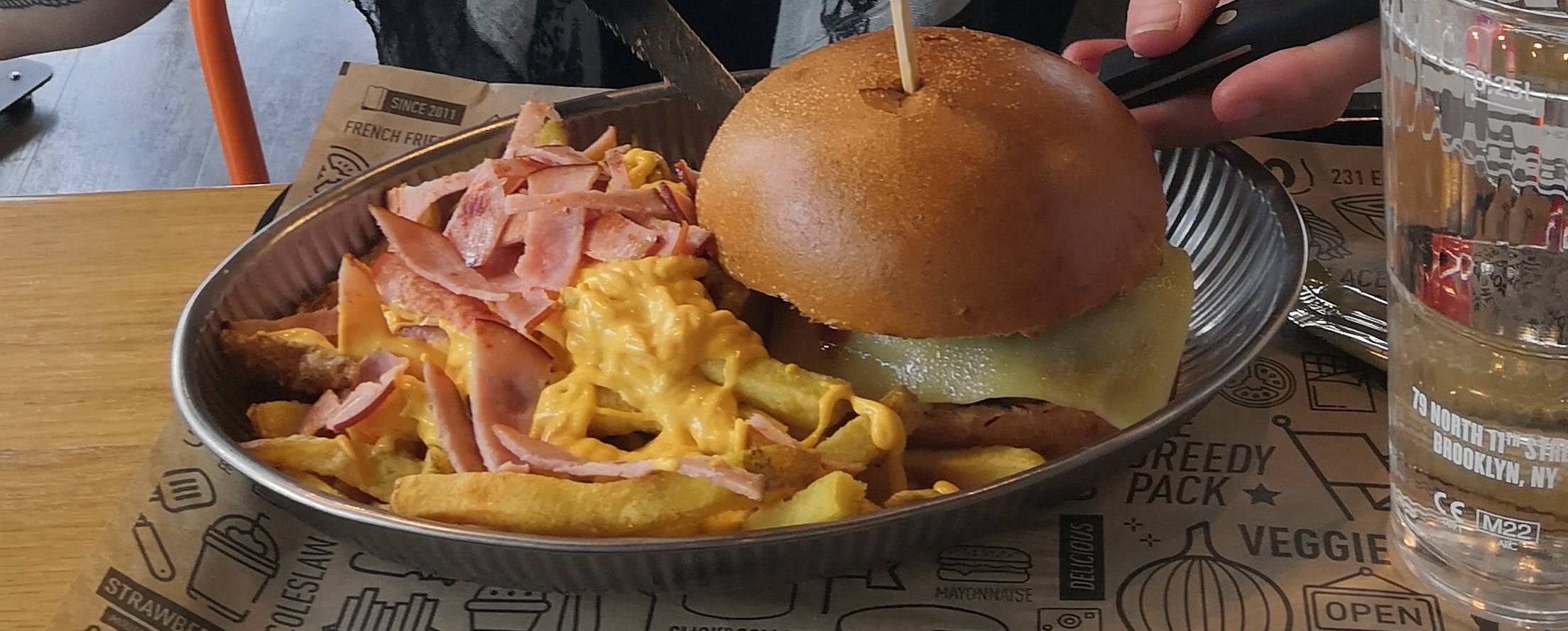 Très bien, original (première fois que je vois des burgers dans du fromage) mais nous avons beaucoup aimé toute la nourriture. Les milkshakes sont bons aussi ! Bémol, aucun WC propre les gens sont sales et pas assez de nettoyage je pense… et beaucoup de monde attendent debout une place pour s’assoir après avoir commandé ce qui rend l’ambiance oppressante je trouve