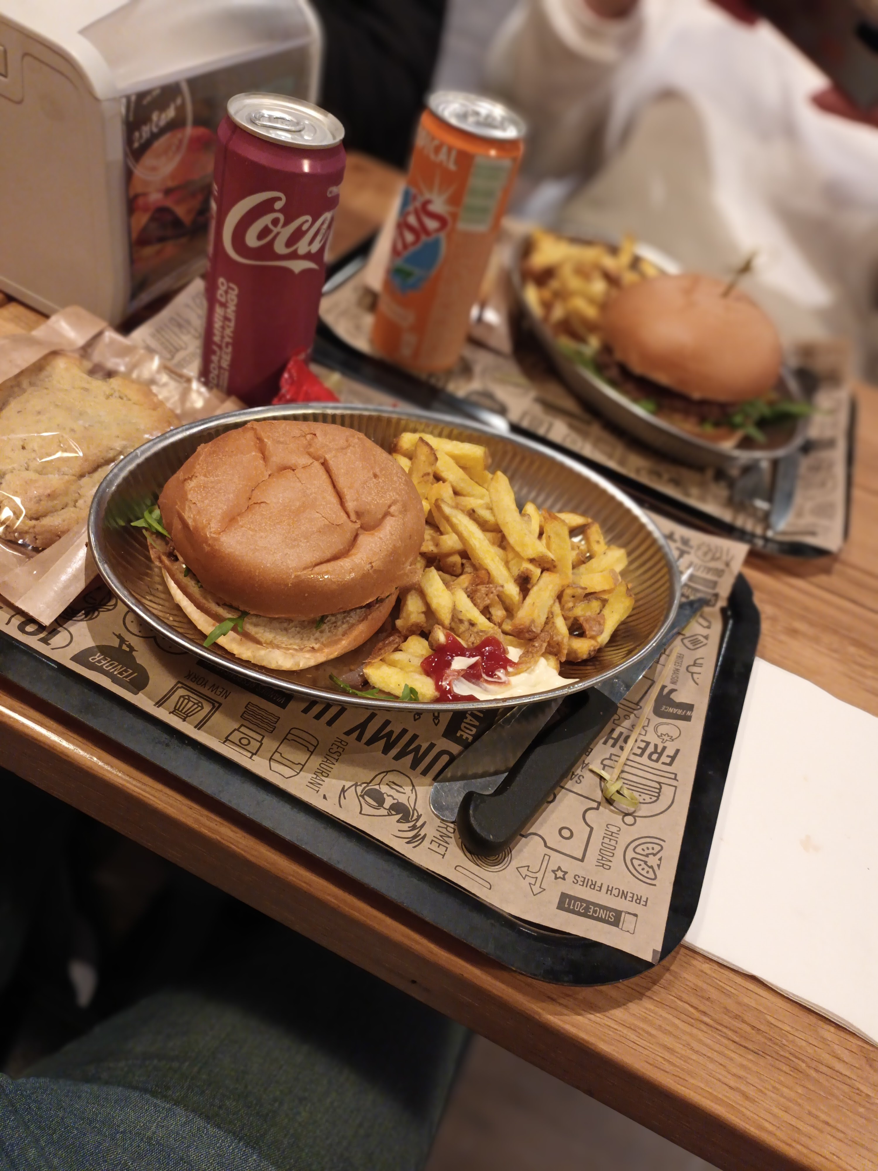 Les burgers sont très bons, de qualité et faits maison, j'ai particulièrement apprécié les frites de patate douce. Les portions sont également très généreuses (je n'ai pas pu finir les frites), il y a un large choix de desserts (en particulier les cookies maisons qui sont excellents). Un accueil très chaleureux, une équipe au top. J'y retournerai avec grand plaisir, je recommande.