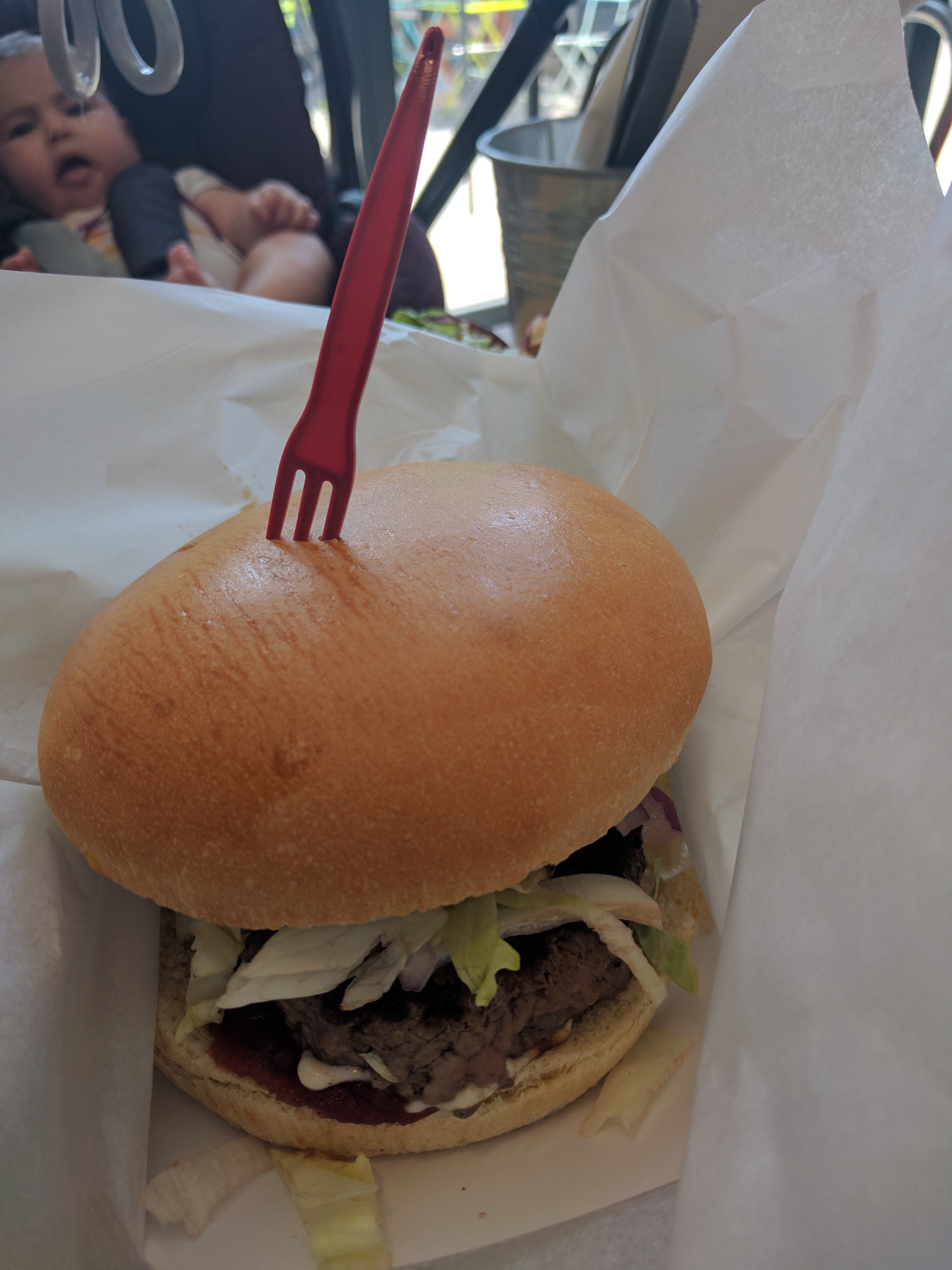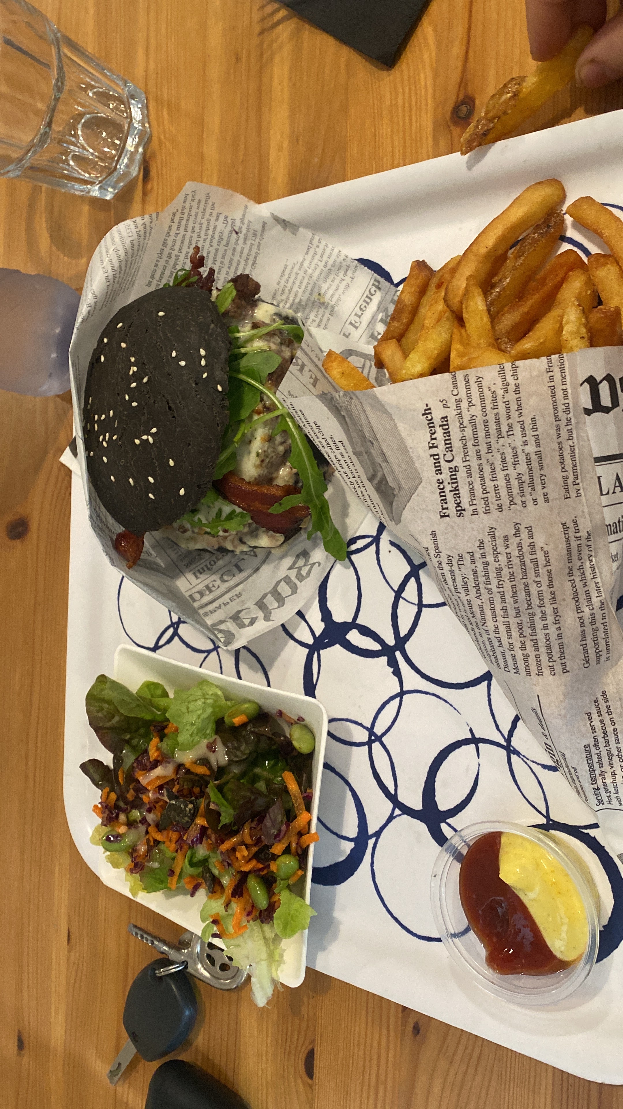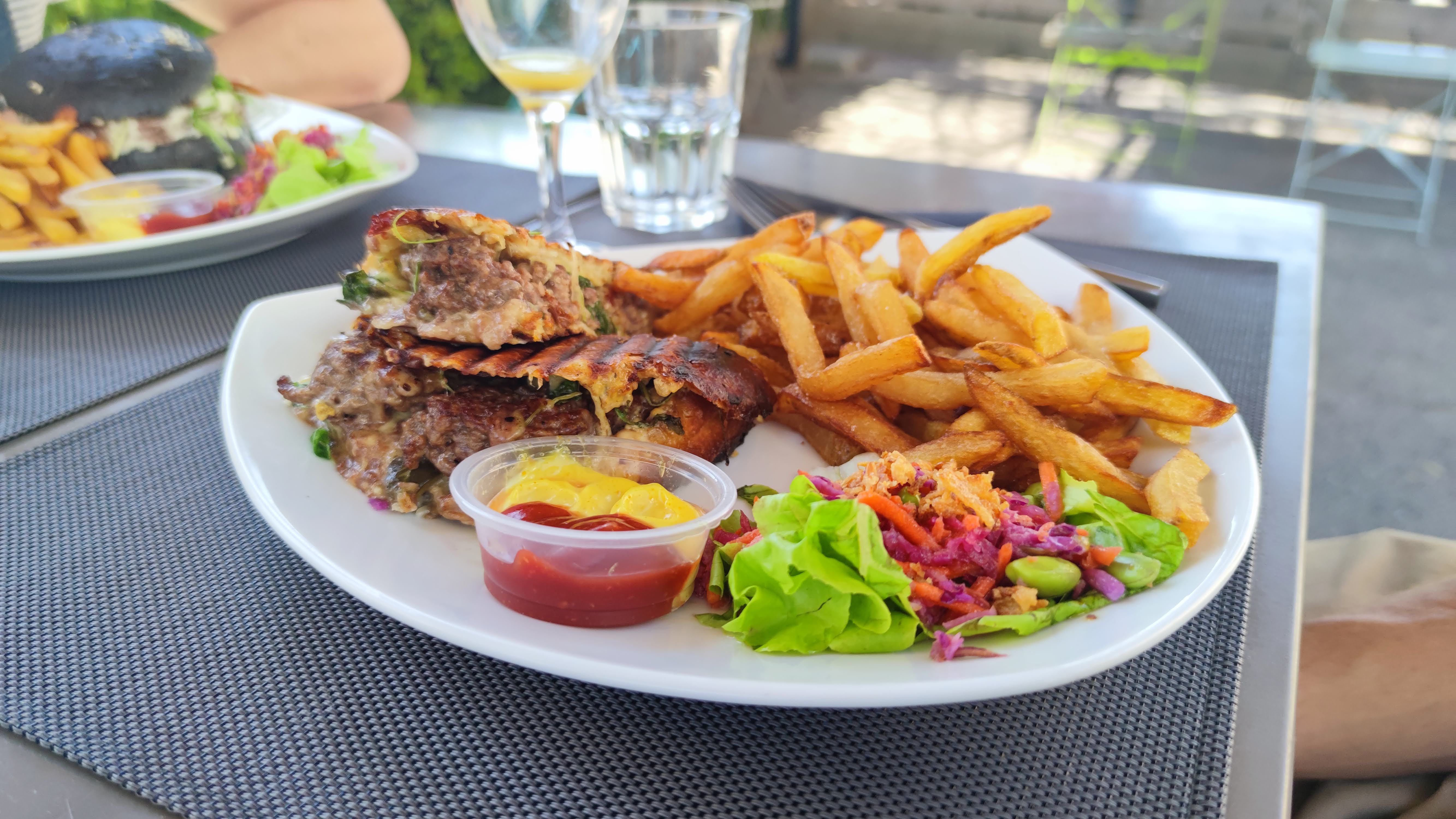 Burger équilibre, boisson non alcoolisées parfaite . Frite parfaite. On est venu avec deux bébé, leur installation n'est pas trop adapté mais c'est avec le sourire qu'ils ont réchauffé le lait de ma fille