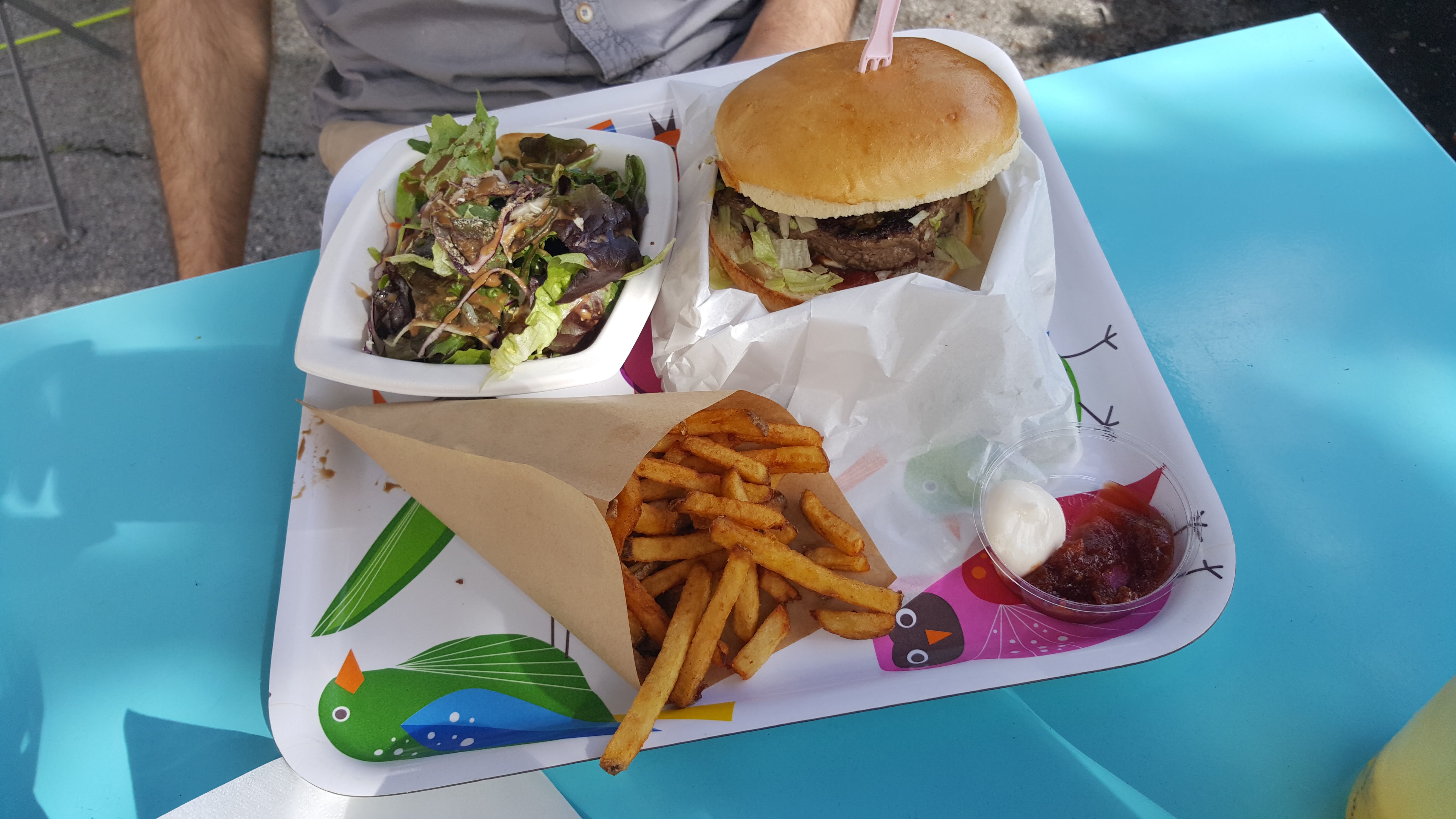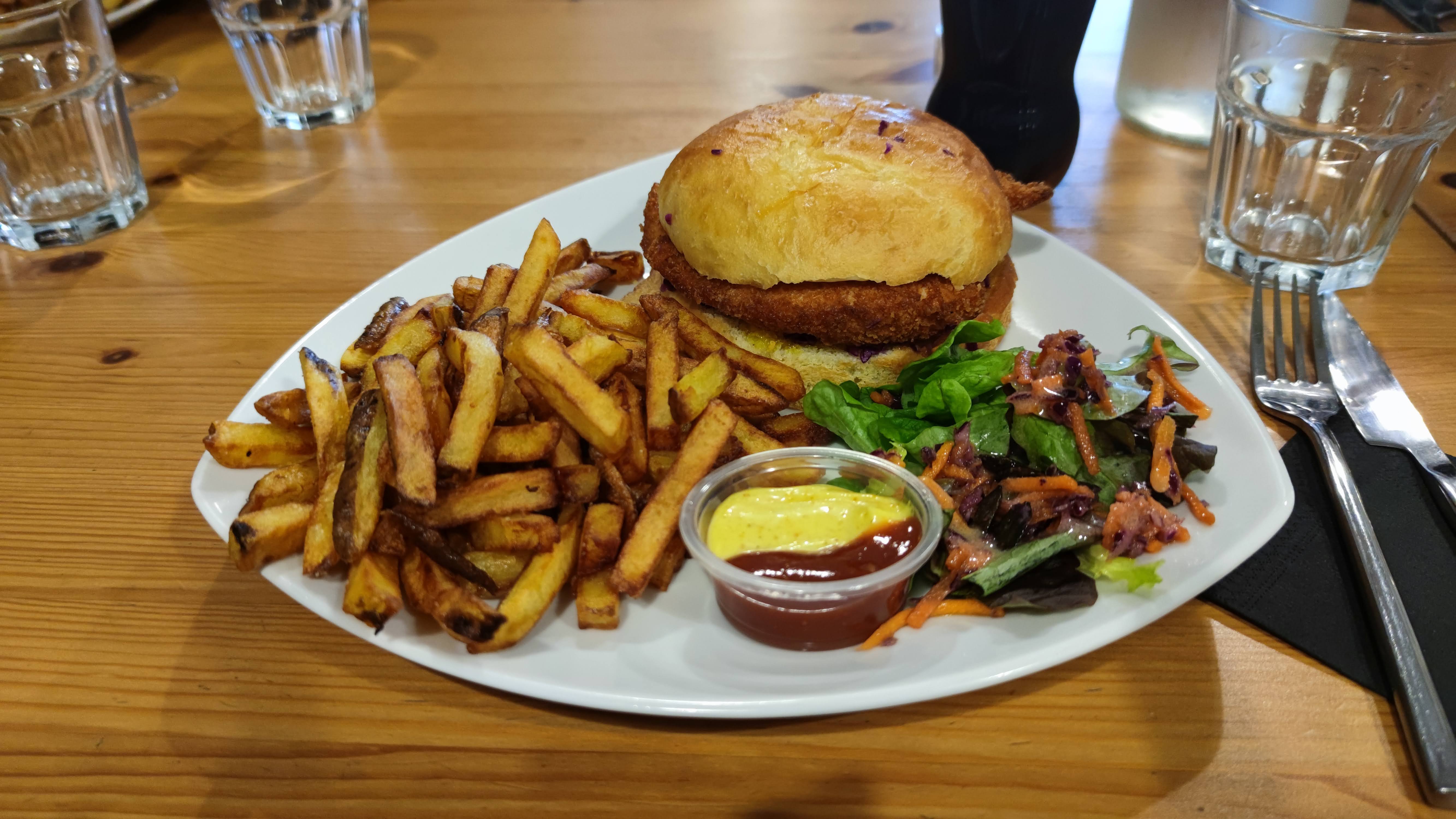 Parfait! Du service au plat, tout était top. Option végétarienne disponible sans supplément, frites et boissons maison. Un régal