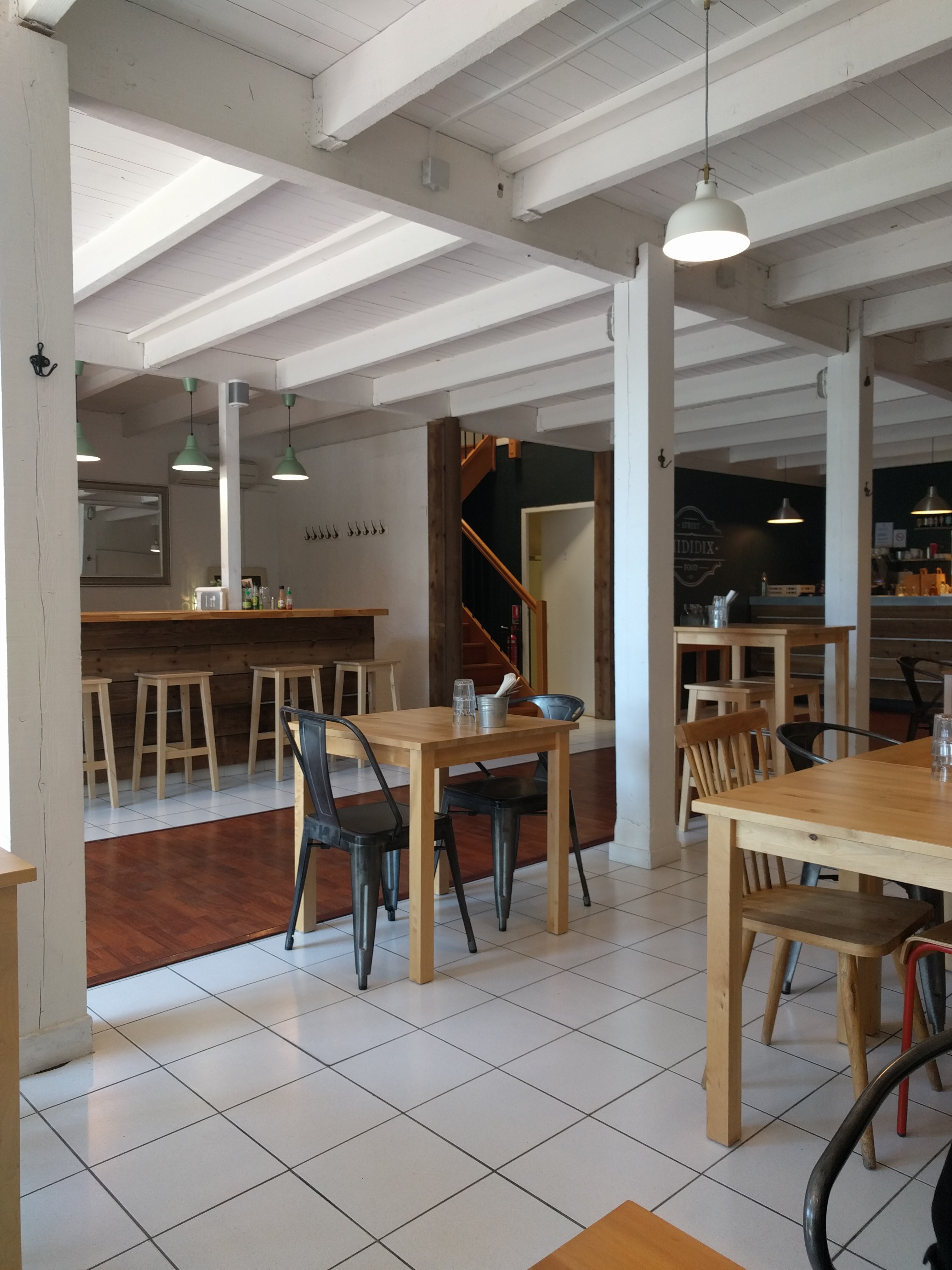 Endroit sympathique, deco moderne et plats faits maison avec des produits frais, tres bonne adresse. L environnement direct manque juste un peu de charme.