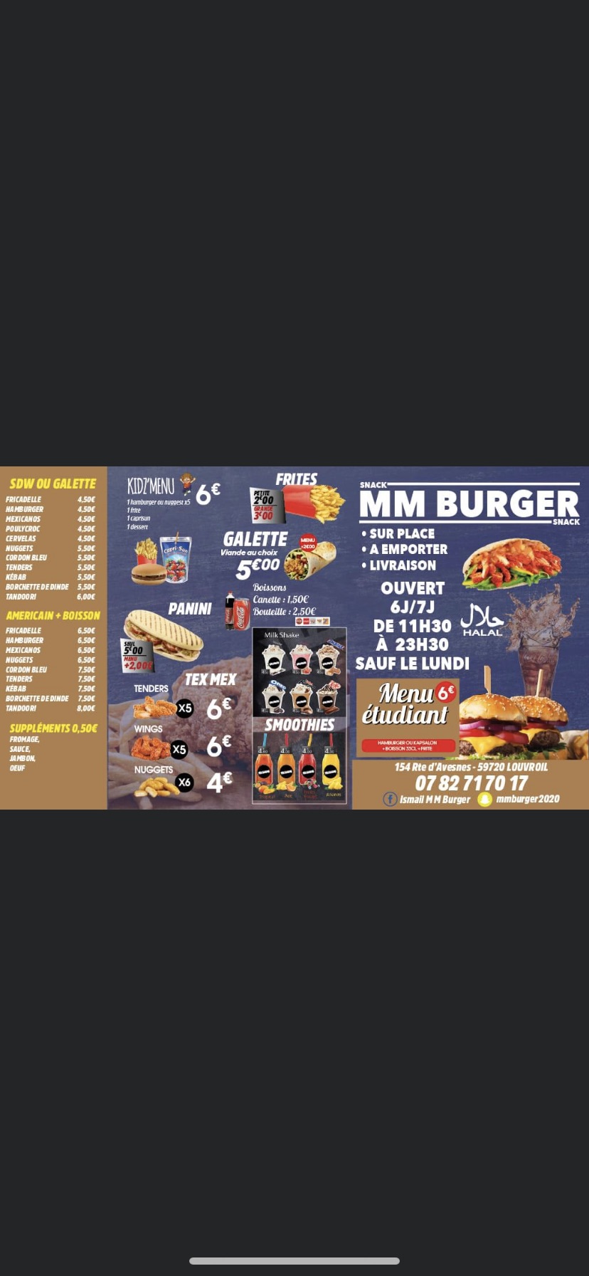 Première fois que je commande alors franchement une tuerie le MM burger pffffff que dire 😋😋 et le tacos 3 viande pareil je recommanderais merci à vous et en plus livraison rapide sur Hautmont 😉