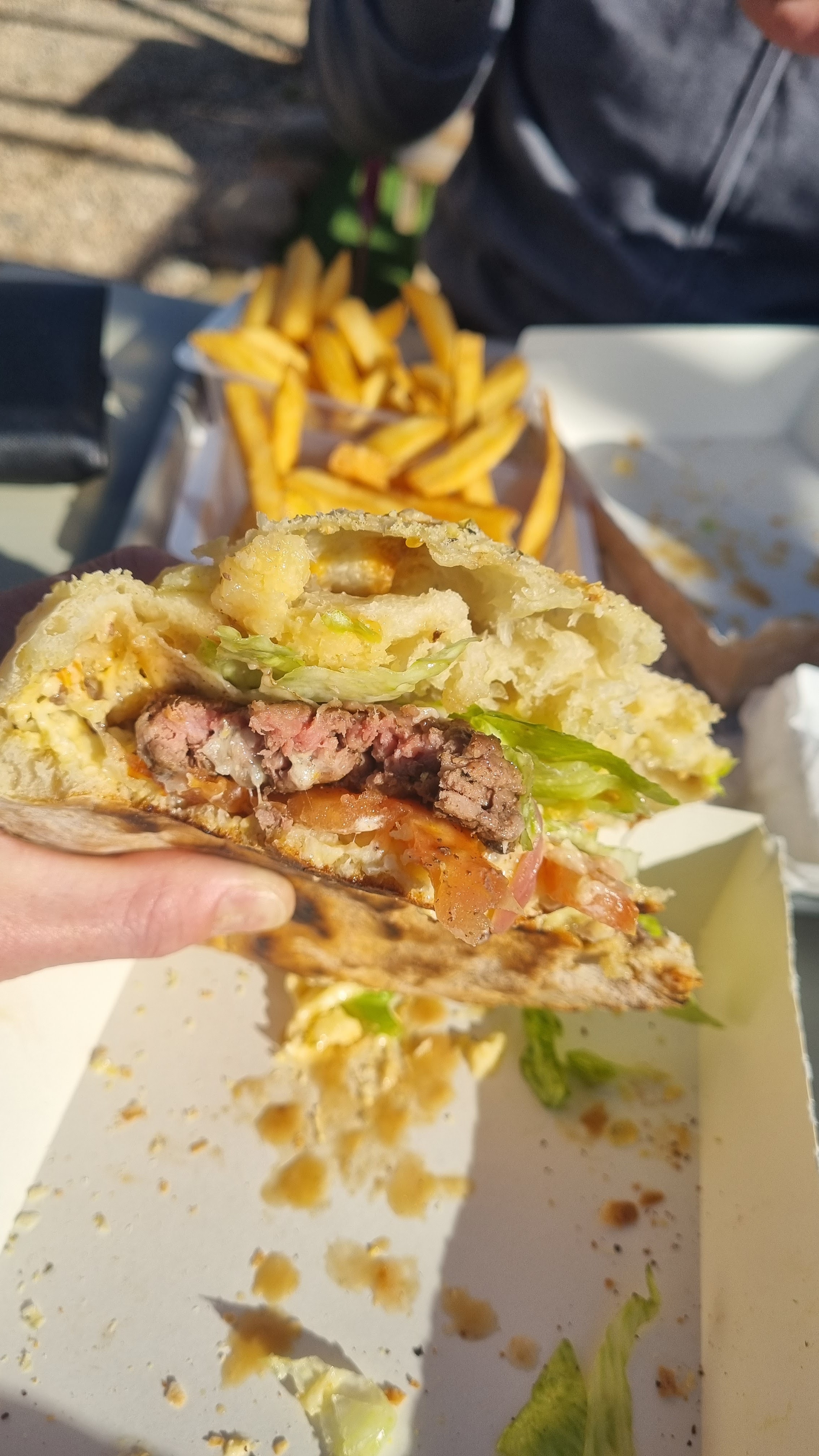 Superbe endroit pour une pause revigorante sur notre trajet. Jeune couple très sympathique et dynamique. Service rapide, prix très doux. Burgers incroyablement généreux et de qualité. Les tenders sont parmi les meilleurs que j’aie jamais mangés. Et des vraies frites blondes et croustillantes. Rien à voir avec le machis brun tout mou que j’ai trop souvent vu ailleurs. Cinq étoiles largement méritées