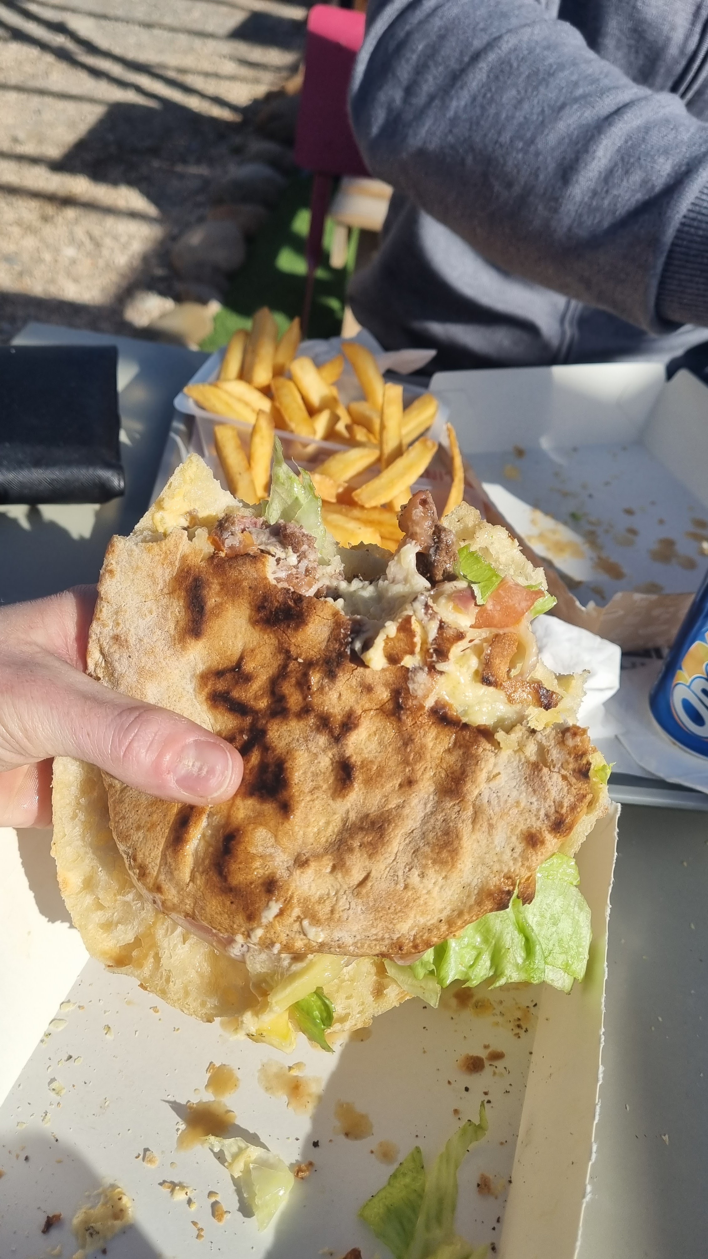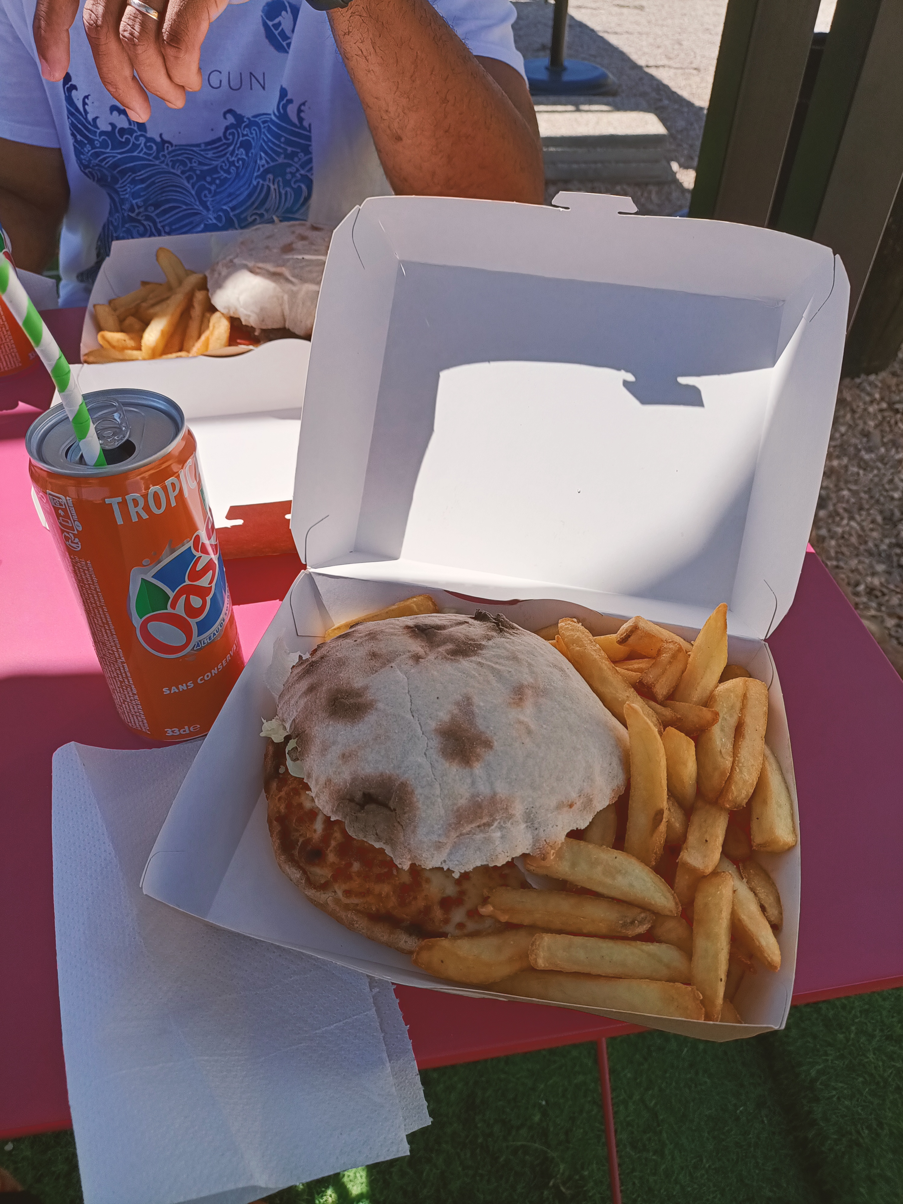 Burger super bon et très généreux et le pain gratiné un régal. Accueillant avec des tables au soleil. Bonne découverte sur la route des vacances avec un service rapide.