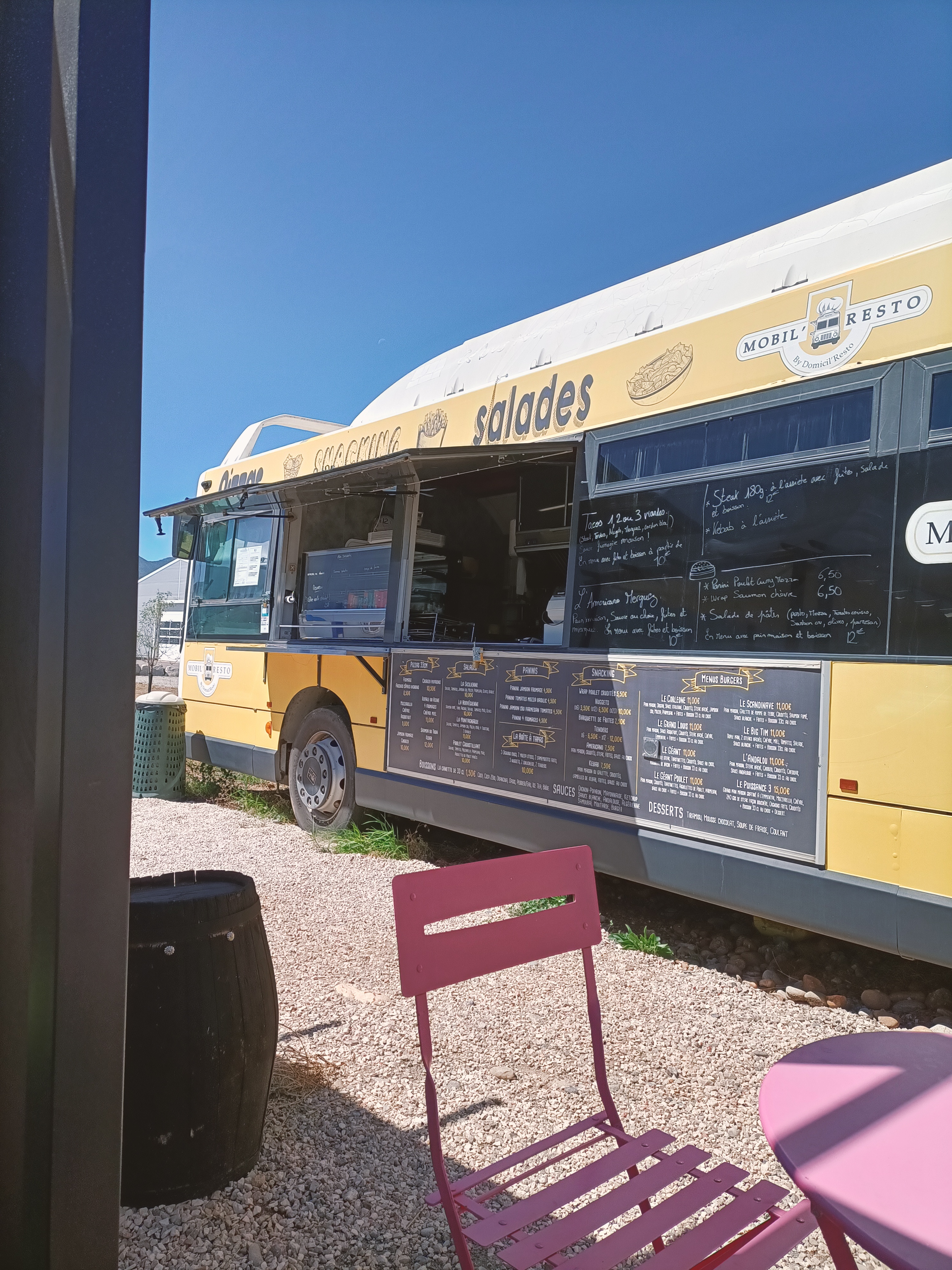Une bien belle découverte pour le déjeuner du 27/09 : le Mobil'resto à Val Durance. Emplacement sympa, excellent accueil, propositions de repas variées et prometteuses et une fois servis nous avons pu apprécier nos Kebbab et panini copieusement servis et vraiment excellents. Nous y reviendrons pour goûter d'autres plats. Etablissement à recommander.