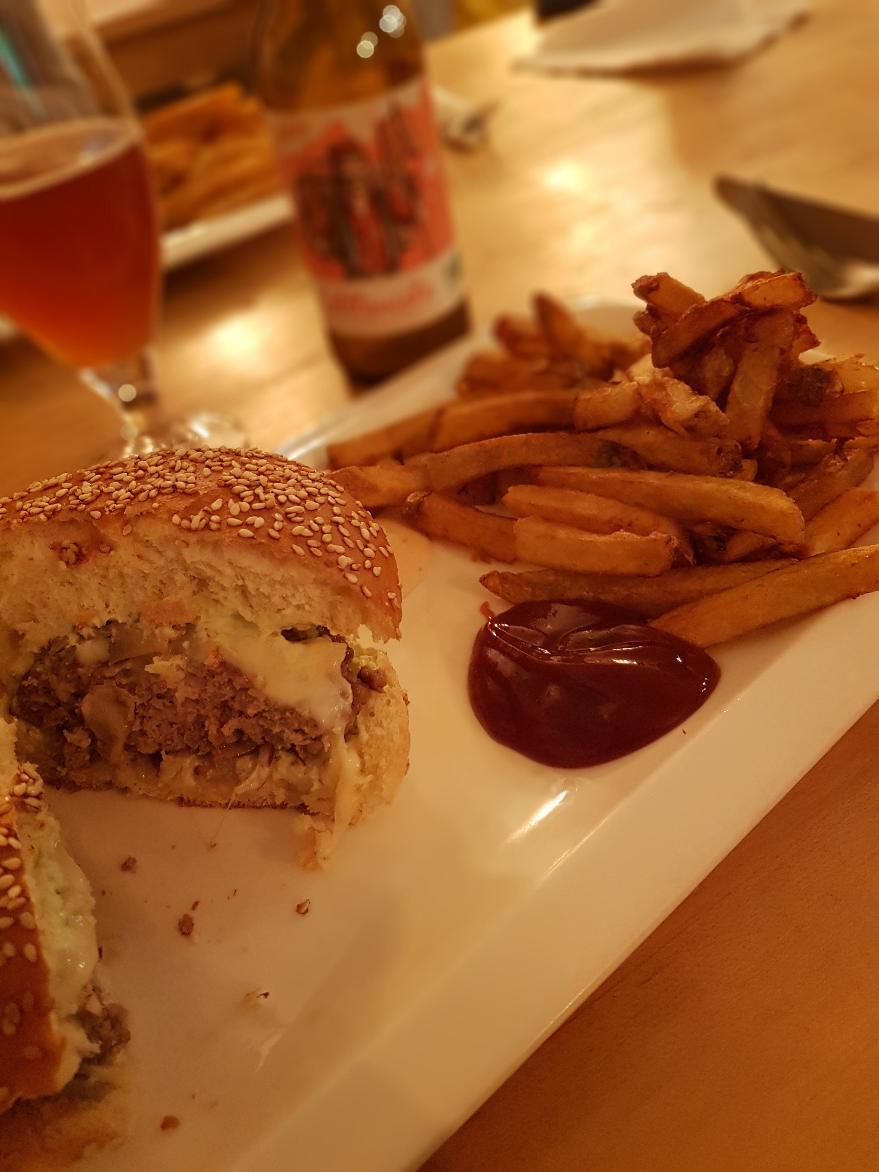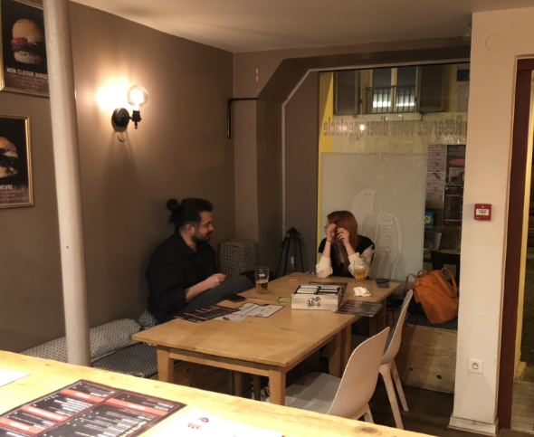 Ambiance assez sympa, musique, jeux... ! Par contre les burgers étaient décevants, manque de goût, d'assaisonnement, et un peu trop gras à notre goût, bien qu'esthétiquement ils donnaient envie.