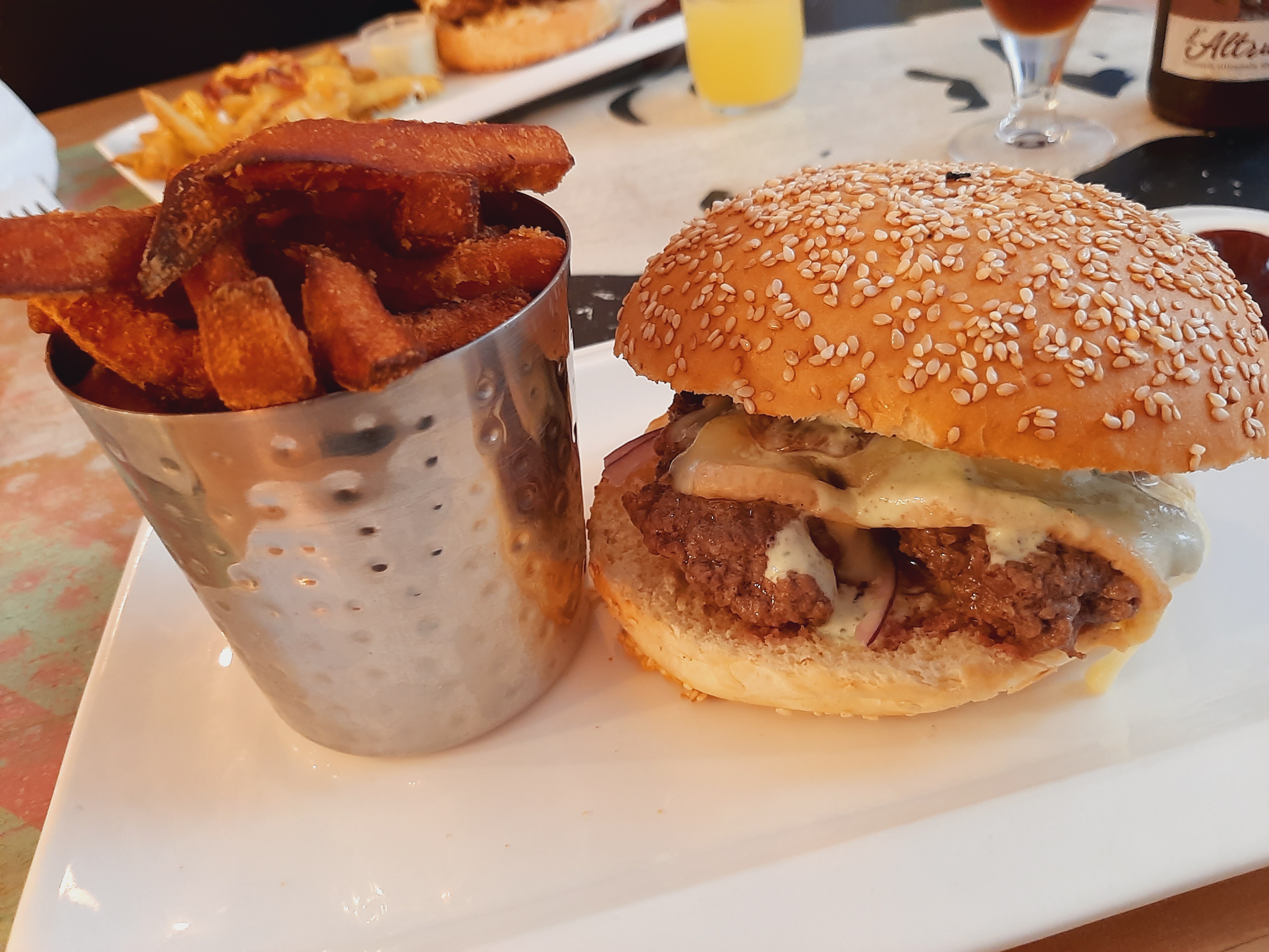 Burger et frites de patates douces excellent Je recommande fortement !