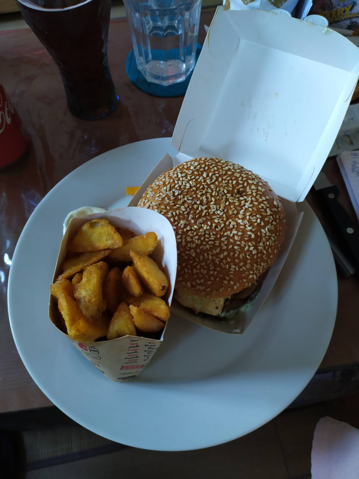 Décevant.. Frites molles et Grasses!! Avec des Filaments étranges .... Pensez a changer l'huile de temps en temps.. Burgers correctes mais reste déçue par ce repas ...