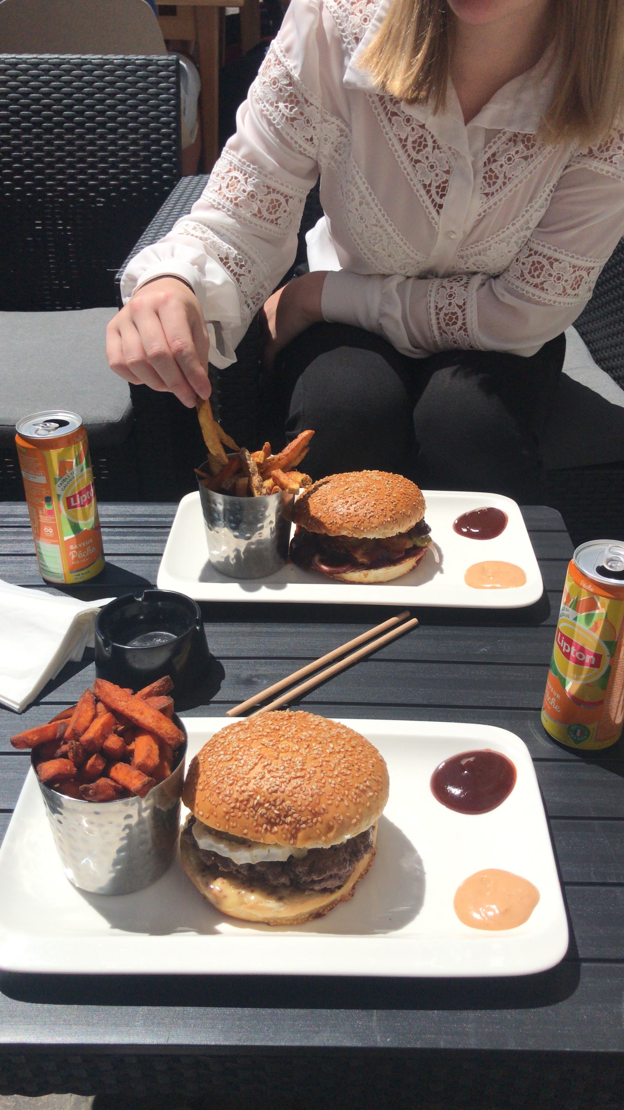 Bonjour, vos burgers sont excellents , j’ai aussi eu l’occasion de goûter vos Tenders et ceux-ci sont devenus mes préférés de tous. Il est juste bien triste que le serveur soit si nonchalant. J’ai le souvenir d’un comportement désespéré à l’idée de nous servir mes amis et moi, à la limite de nous envoyer paître. Une autre chose m’a également marquée en plus de ces échanges désagréables : Le voir avachi contre le comptoir , le caleçon à la vue de tous au dessus de son pantalon comme si il était à la maison. J’attendais qu’il veuille bien prendre notre commande mais il avait l’air bien trop occupé à jouer sur son téléphone. J’aimerai bien revenir manger chez vous car sincèrement j’adore votre cuisine, néanmoins je ne suis pas sûre de le faire si ma présence pose problème à ce serveur qui préfère tant jouer à clash of clans ou je ne sais quel autre jeu mobile au lieu d’être commercial et juste un petit peu plus enjoué.
