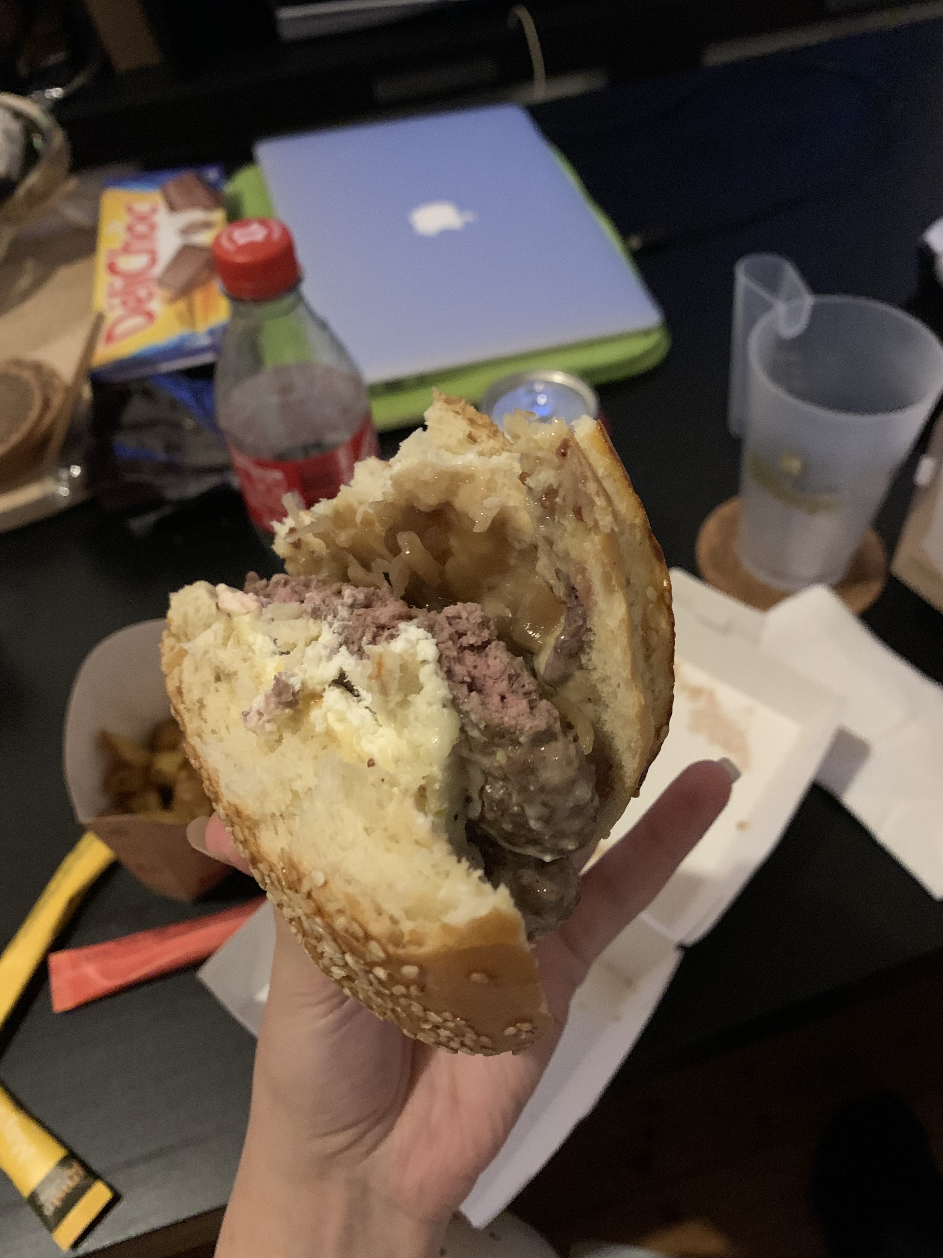 On a commandé plusieurs fois sur Uber Eat chez eux, et la j'avoue que cette fois c'était chaud. La moitié de la bouffe était périmée. Une des frites était moisie de l'intérieur et a étalé une sorte de poudre vert foncée sur l’intégralité de mes frites, le pain était dur et fade, en fait il était surtout vieux ! Et le pire c'était les munsters frits : Y en avait qui étaient tellement passés qu'ils avaient une vielle couleur marron là ... Horrible !