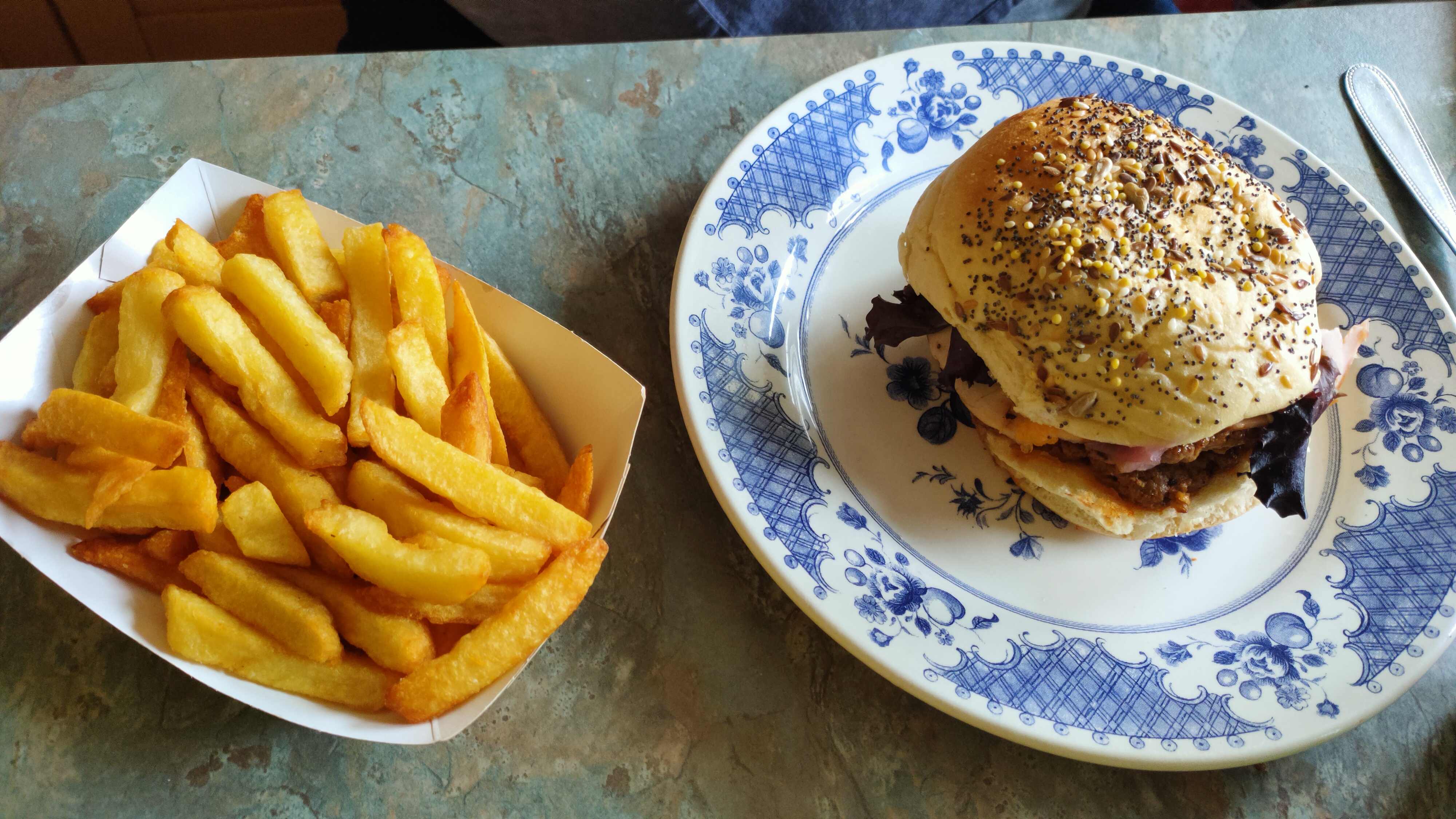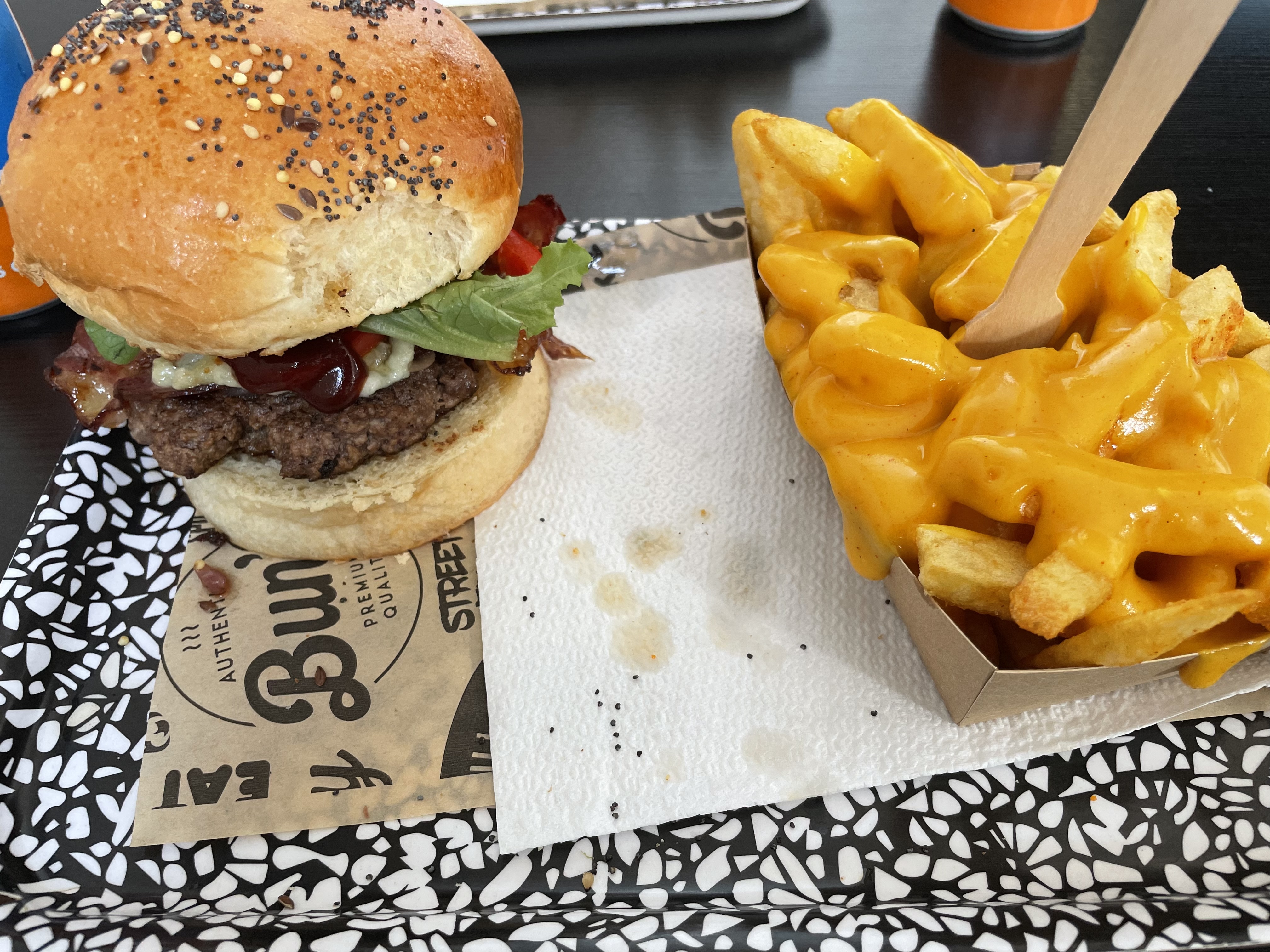 Agréablement surpris par le restaurant, les frites garnie sont vraiment top et le prix et très abordable. Petit bémol sur l’hamburger le pain n’était pas toasté du coup un ressenti un peu sec en bouche sinon les ingrédients avaient l’air de qualité je recommande franchement!