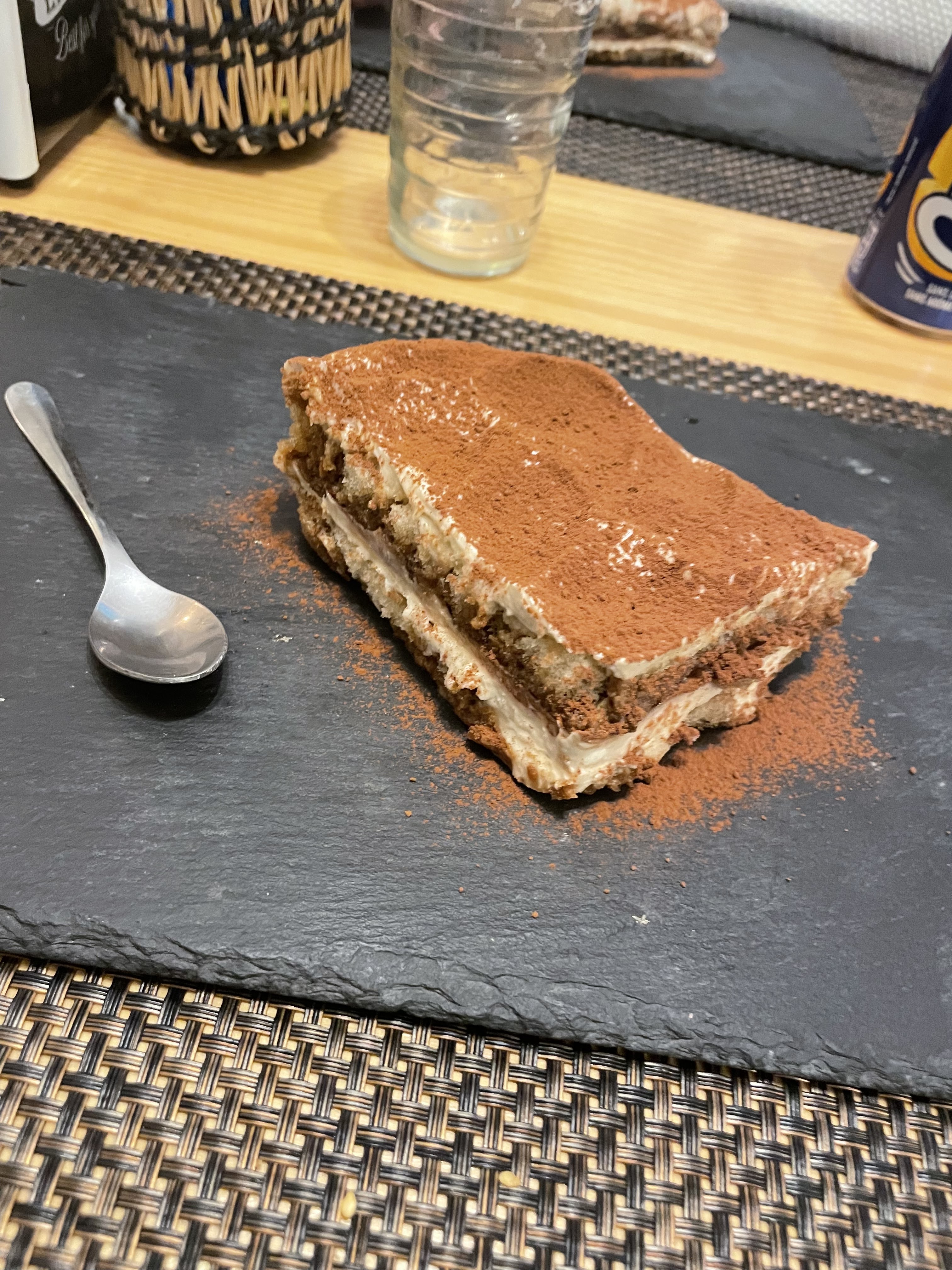 Je suis en jouissances à chaque bouché de ce magnifique tiramisu. Excellent les hamburger 🍔 🍔 🍔