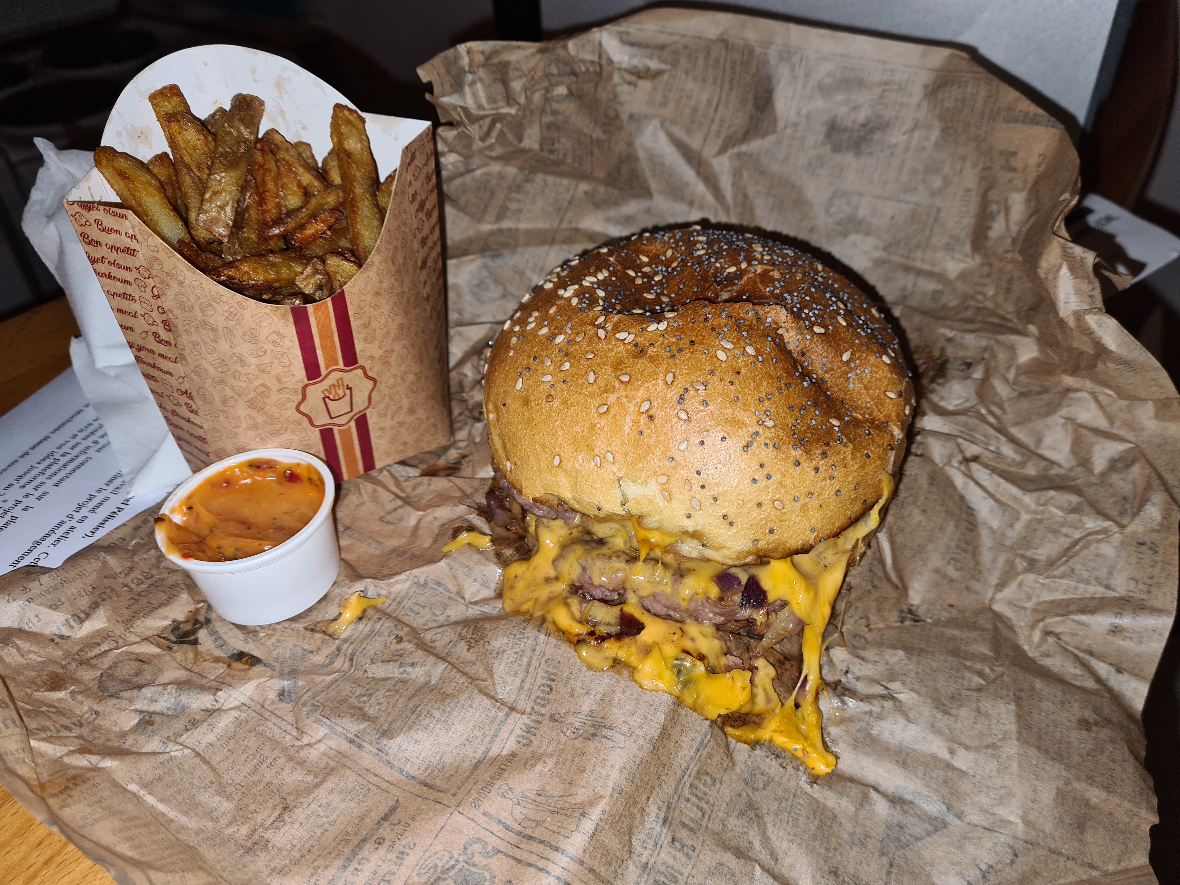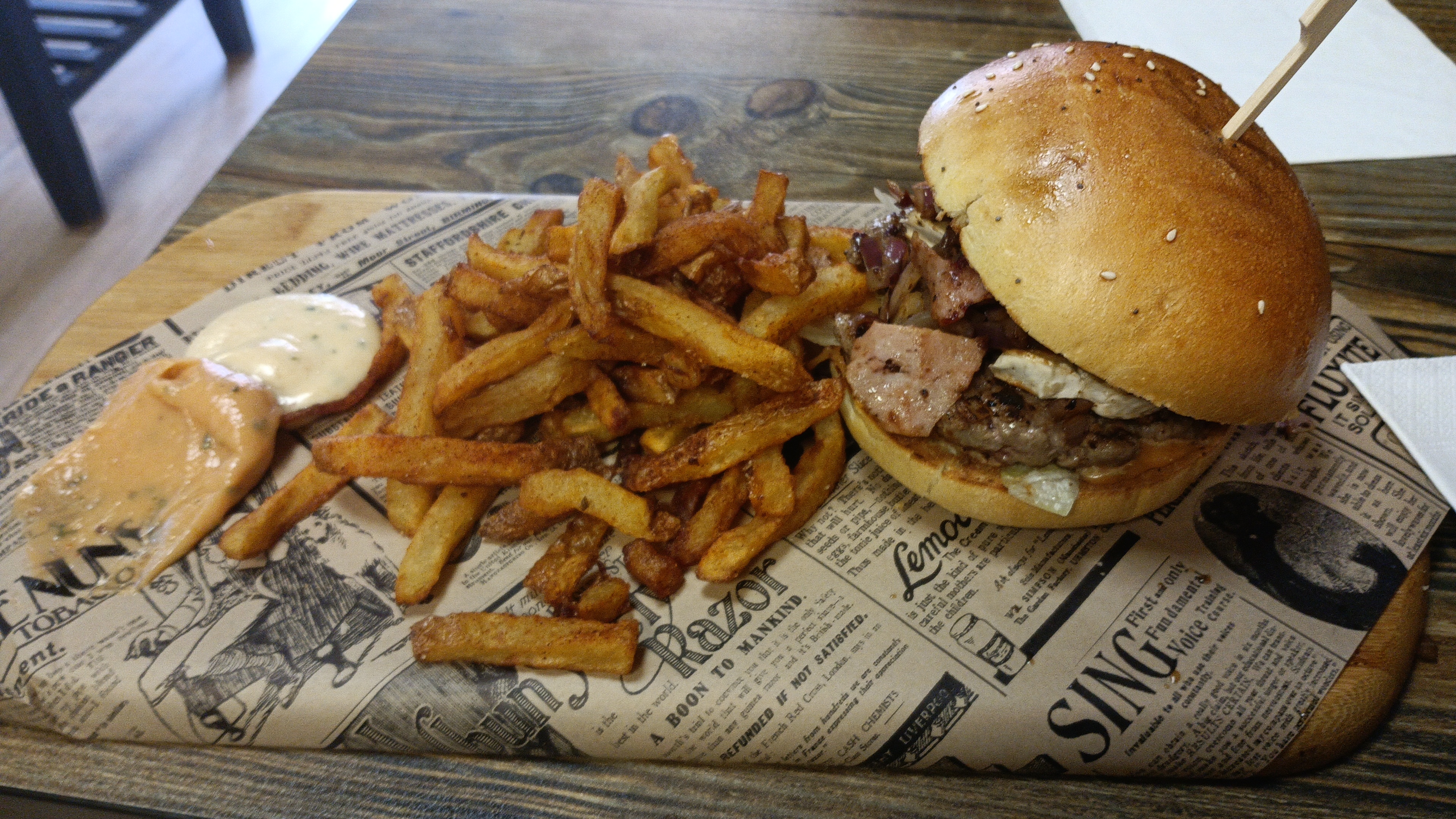 Franchement, super bon ! Les frites sont incroyables. Peut être un petit peu trop salé à notre gout, mais c'est OK. Choix large et qualité, copieux. Ah et la sauce pour les frites est très bonne.