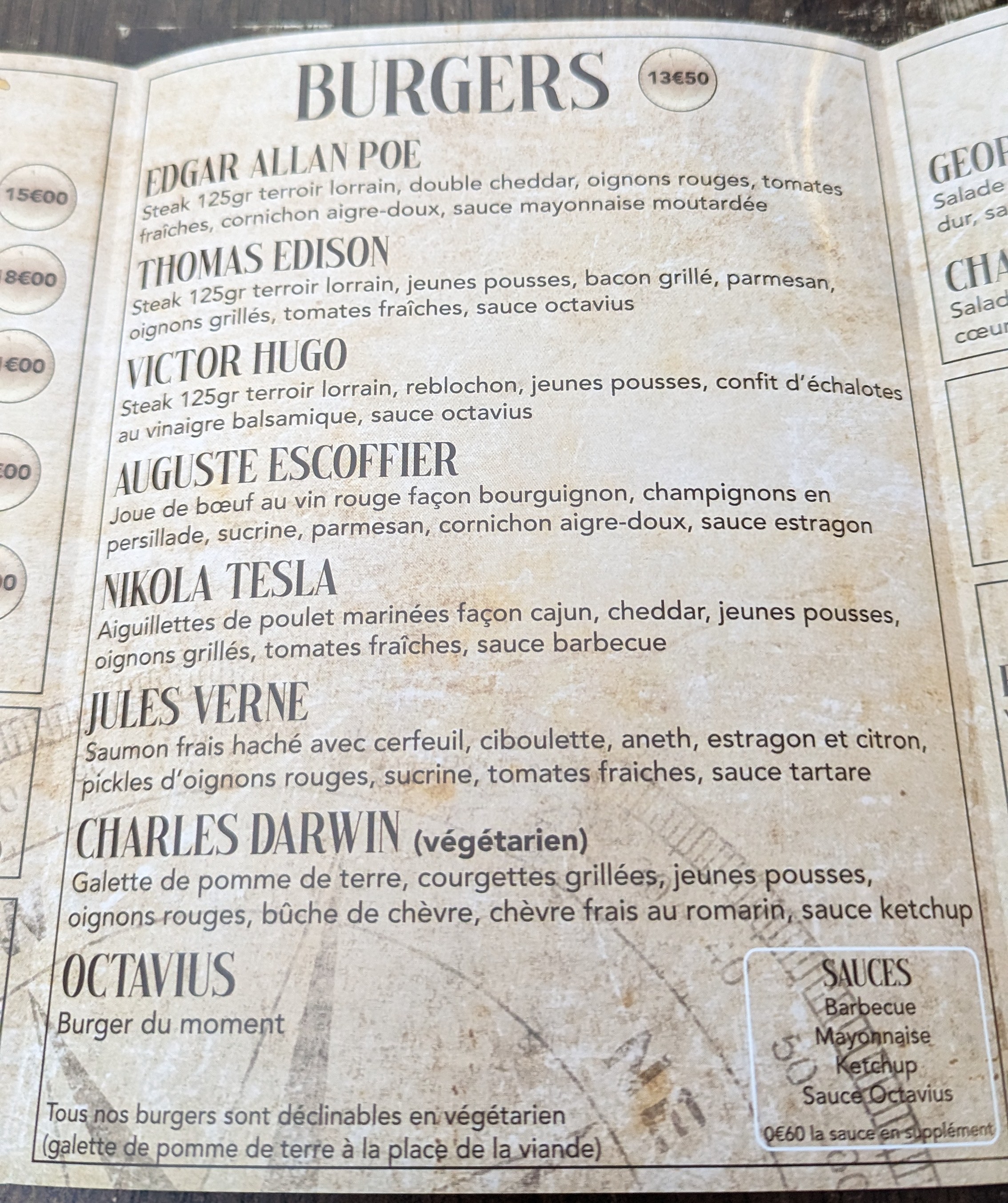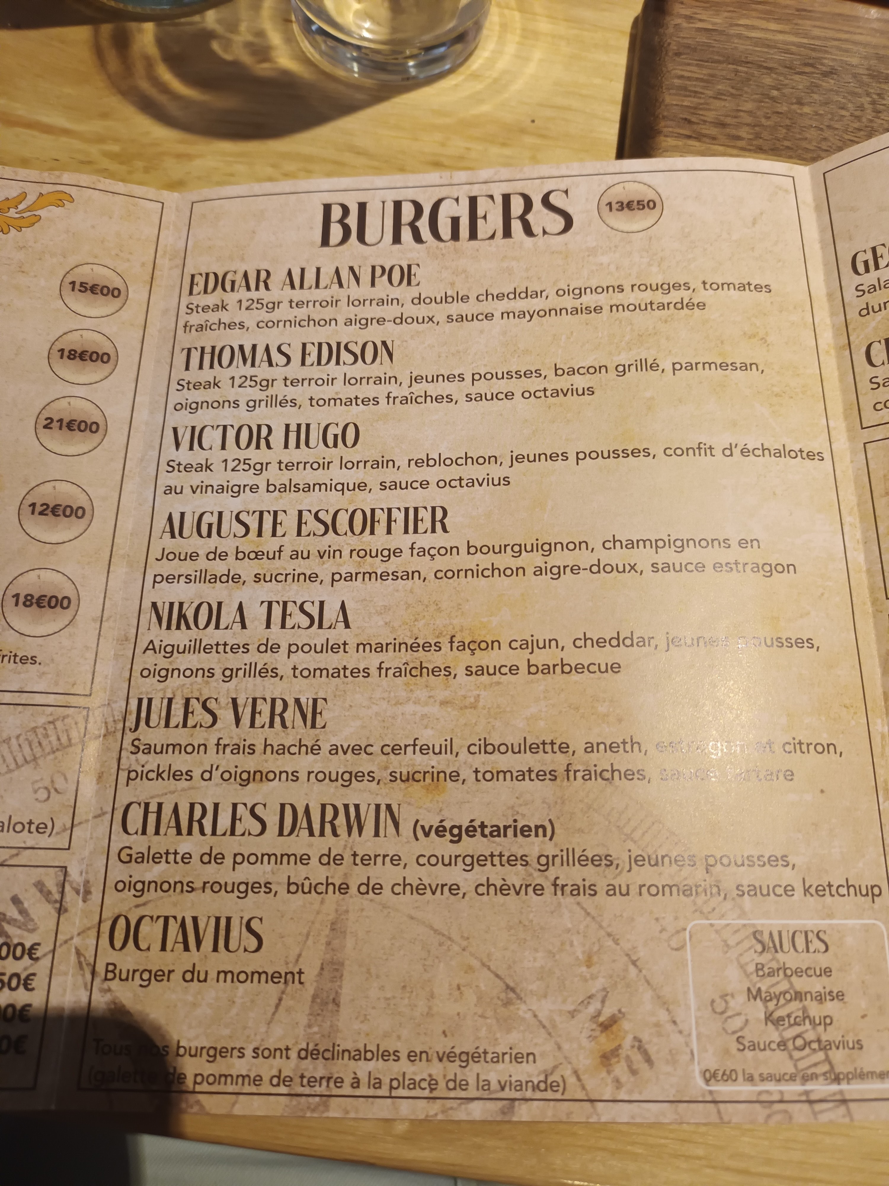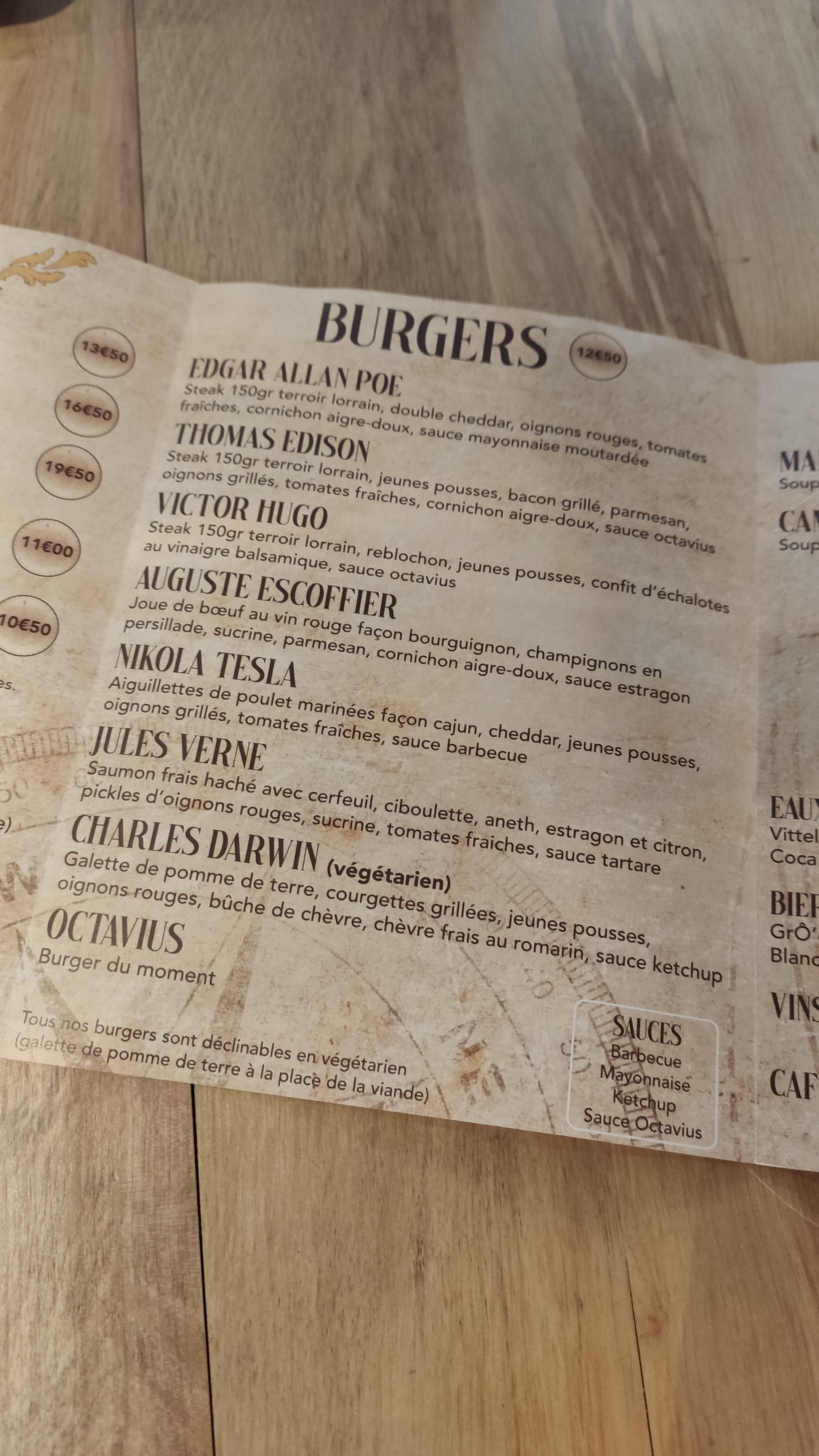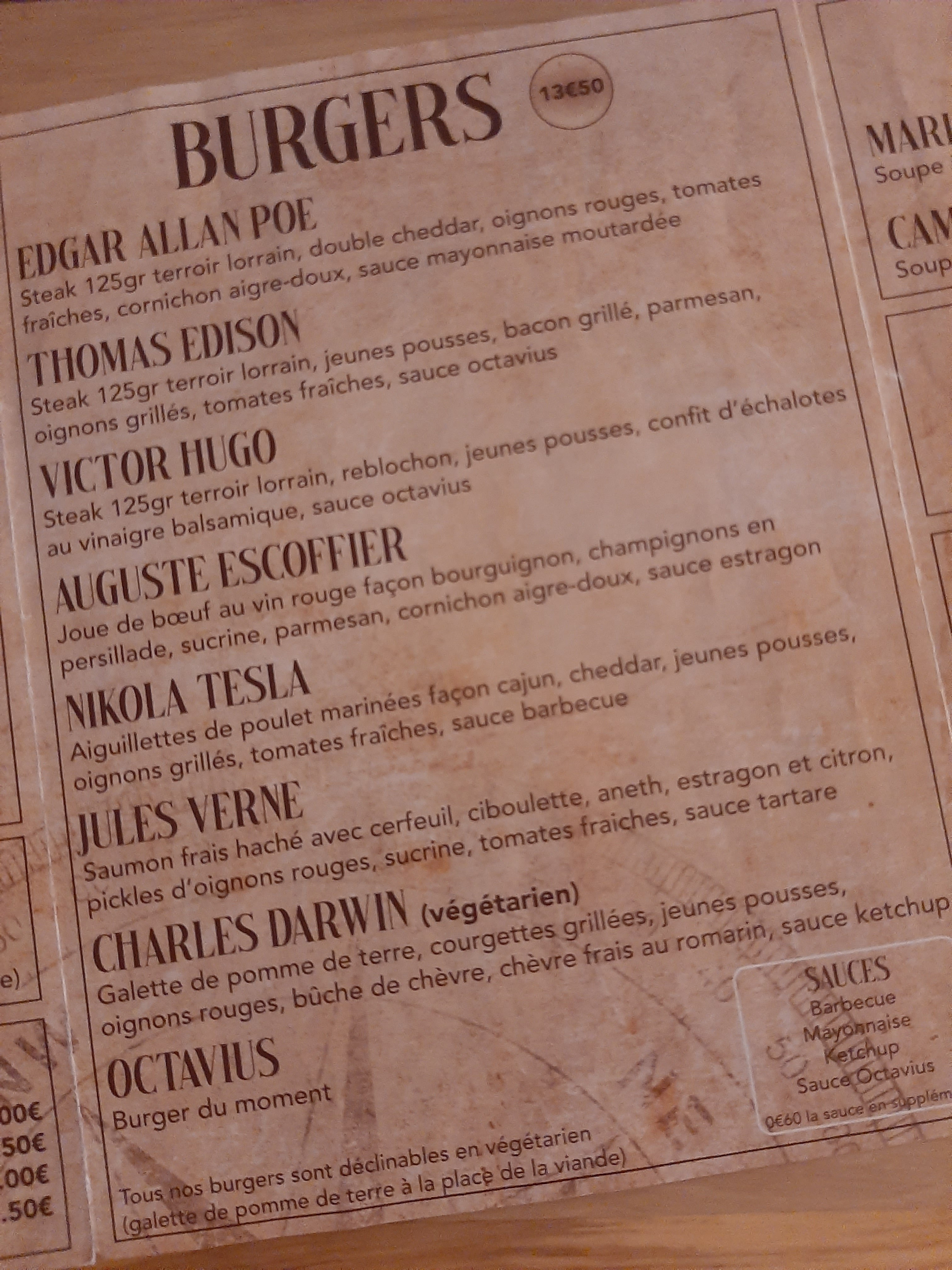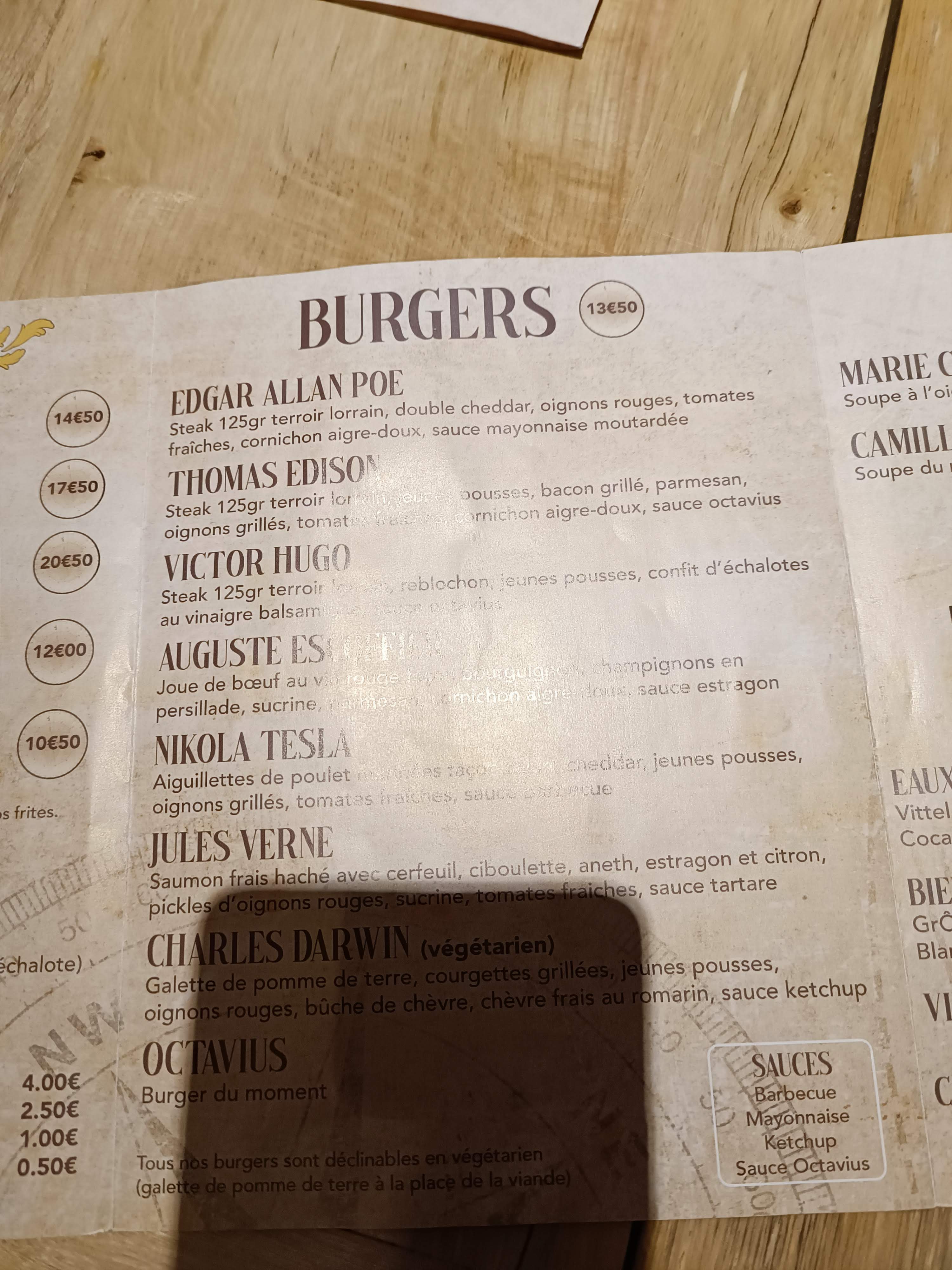 Petit restaurant avec des burgers cuisinés avec de bon produits frais et fait maison. L'assiette est personnalisée en cas d'allergie. Je recommande, moment ambiance aventure littéraire jules verne avec le plaisir du goût. Je recommande !