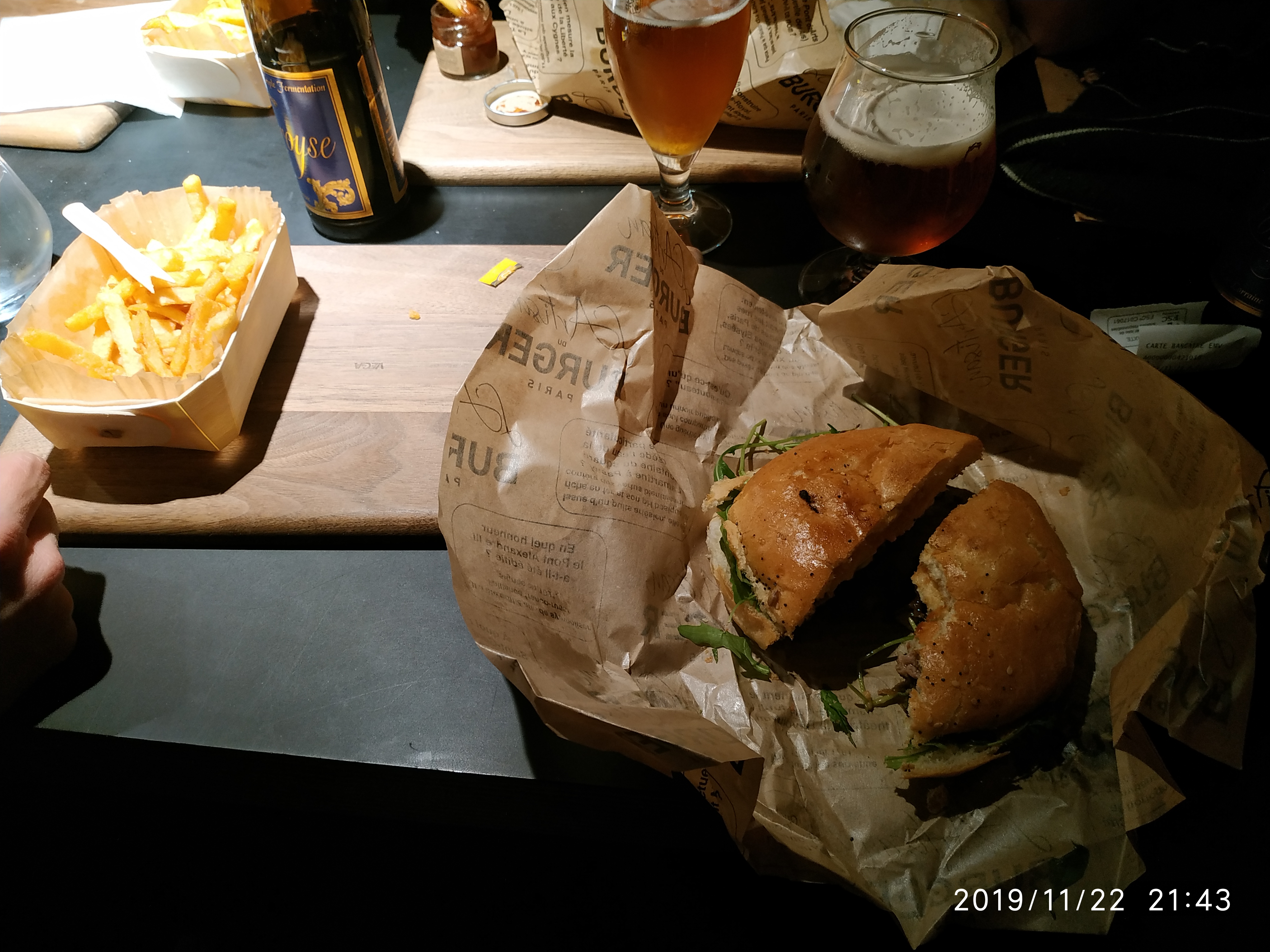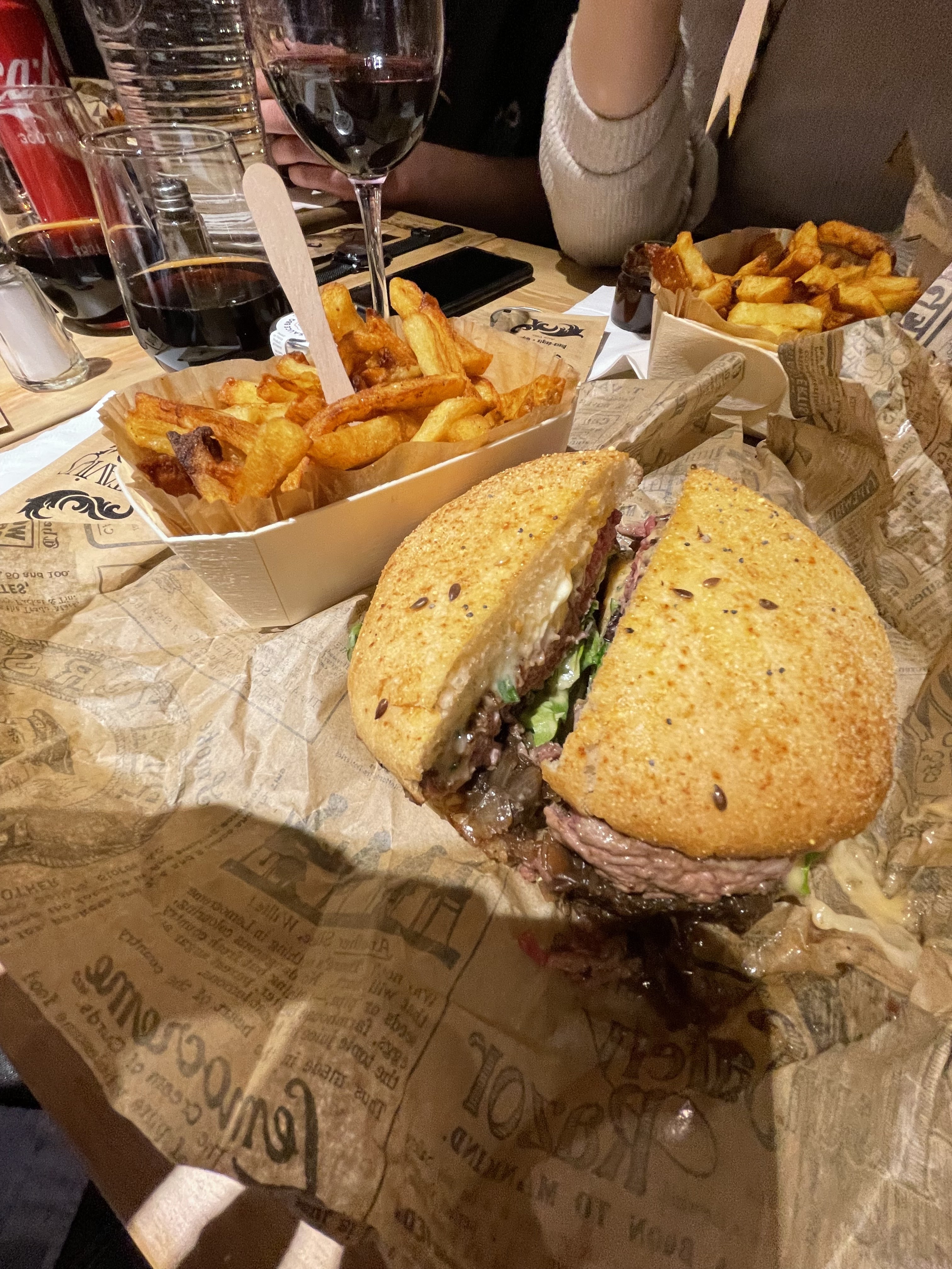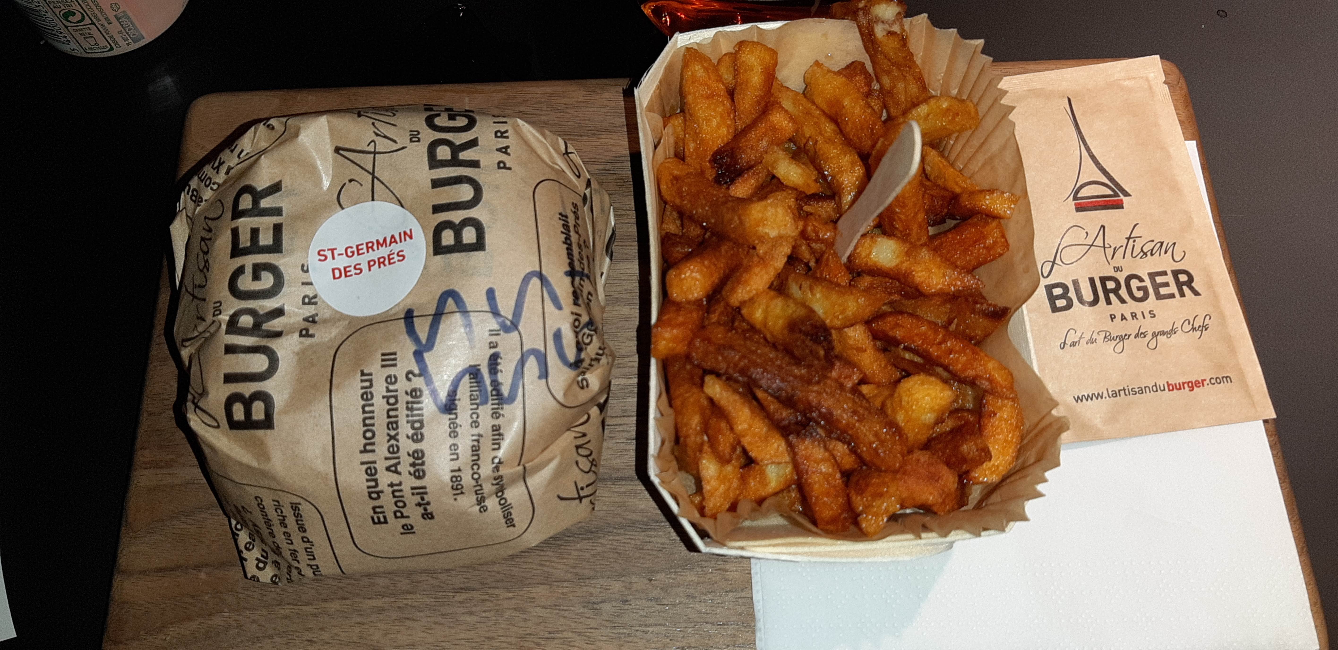 Vraiment excellent. Meilleur que vache burger, et de loin. C’est pas trop salé, parfait à mon goût. Le Victor Hugo était succulent, les oignons qui fondaient en bouche là mmmmh. Le fait de couper le burger en 2 c’est une très bonne idée, bcp plus facile à manger. Frites maison excellentes. On a jute pris nos commandes un peu tard mais trql on n’est pas dans un fast food.