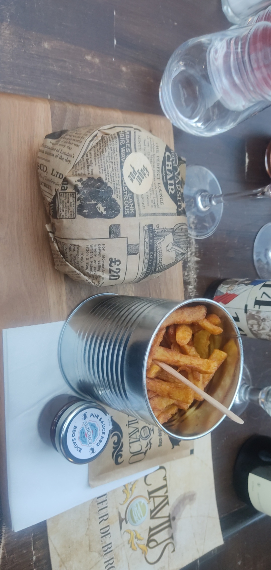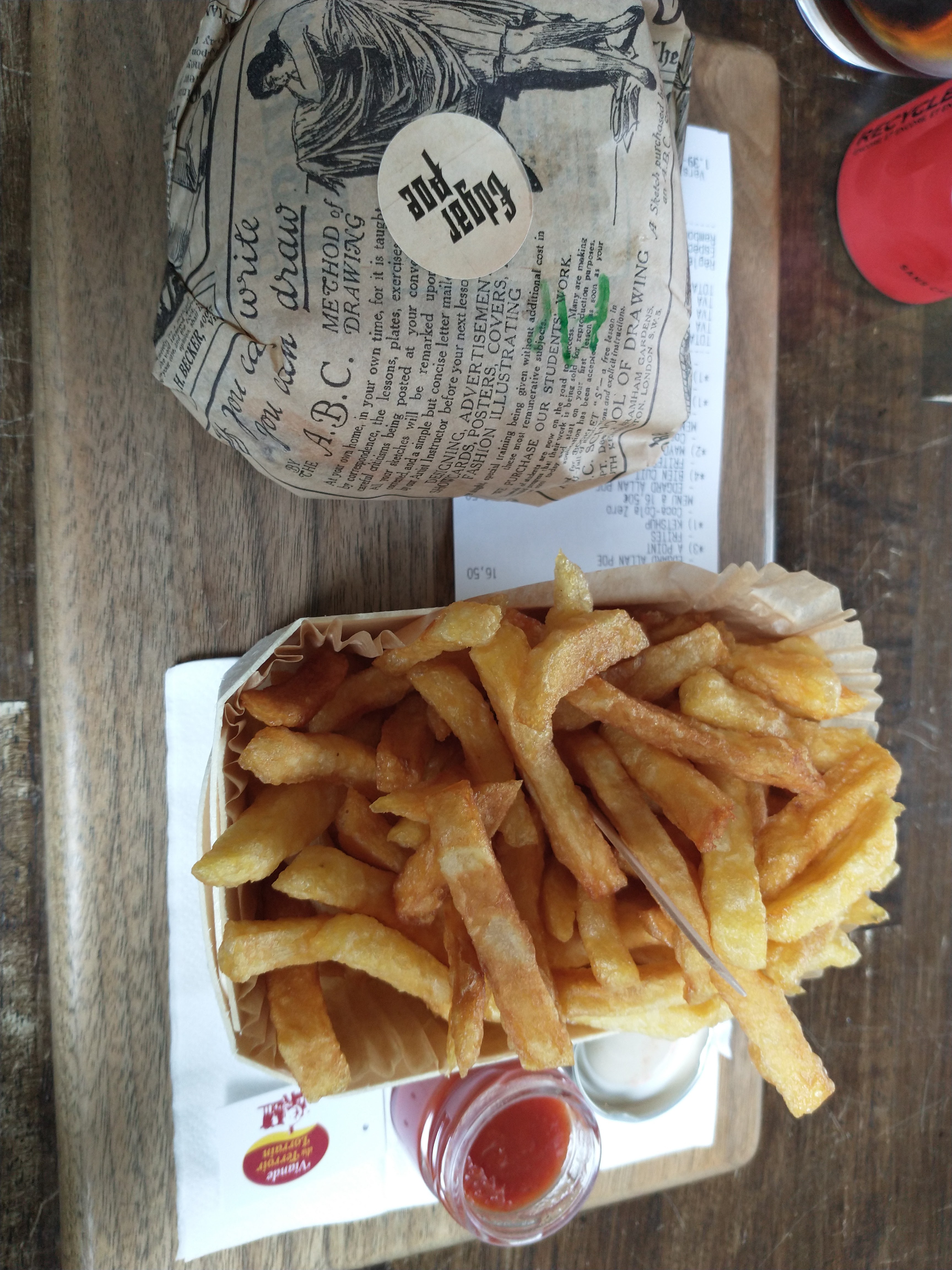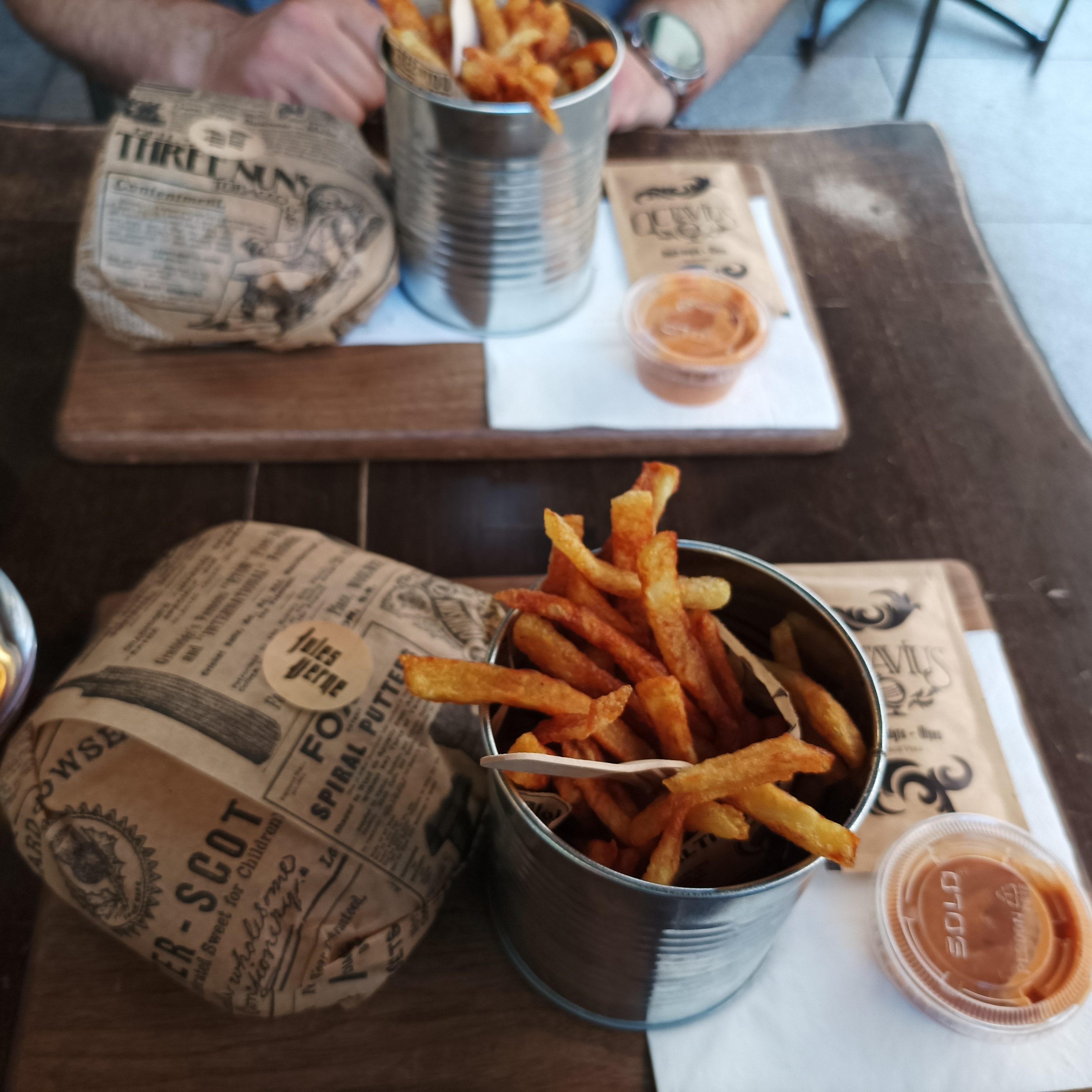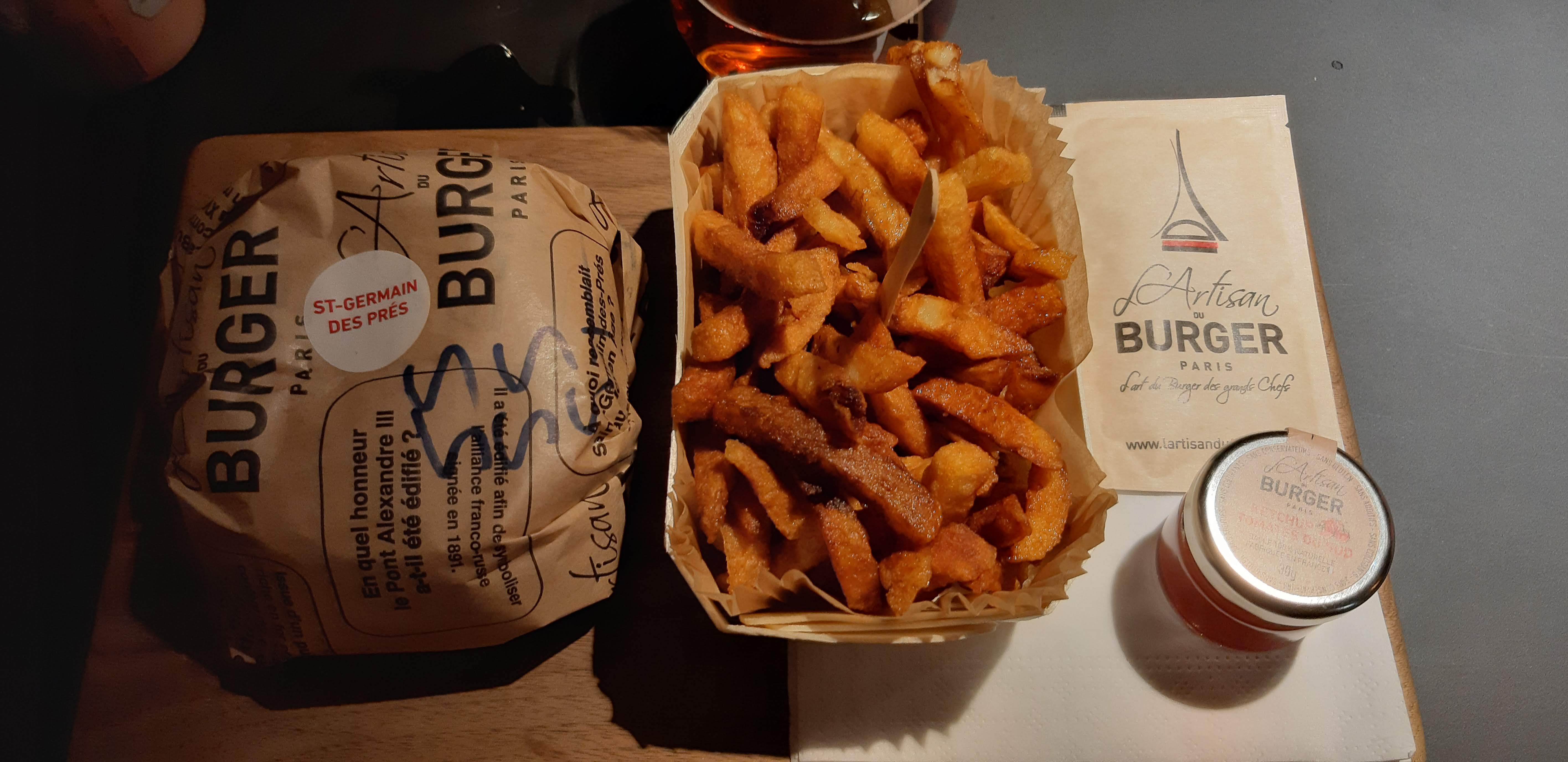 Les burgers et les frites sont vraiment très bon. Prix corrects vu la qualité même s'il il faut commander au comptoir. Le seul petit bémol, c est de m'avoir donné 2 simples petits sachets de moutarde alors que les autres sauces sont présentées dans de jolie petits pots...