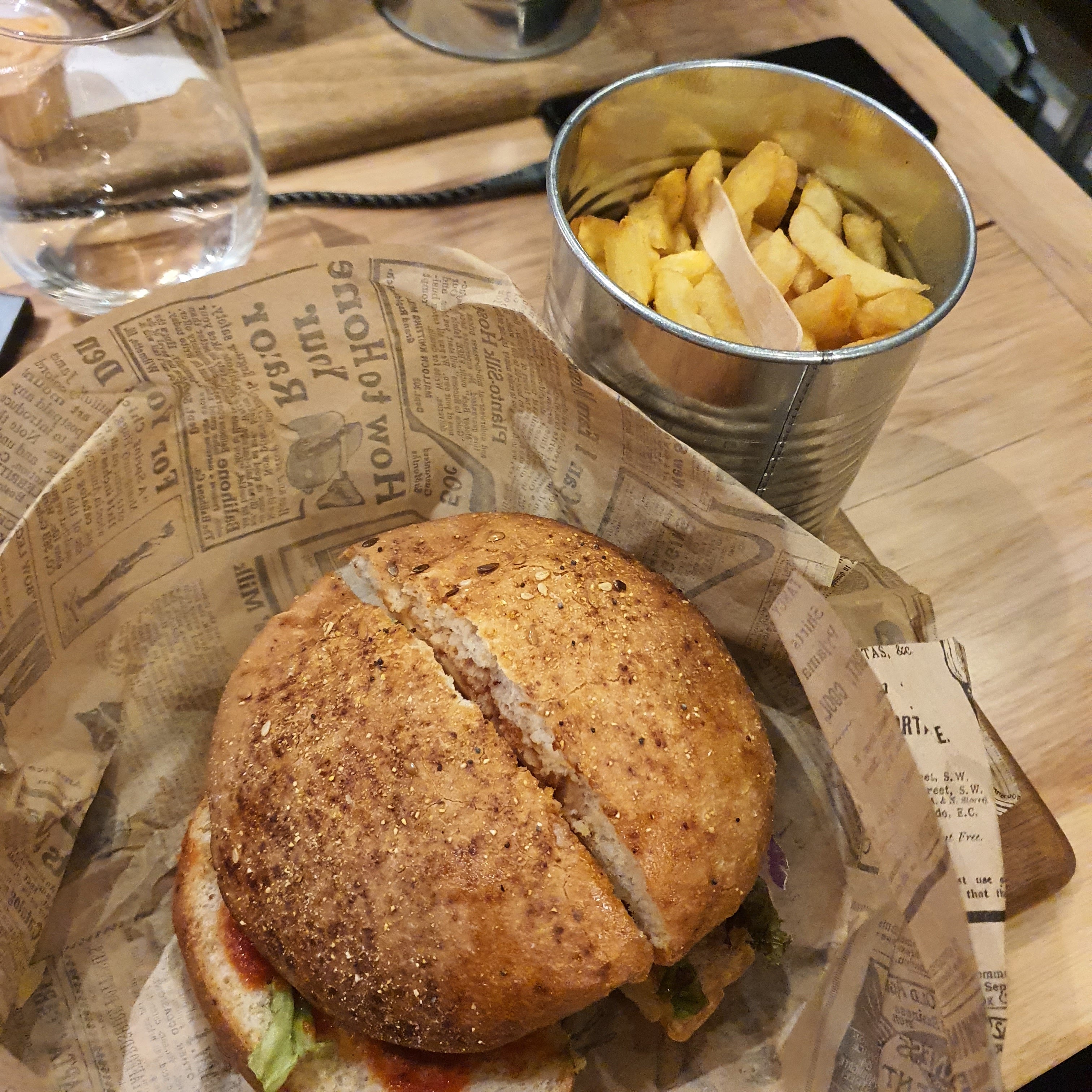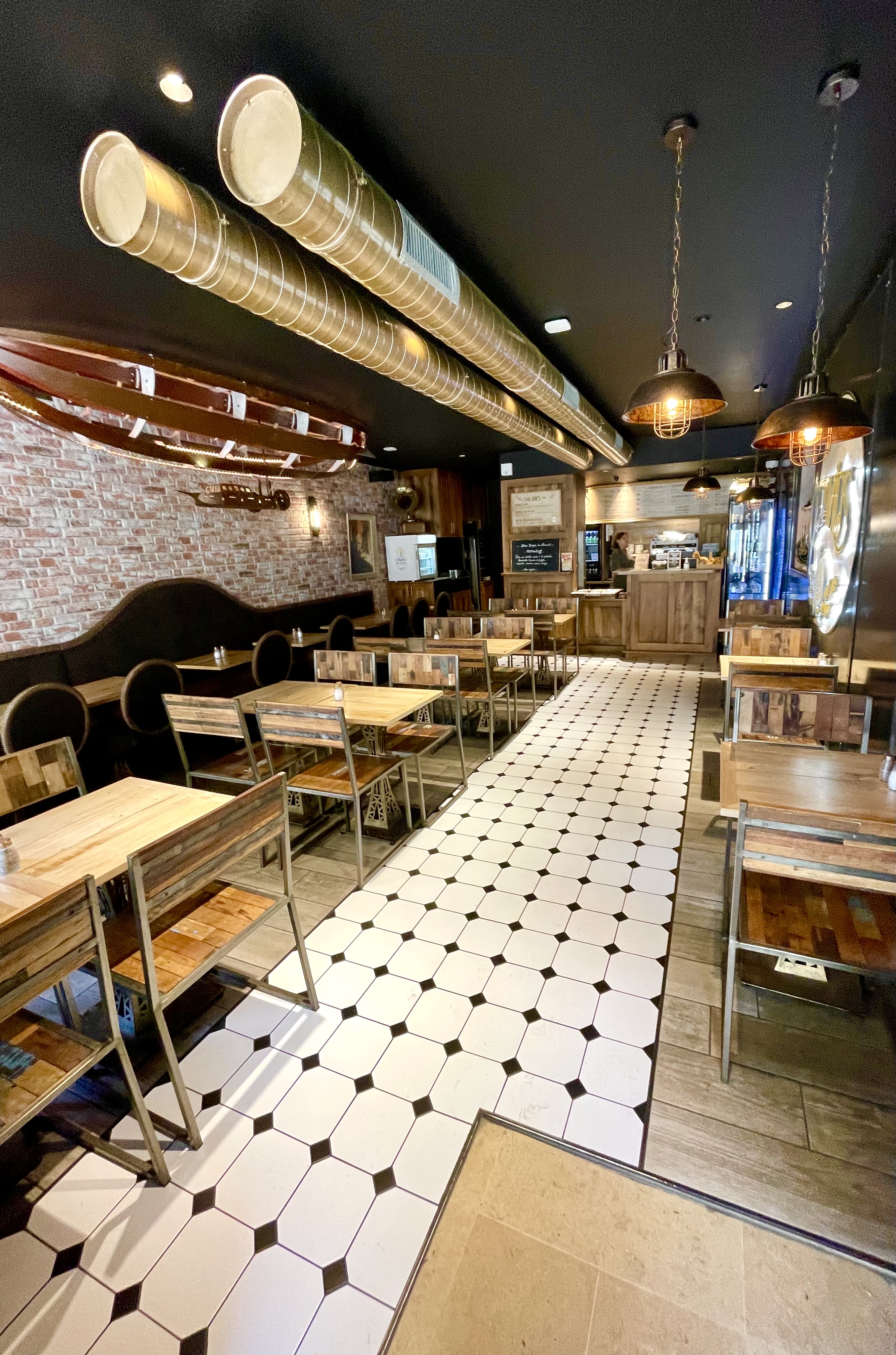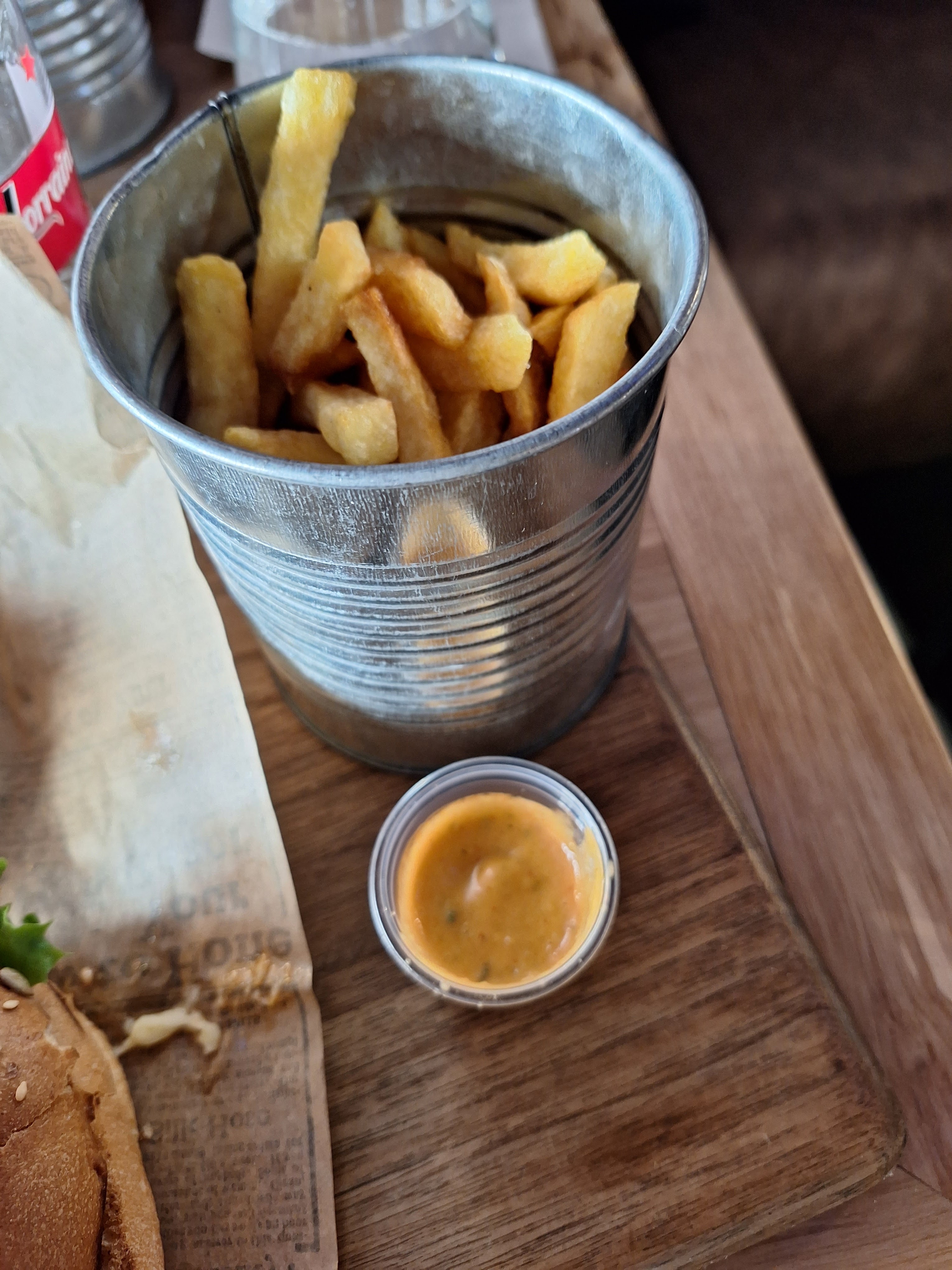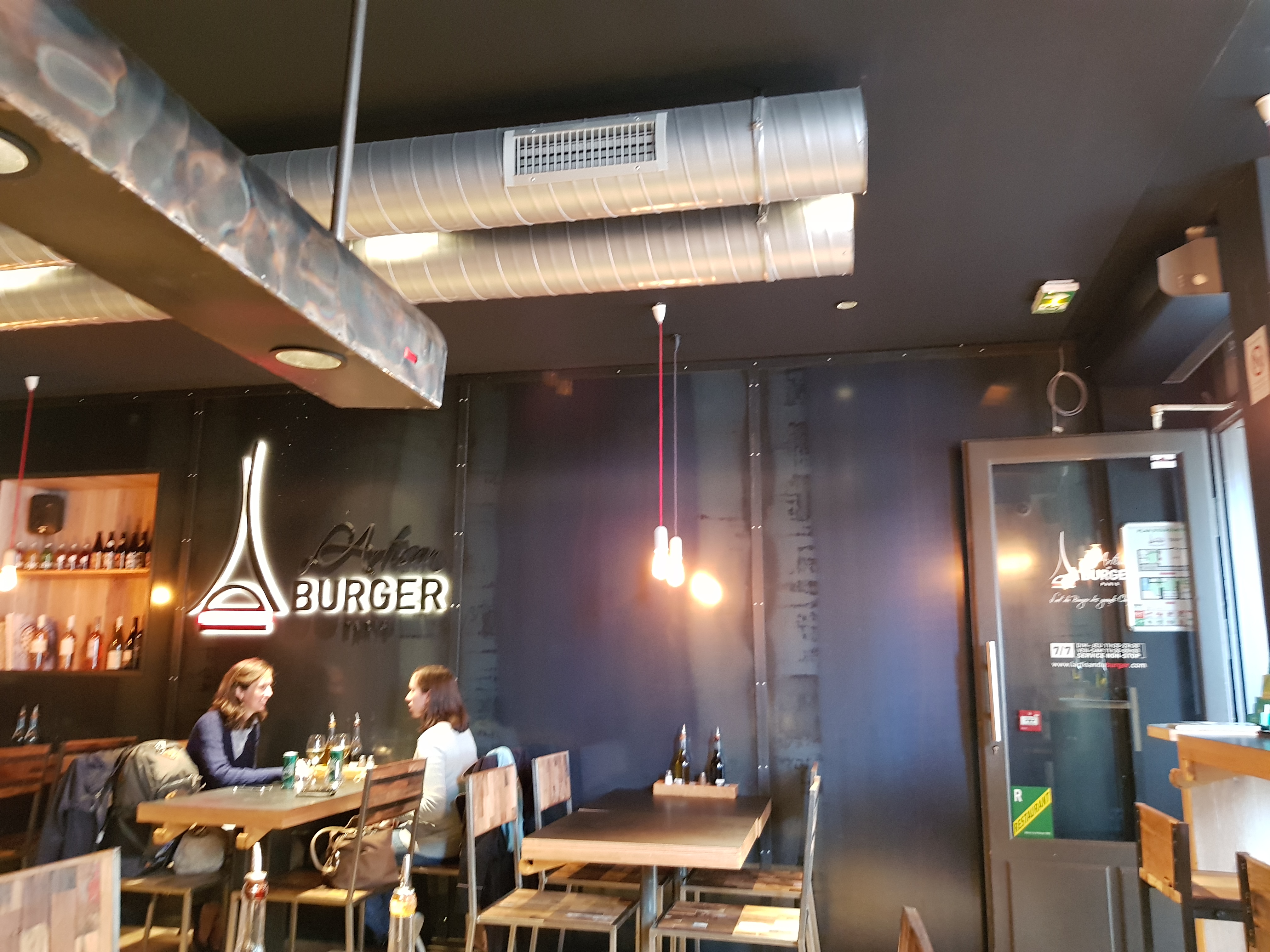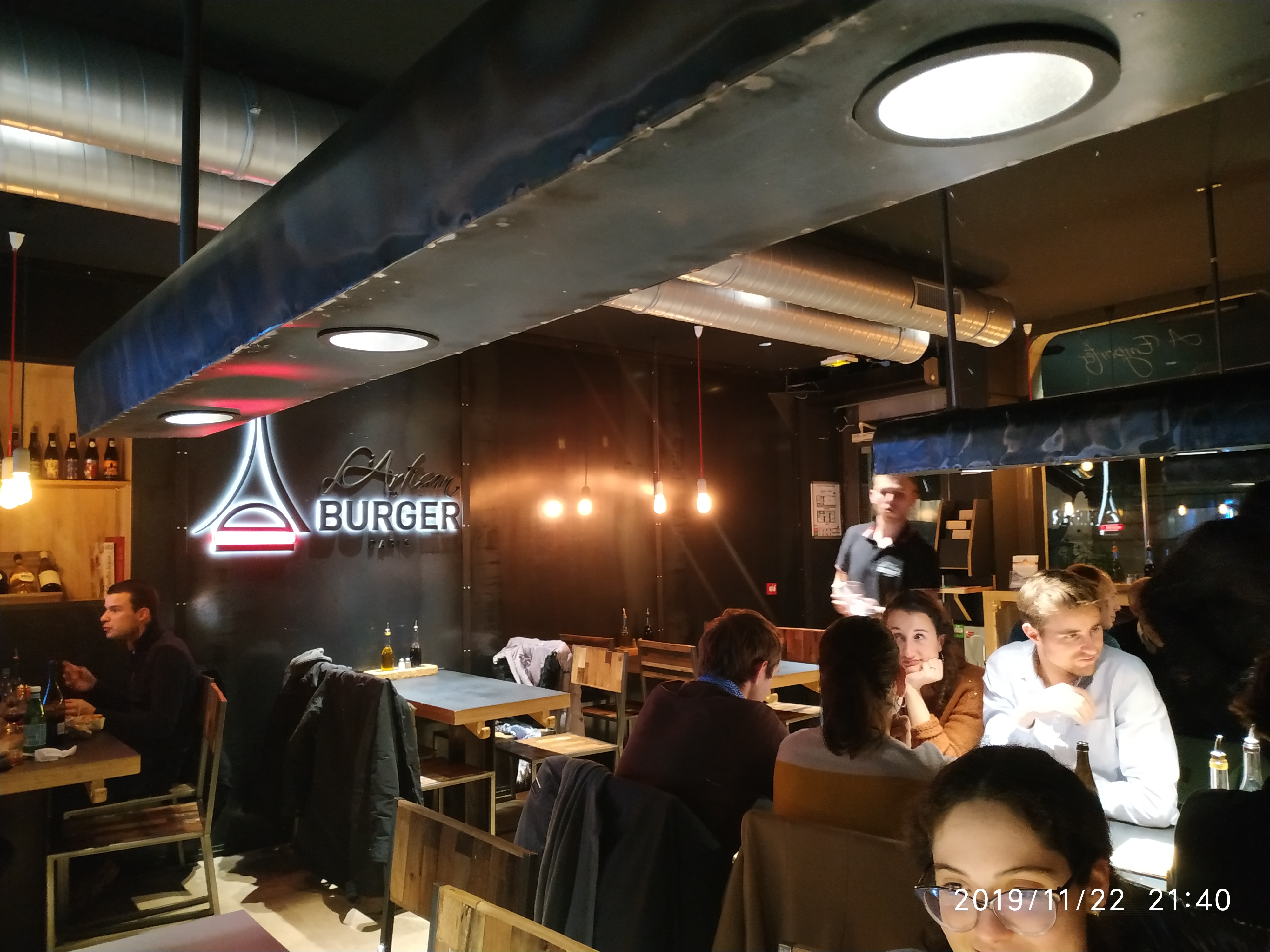 Le restaurant a une super deco. Le service etait rapide et surtout le personnel était super gentil et souriant. Les burger et les frites méritent carrement le detour, je recommande !