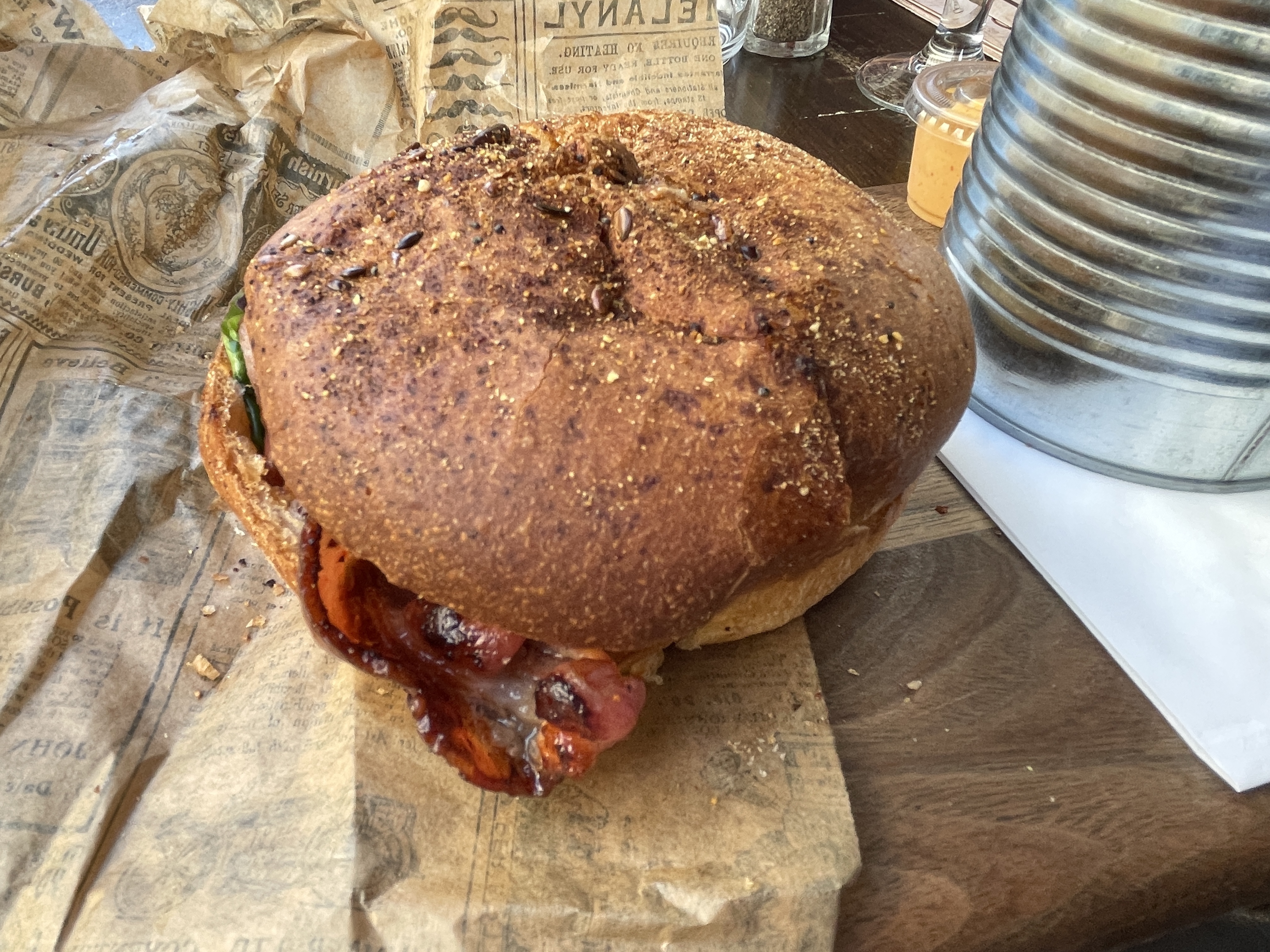 De passage, un burger sympa à goûter, j'ai trouvé qu'il manqué de garniture (surtout la viande) mais la salade de ma copine très bien garnie par contre.