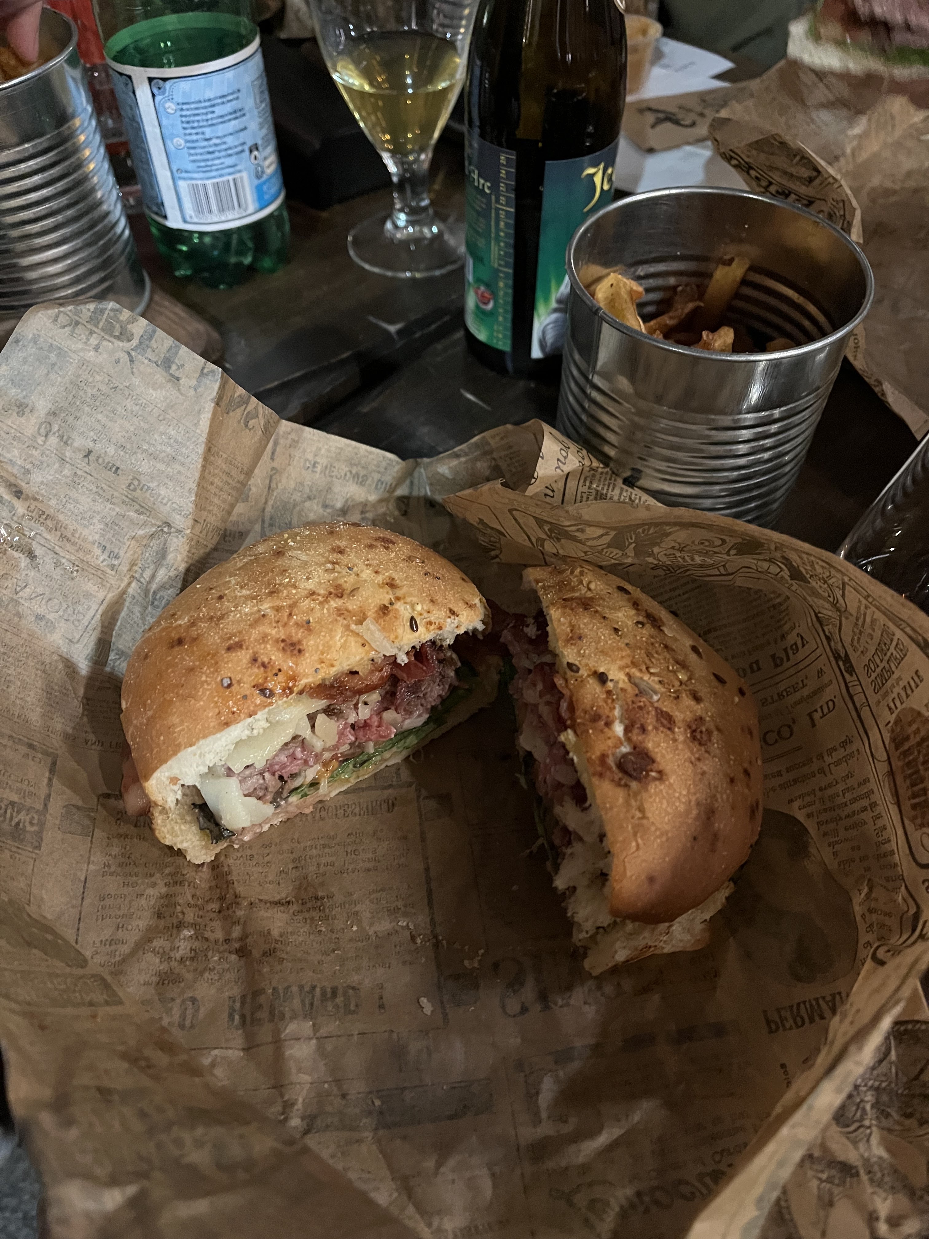 Burgers excellents le vin et la bière au top