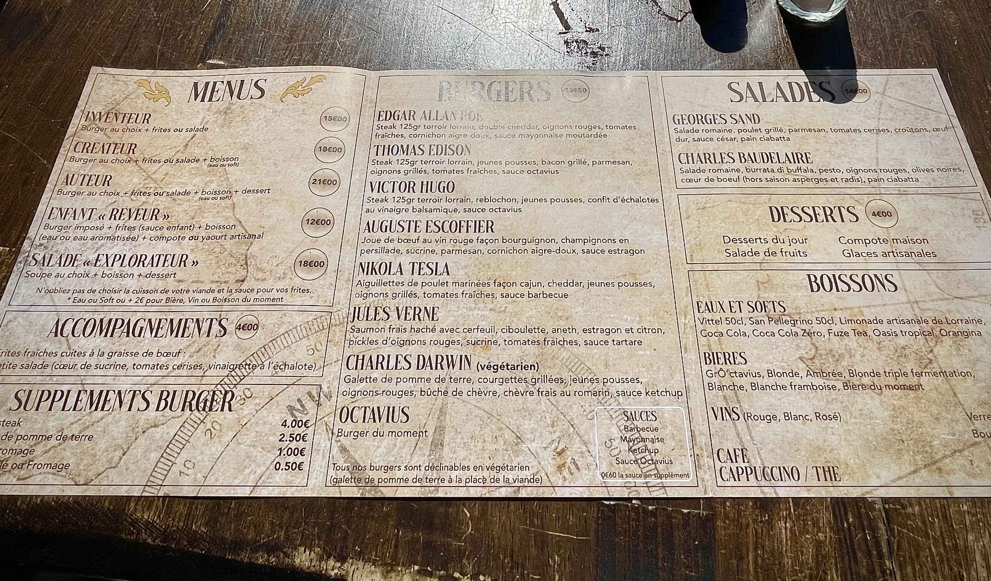 Superbe déco sur le thème Jules Verne, burgers et frites au top, produit locaux. Bière spécifique au resto (l'Octavius de la Brasserie Gro). Je valide 👍